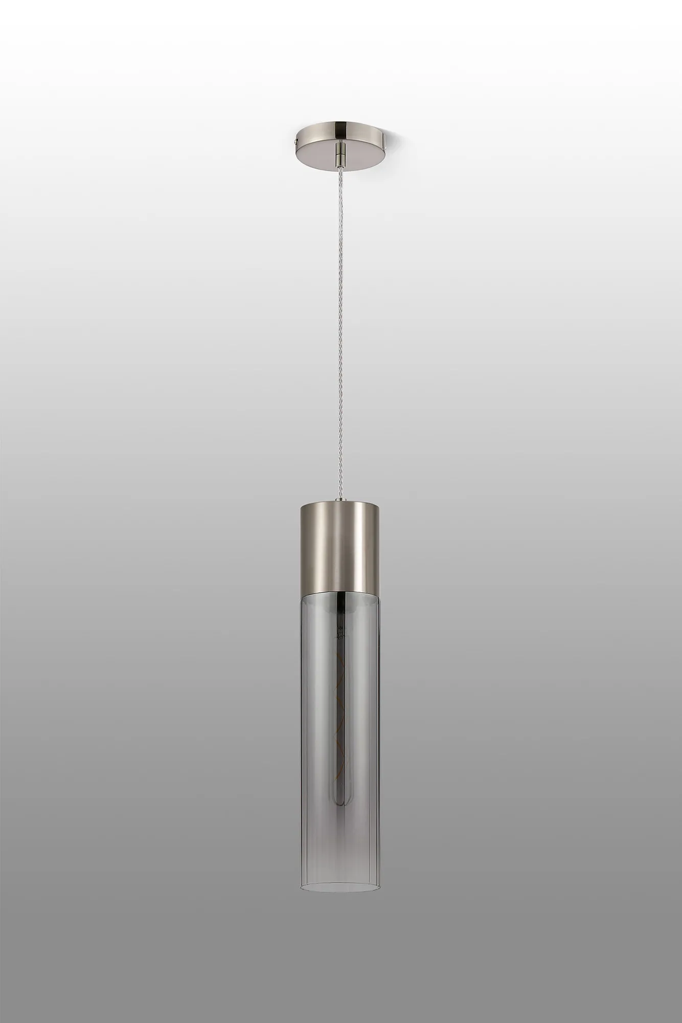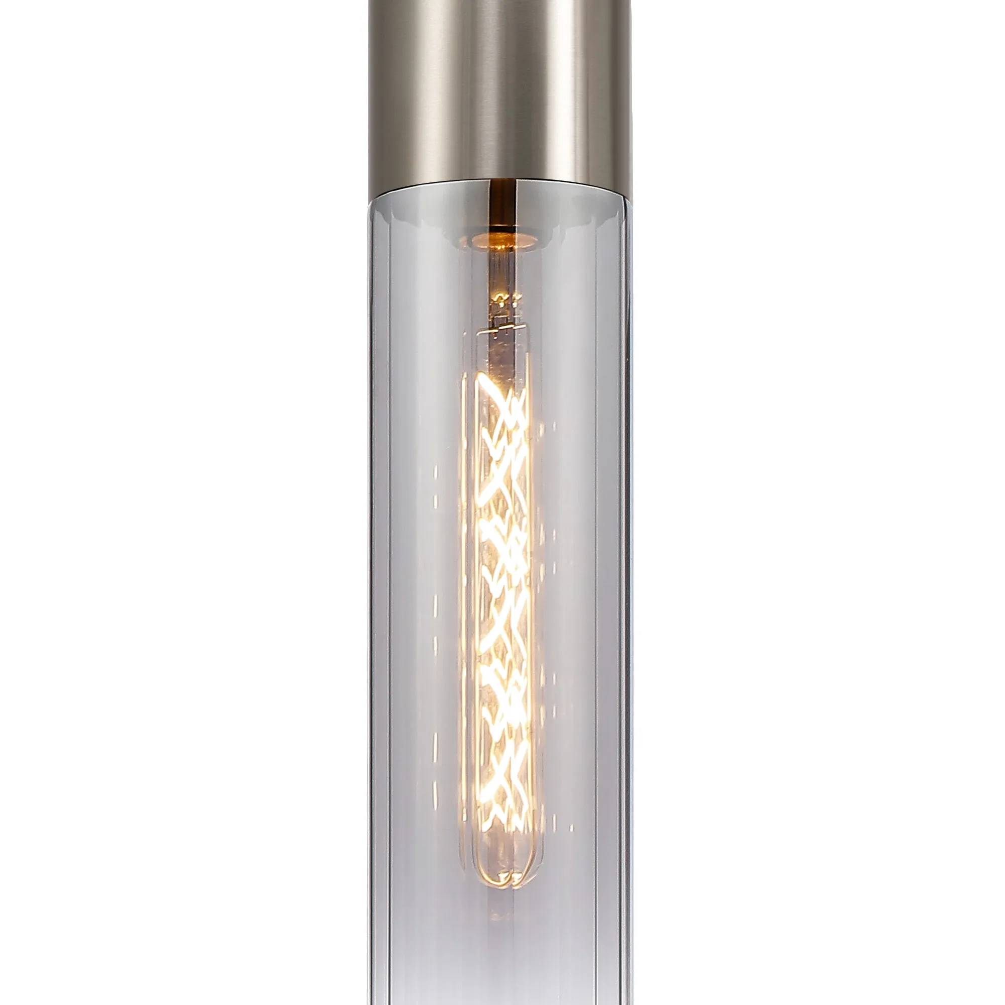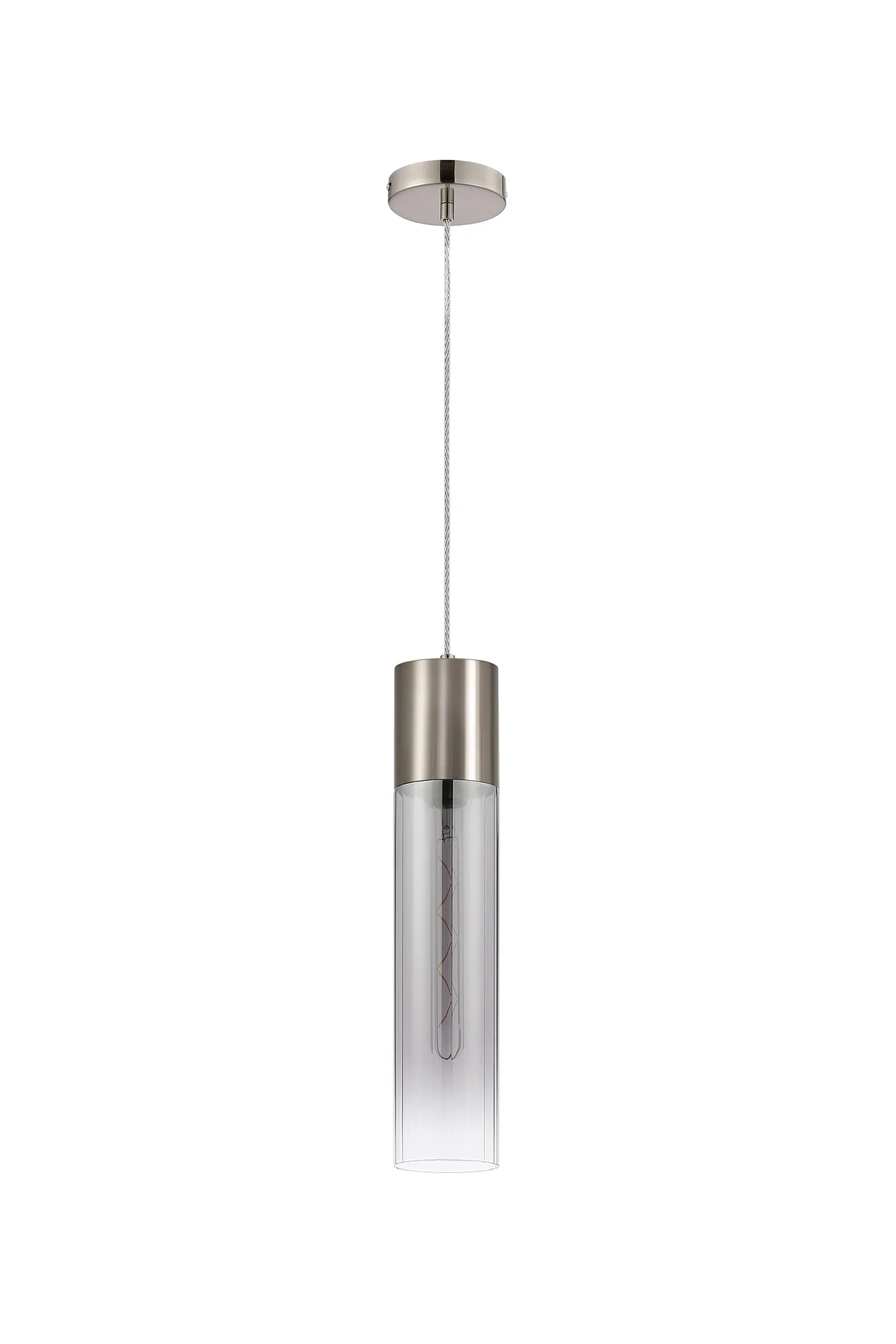 Melville Table Lamp With Tubular Glass, 1 x E27, Satin Nickel/Smoke Fade/Clear PVC Cable