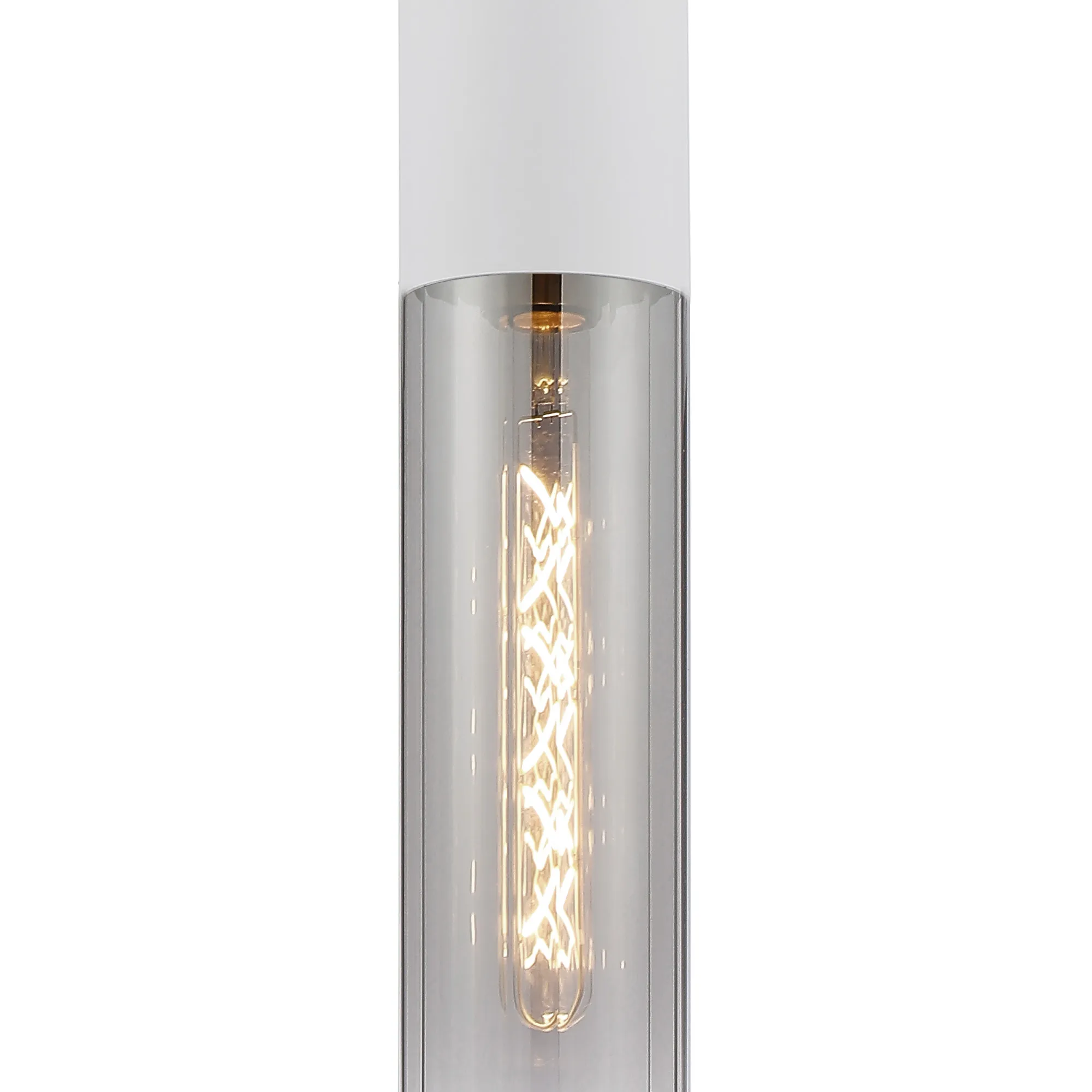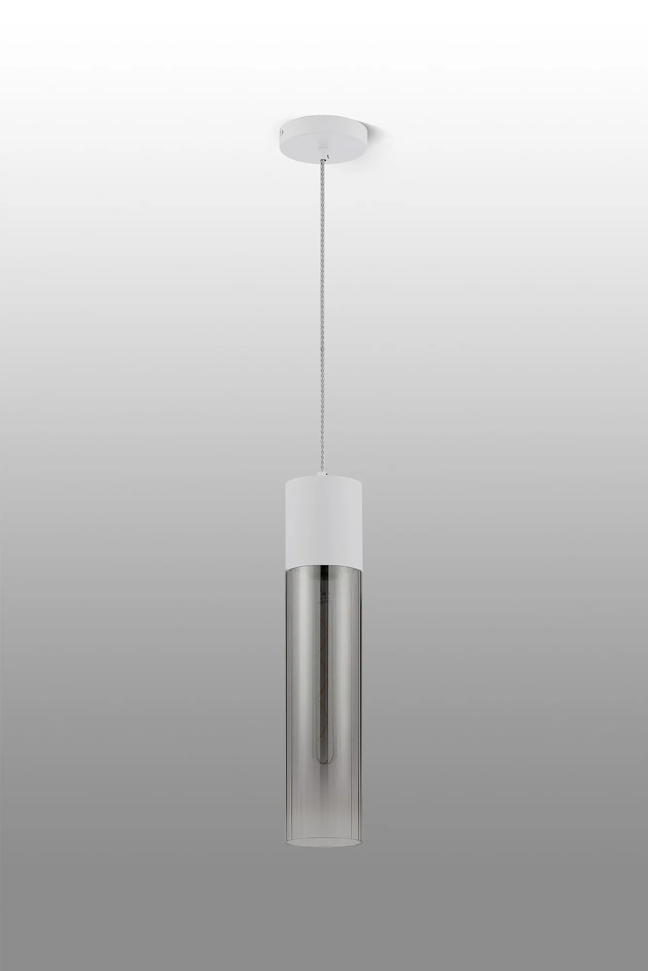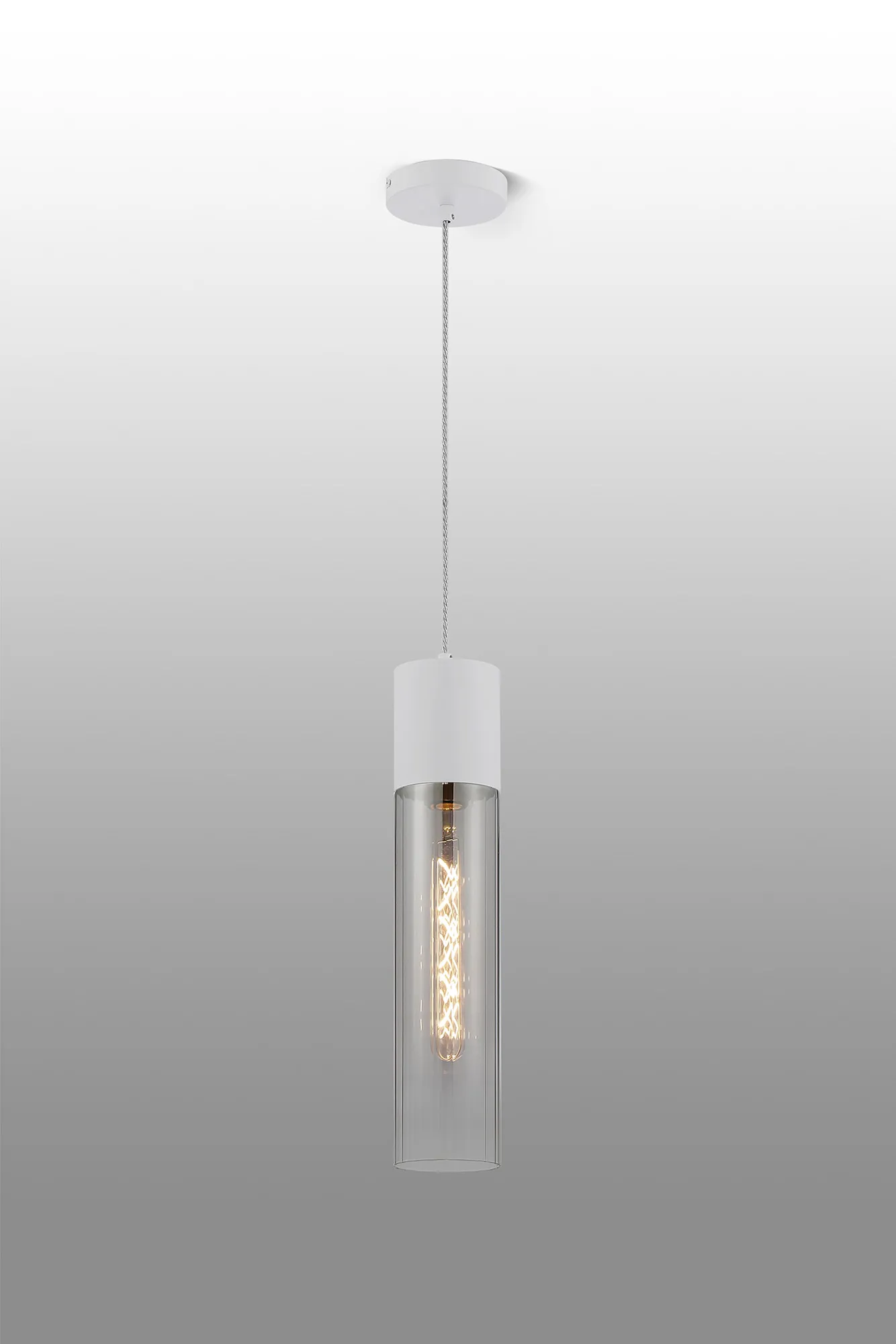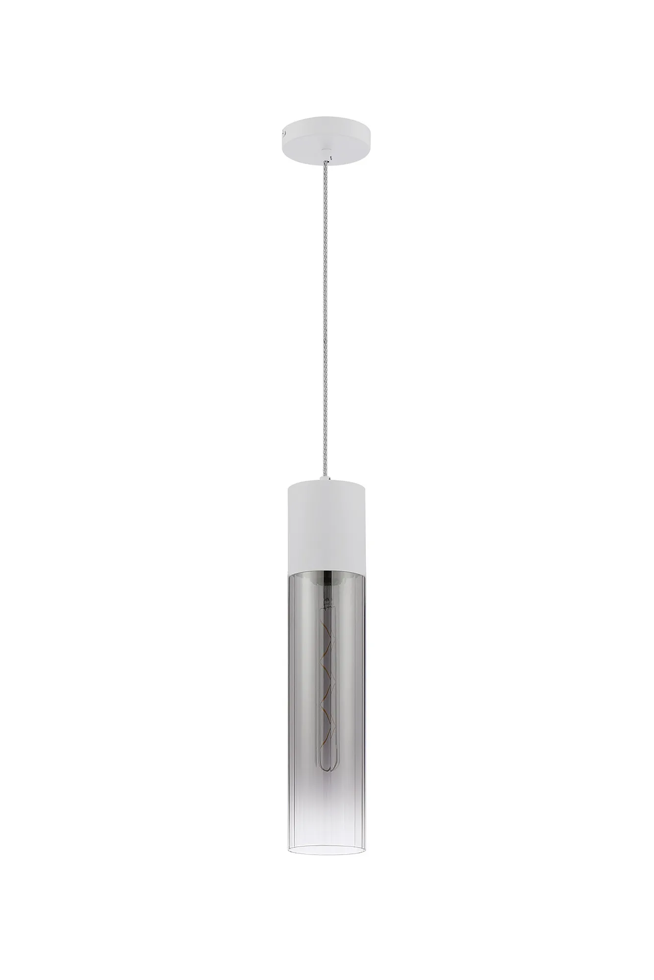 Melville Table Lamp With Tubular Glass, 1 x E27, Satin White/Smoke Fade/Clear PVC Cable