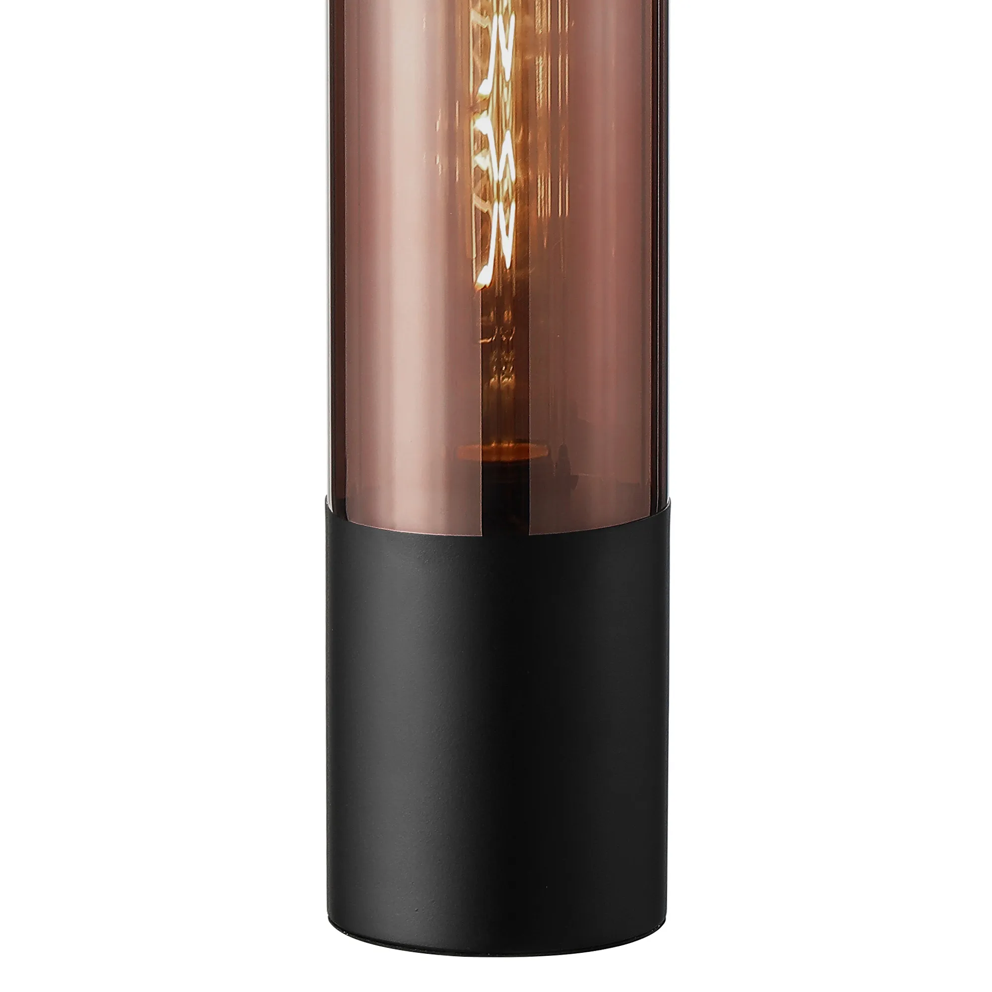 Melville 12cm Pendant With Tubular Glass, 1 x E27, Satin Black/Copper Fade/Black Braided Twisted Cable
