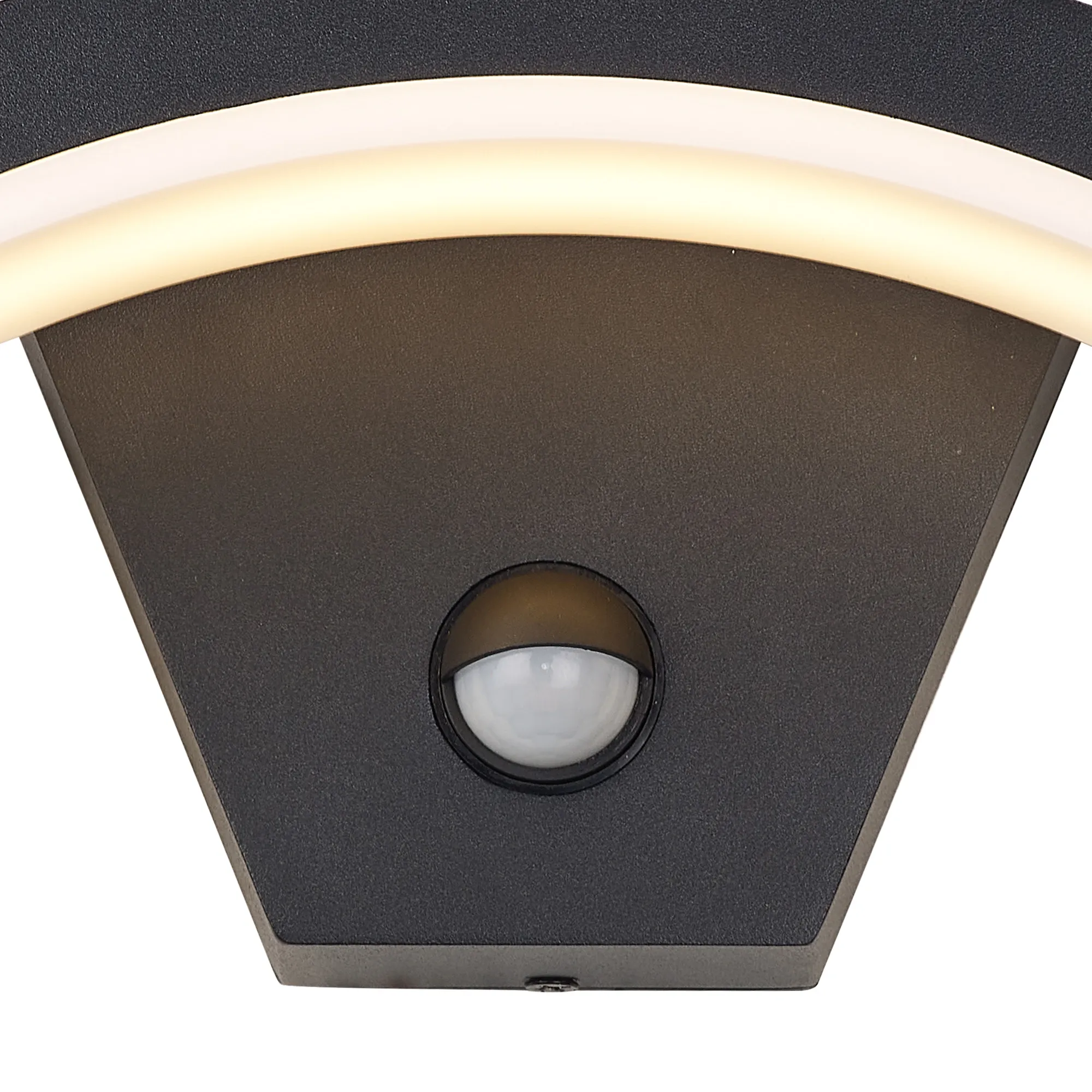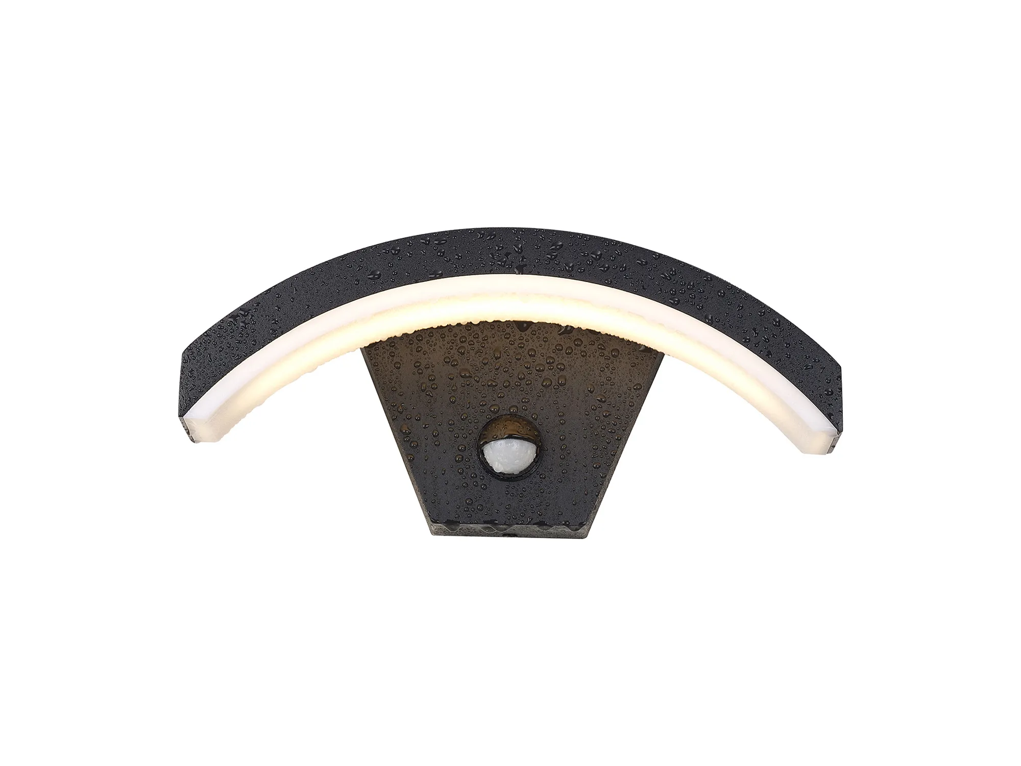 Battleford Rectangular Curve Wall Lamp With PIR Sensor, 1 x 6W LED, 3000K, 400lm, IP54, Matt Black/Opal, 3yrs Warranty