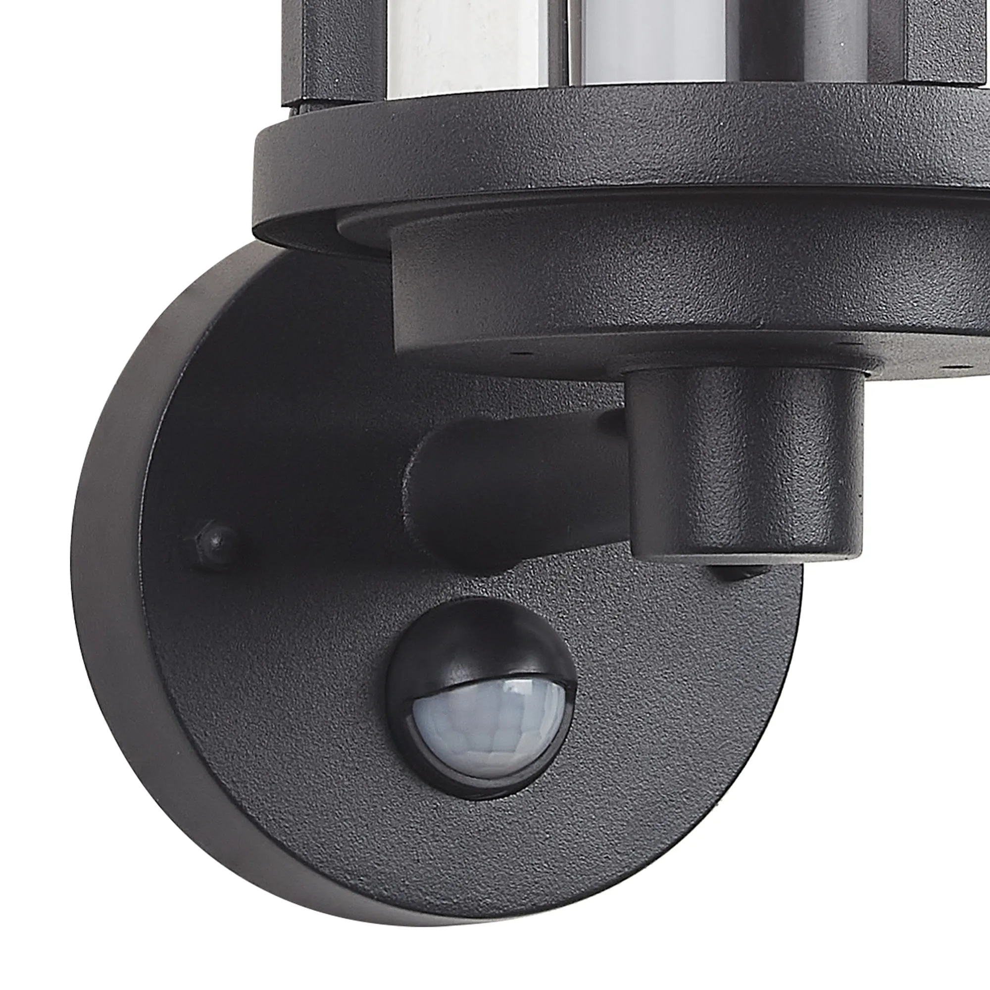 Battleford Rectangular Curve Wall Lamp With PIR Sensor, 1 x 6W LED, 3000K, 400lm, IP54, Matt Black/Opal, 3yrs Warranty