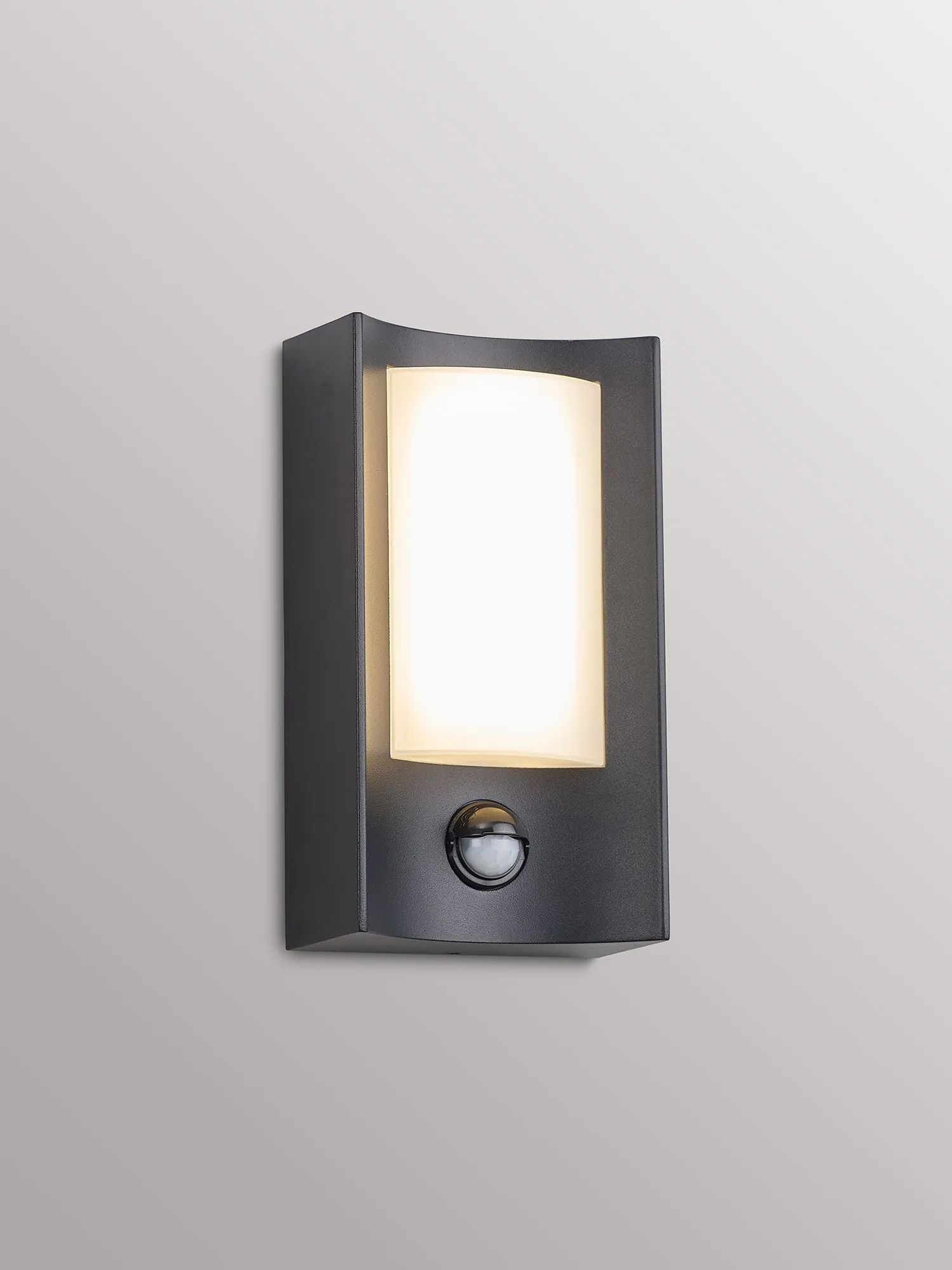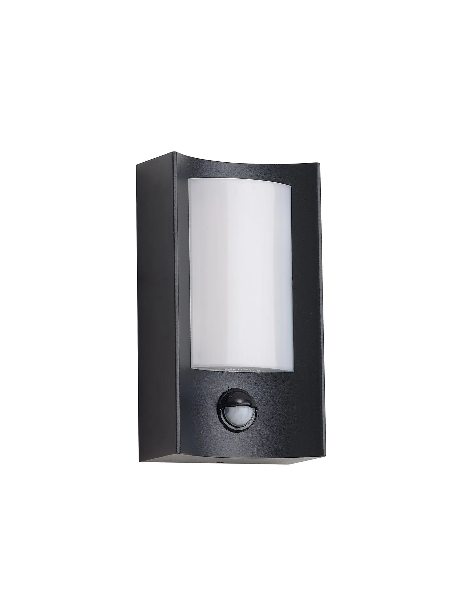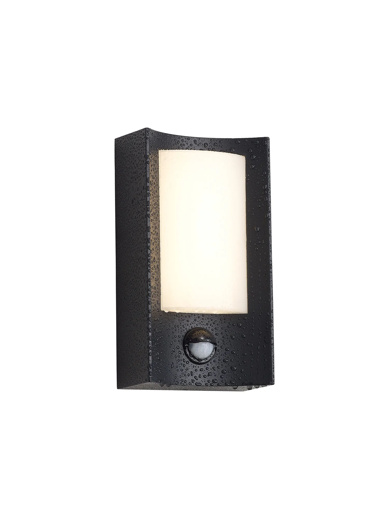 Battleford Arch PIR Wall Lamp 7W LED IP54 Matt Black/Opal