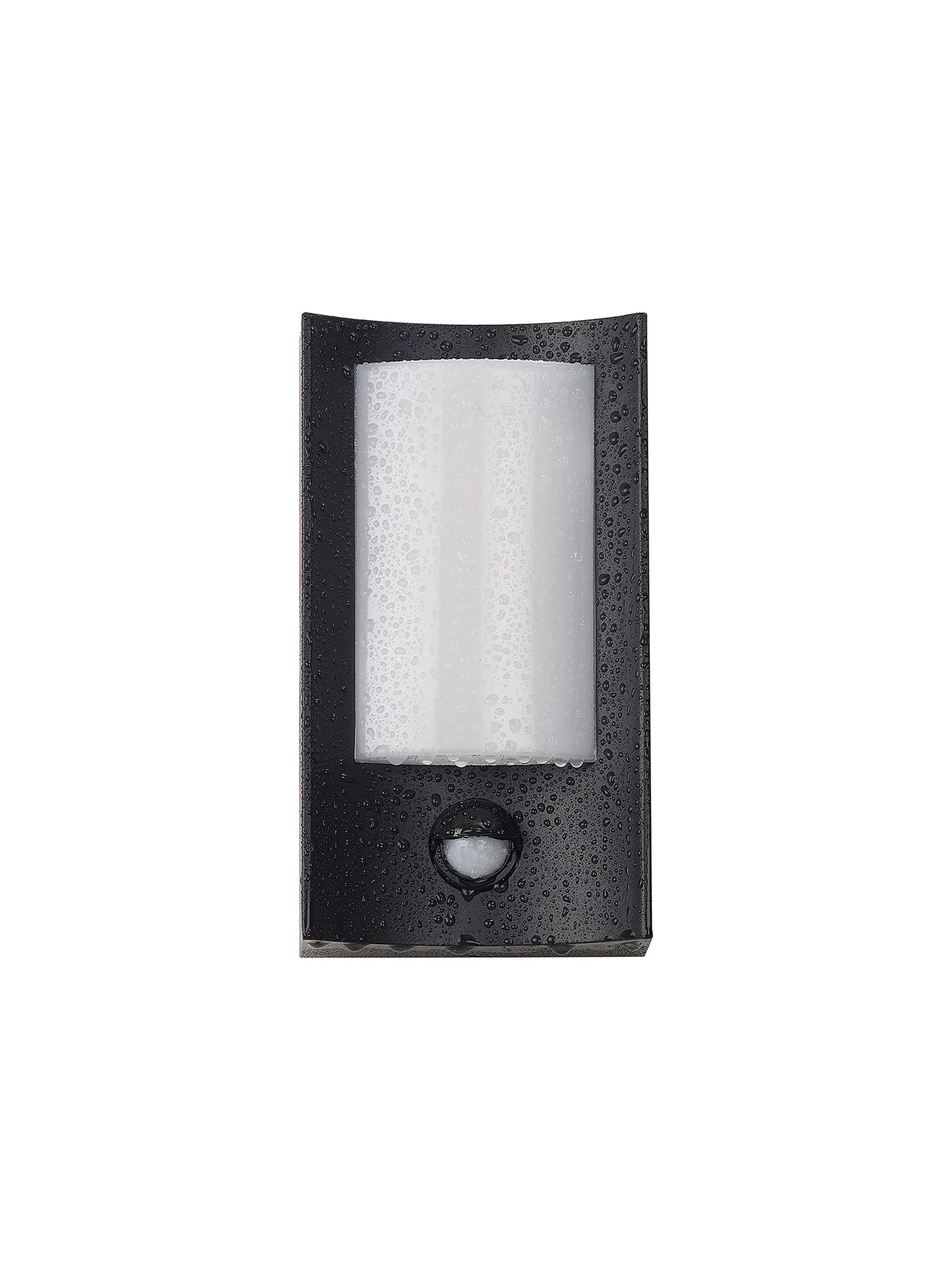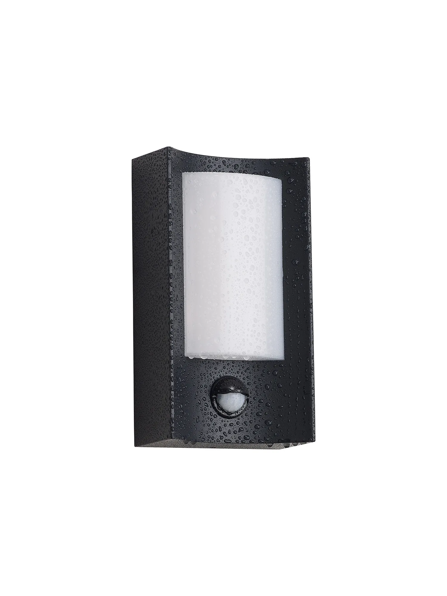Battleford Arch Wall Lamp With PIR Sensor, 1 x 7W LED, 3000K, 500lm, IP54, Matt Black/Opal, 3yrs Warranty