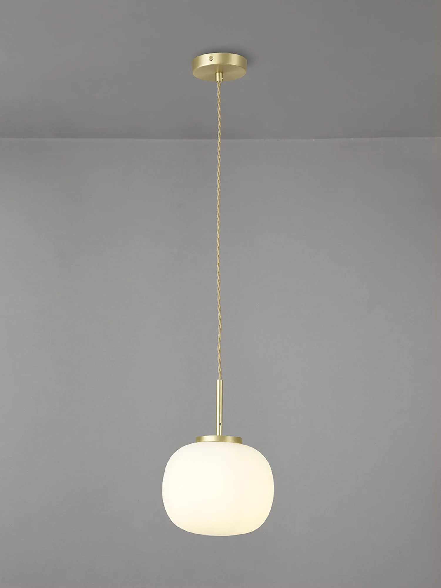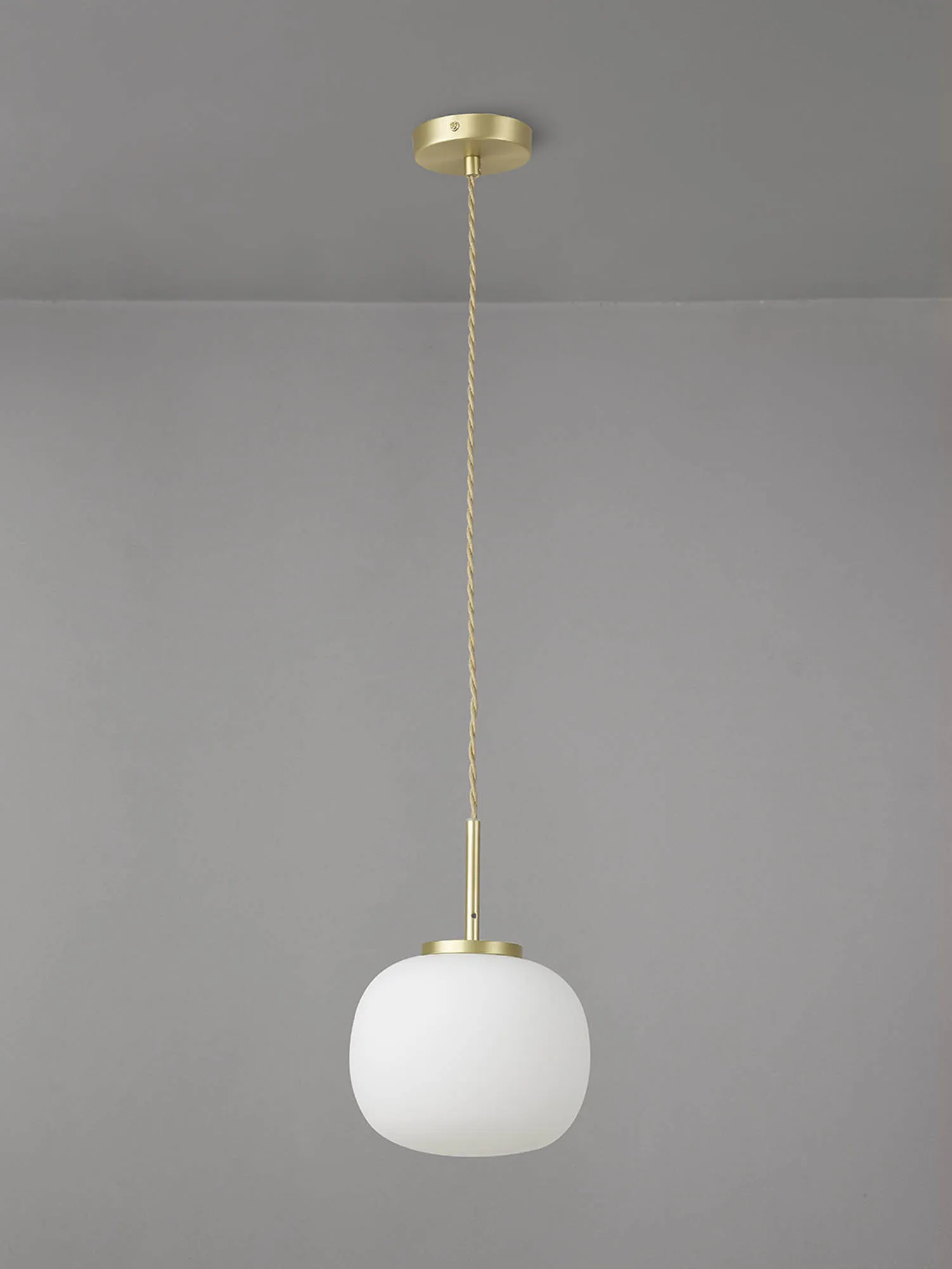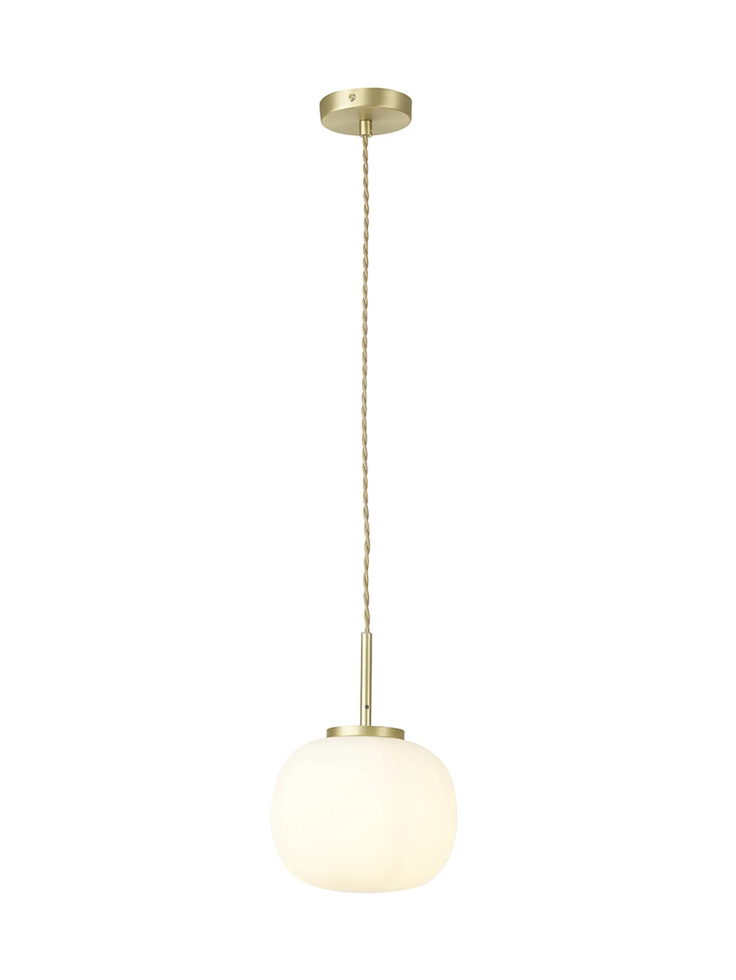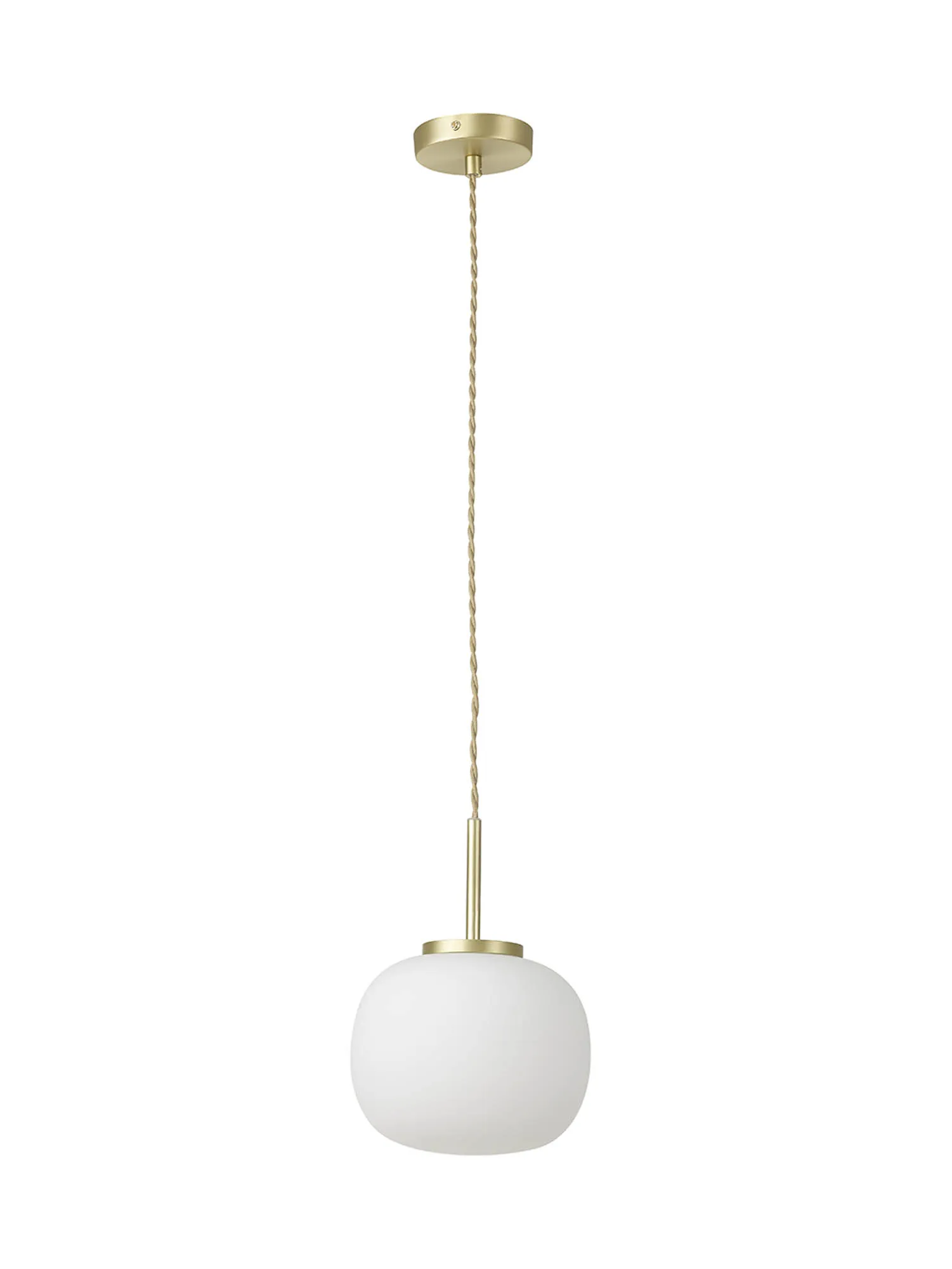 Warman Medium Oval Ball Pendant 1 x E27 Satin Gold Suspension With Frosted White Glass Globe