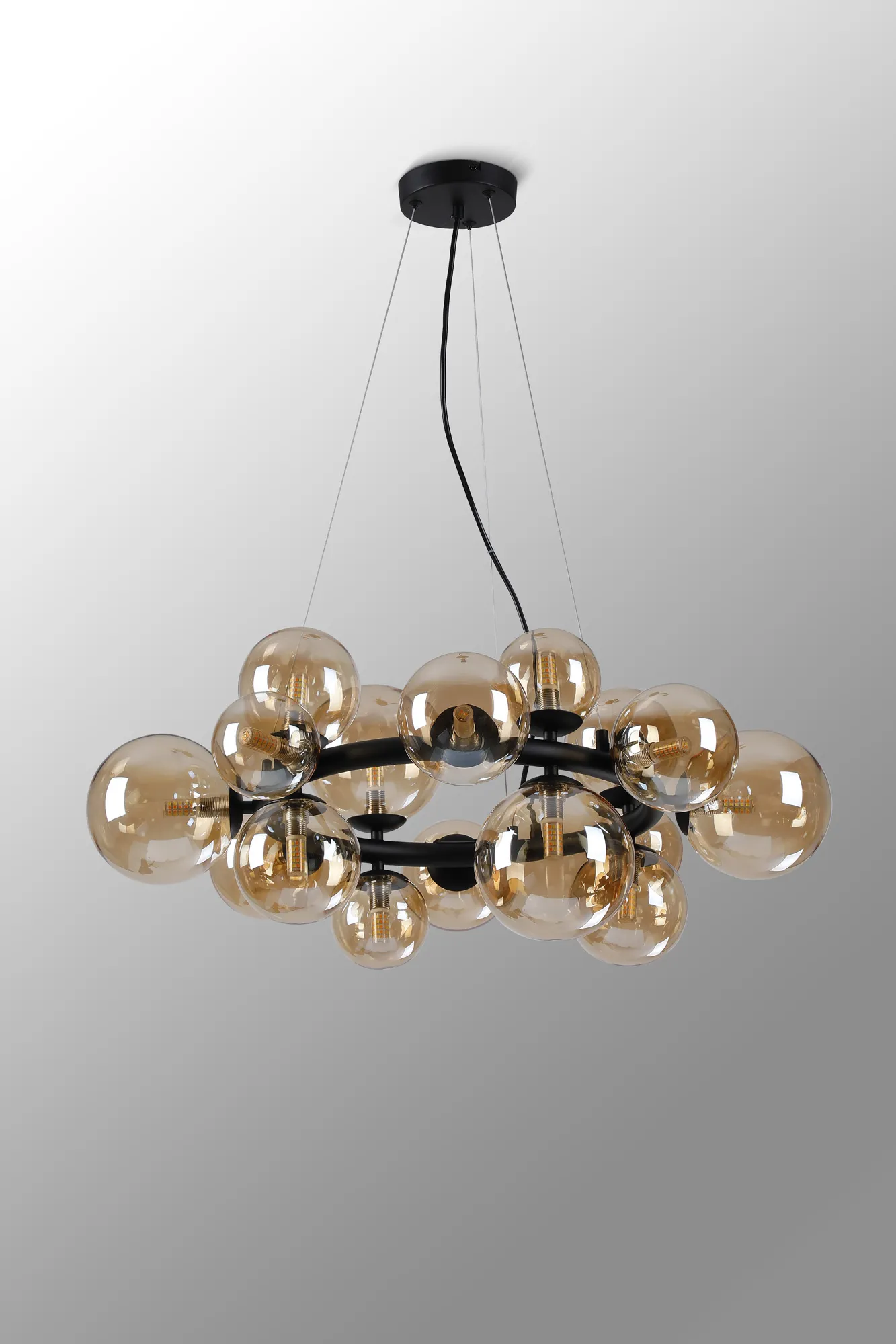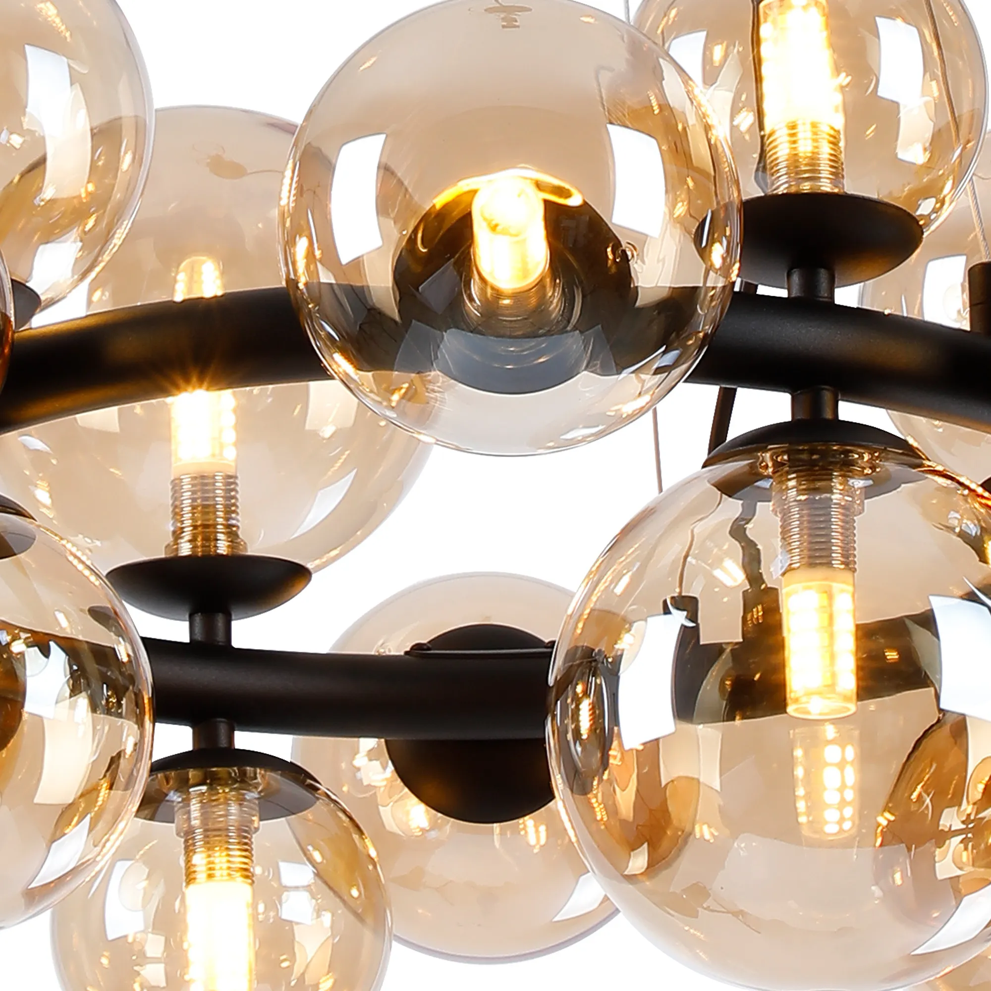 Wayburn 31cm Vertical Linear Telescopic Pendant, 10 x G9, Satin Black, Amber Plated Mixed Size Glass