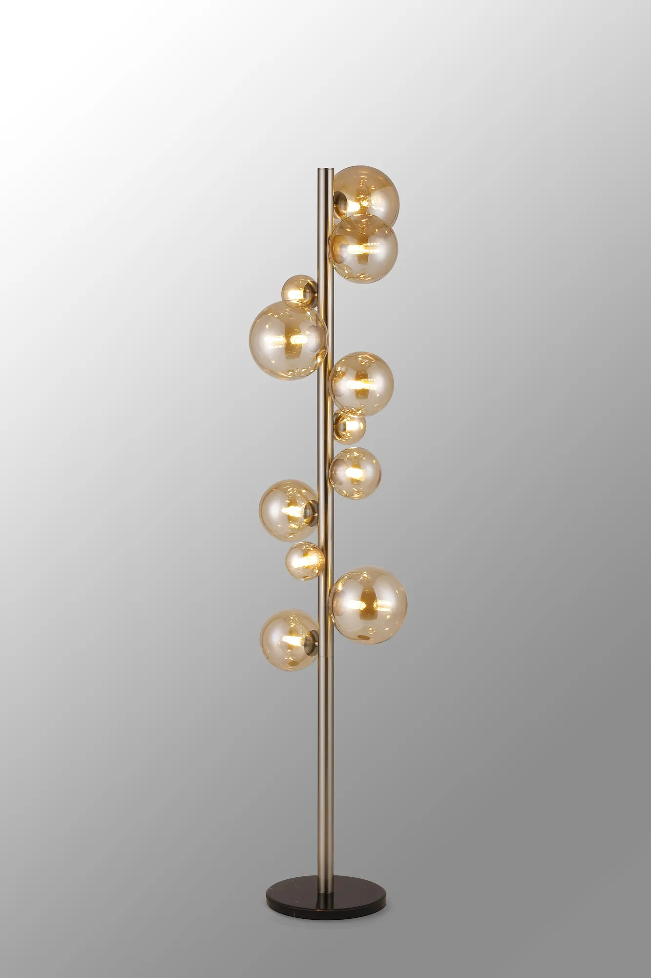 OTHER Wayburn Floor Lamp, 11 x G9, Satin Nickel, Amber Plated Glass