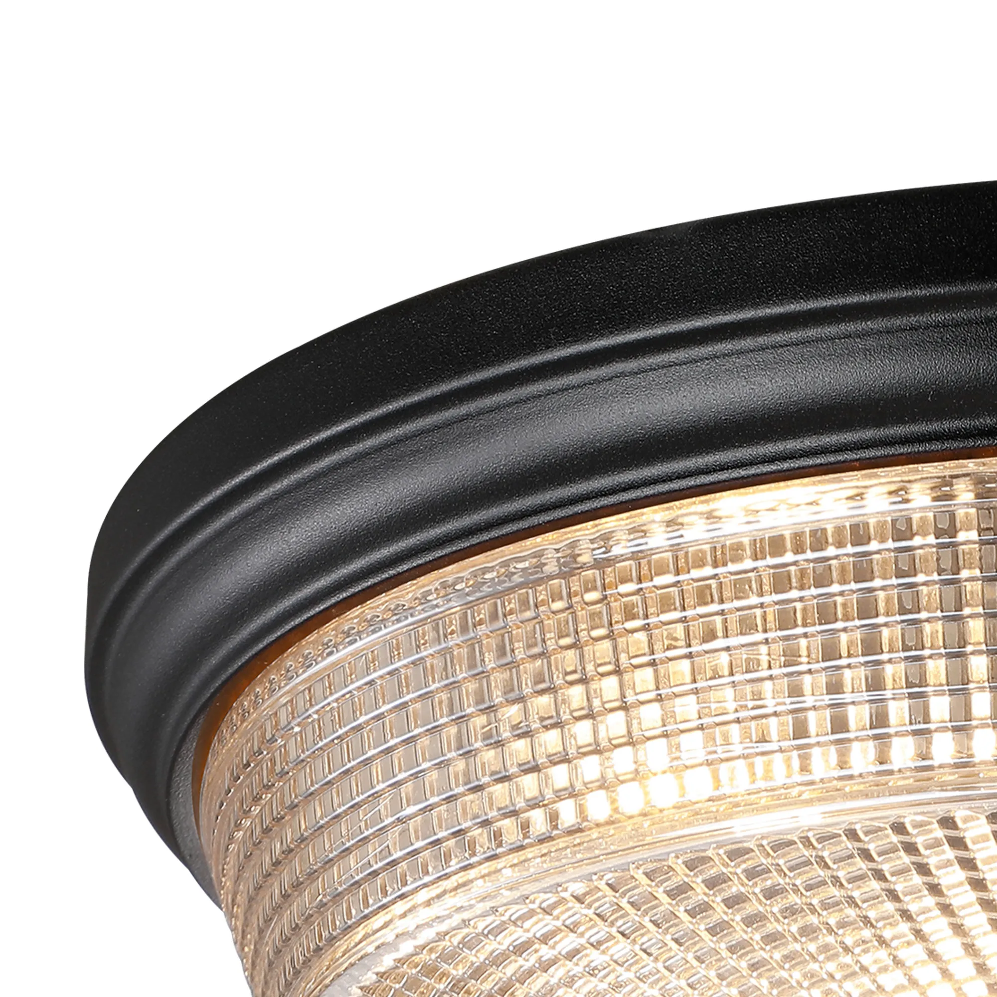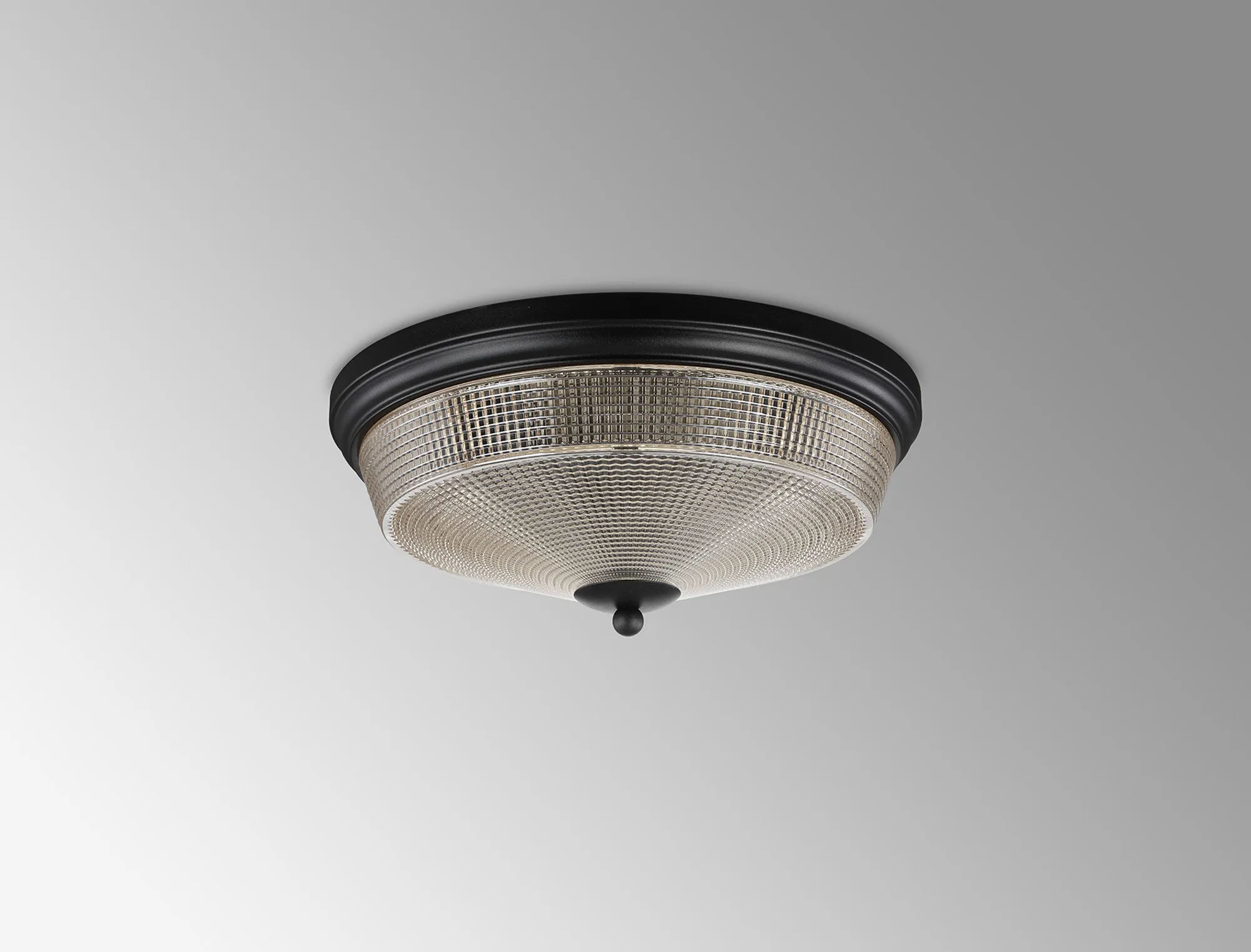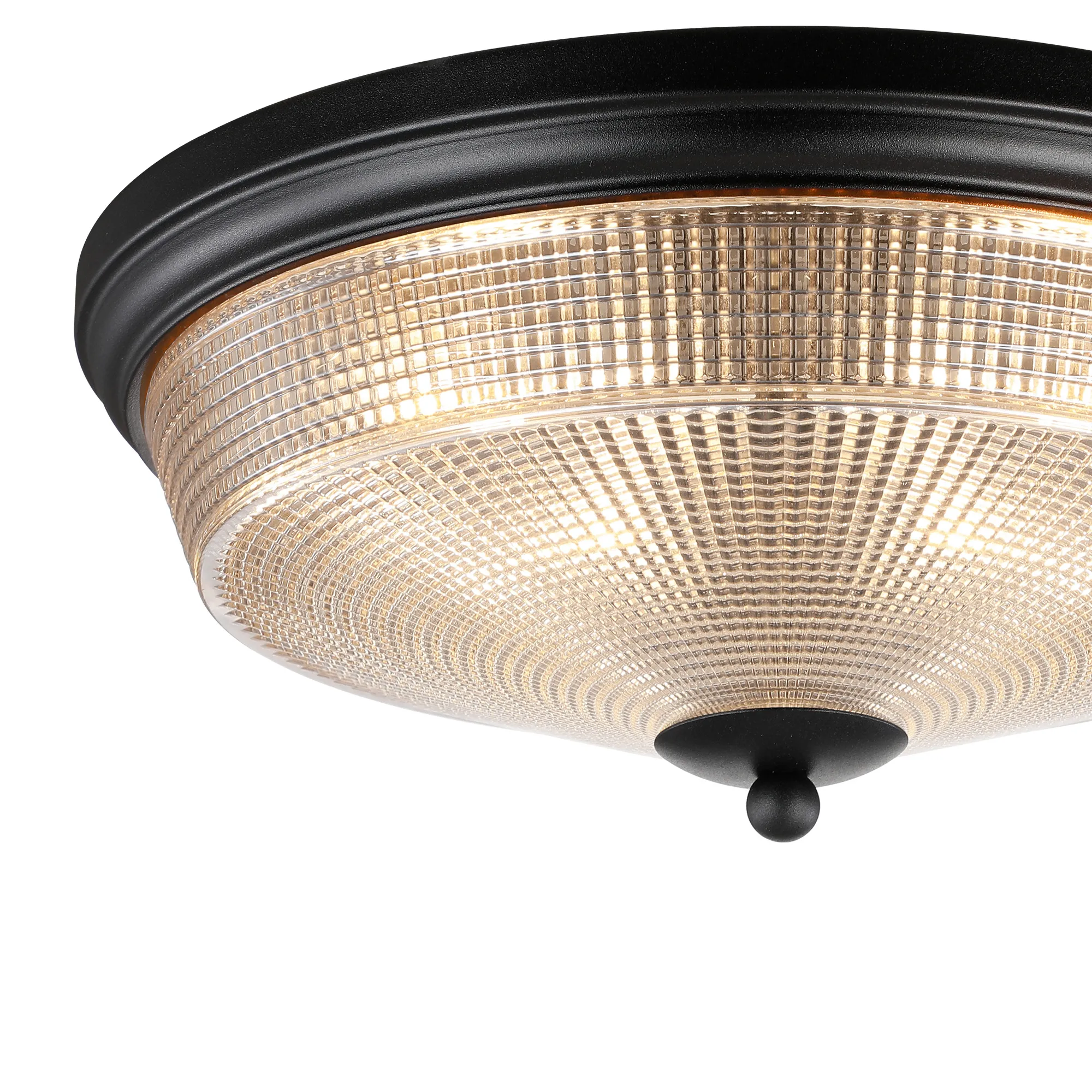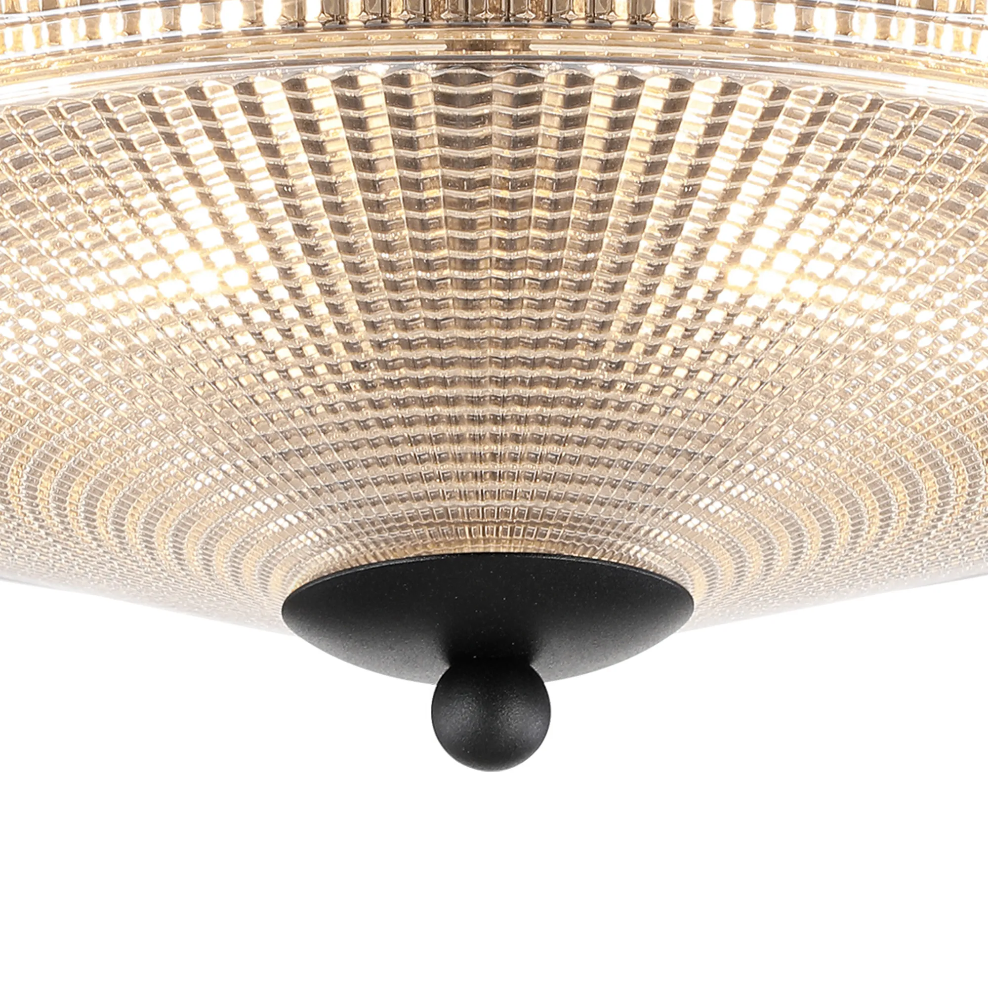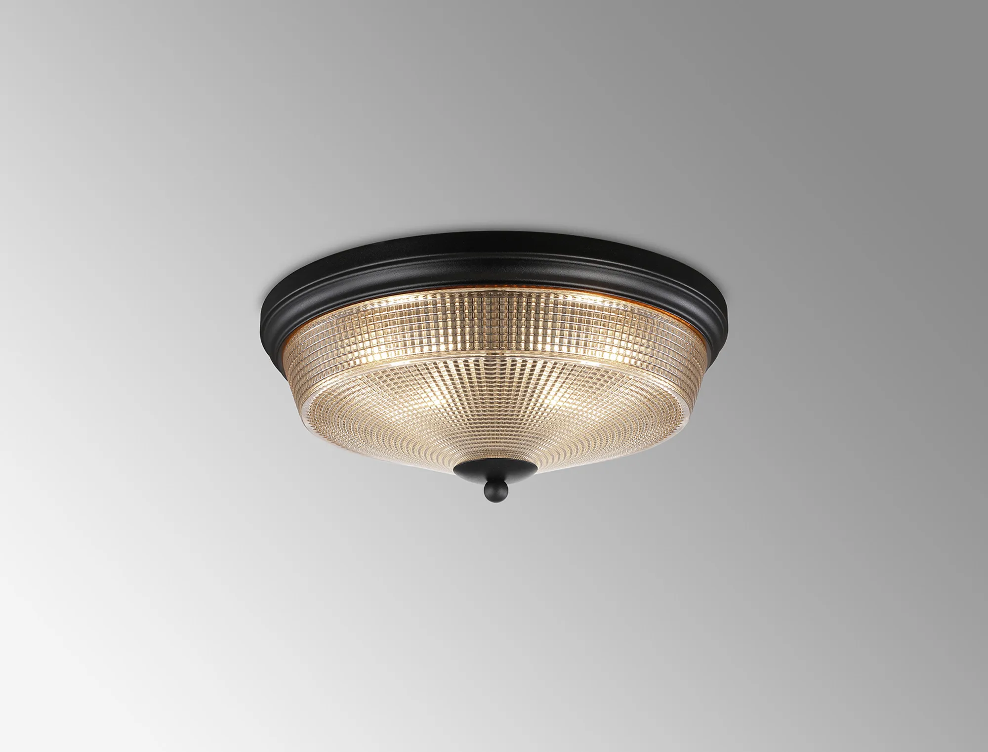 OTHER Yorkton 2 Light E27 Flush Ceiling Light, Satin Black/Amber Glass