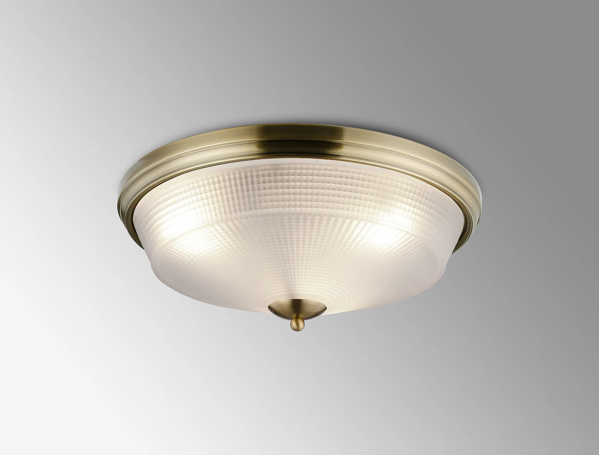 Yorkton 2 Light E27 Flush Ceiling Light, Antique Brass/Frosted Glass