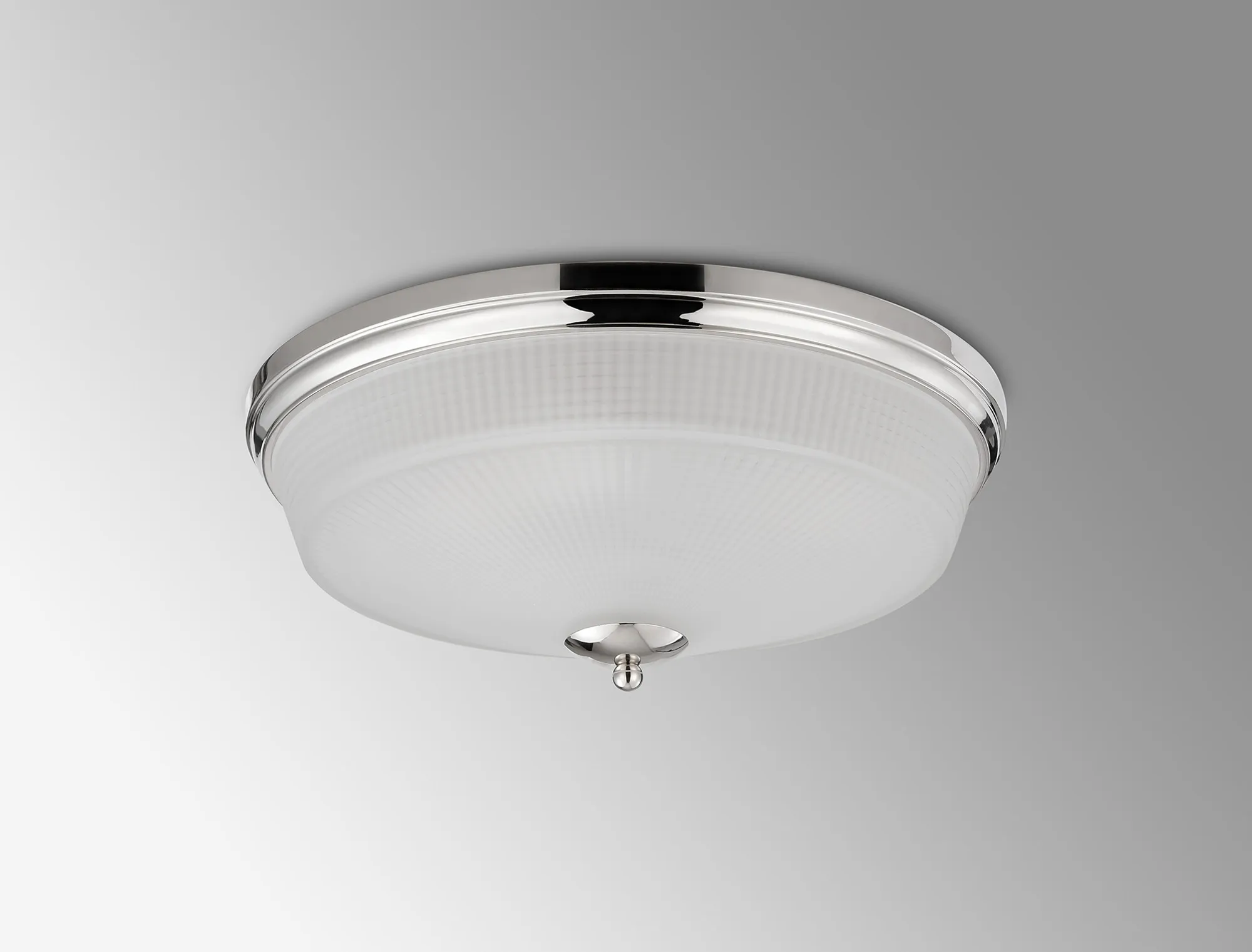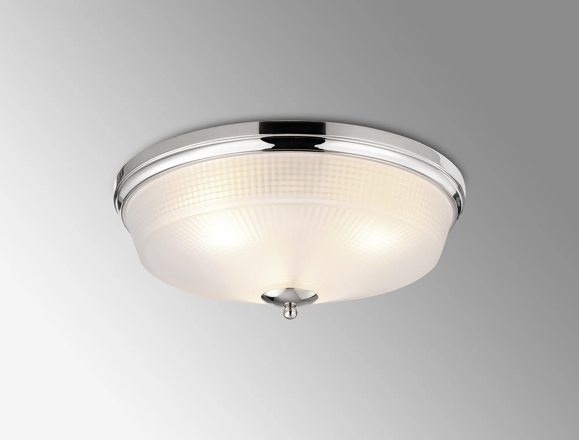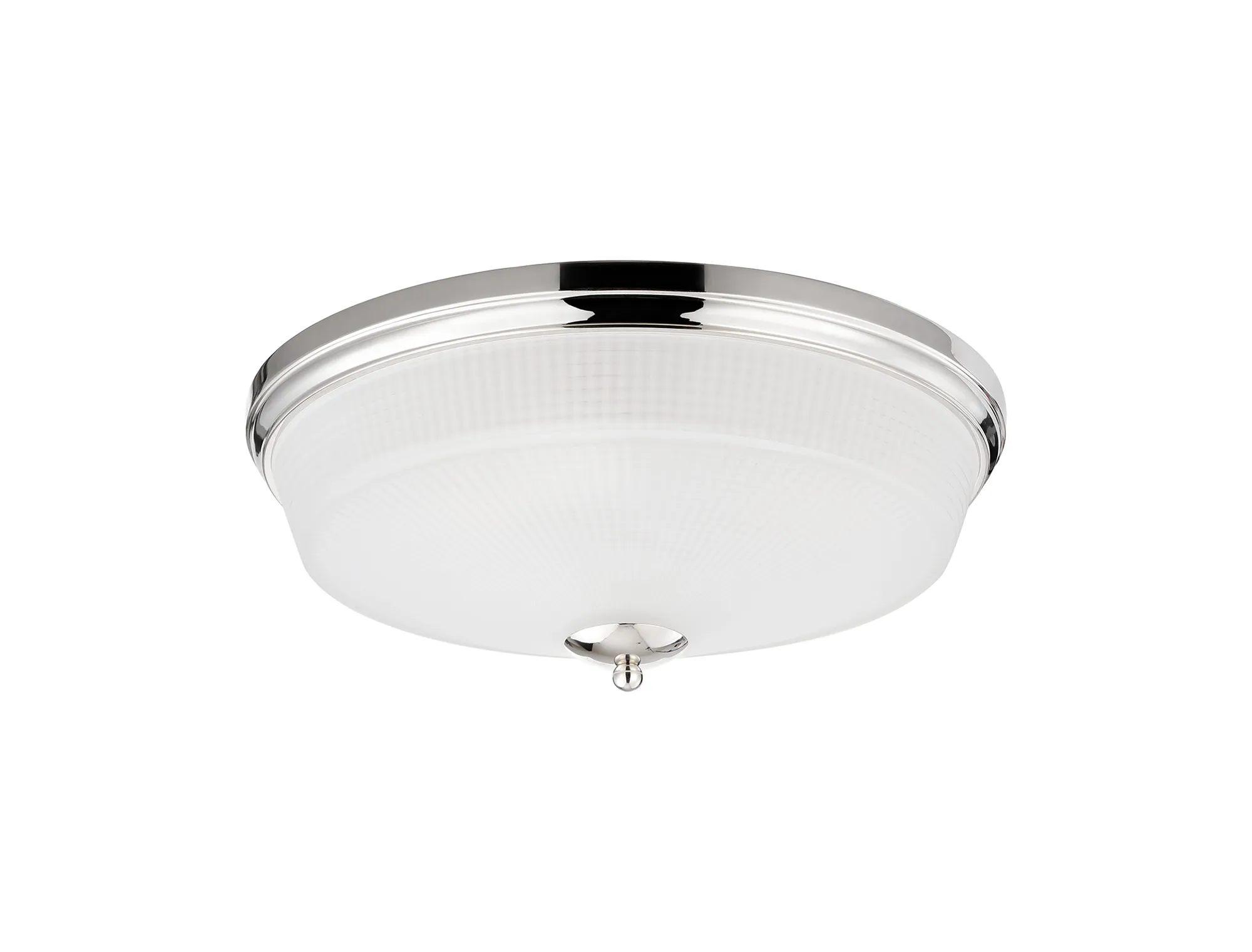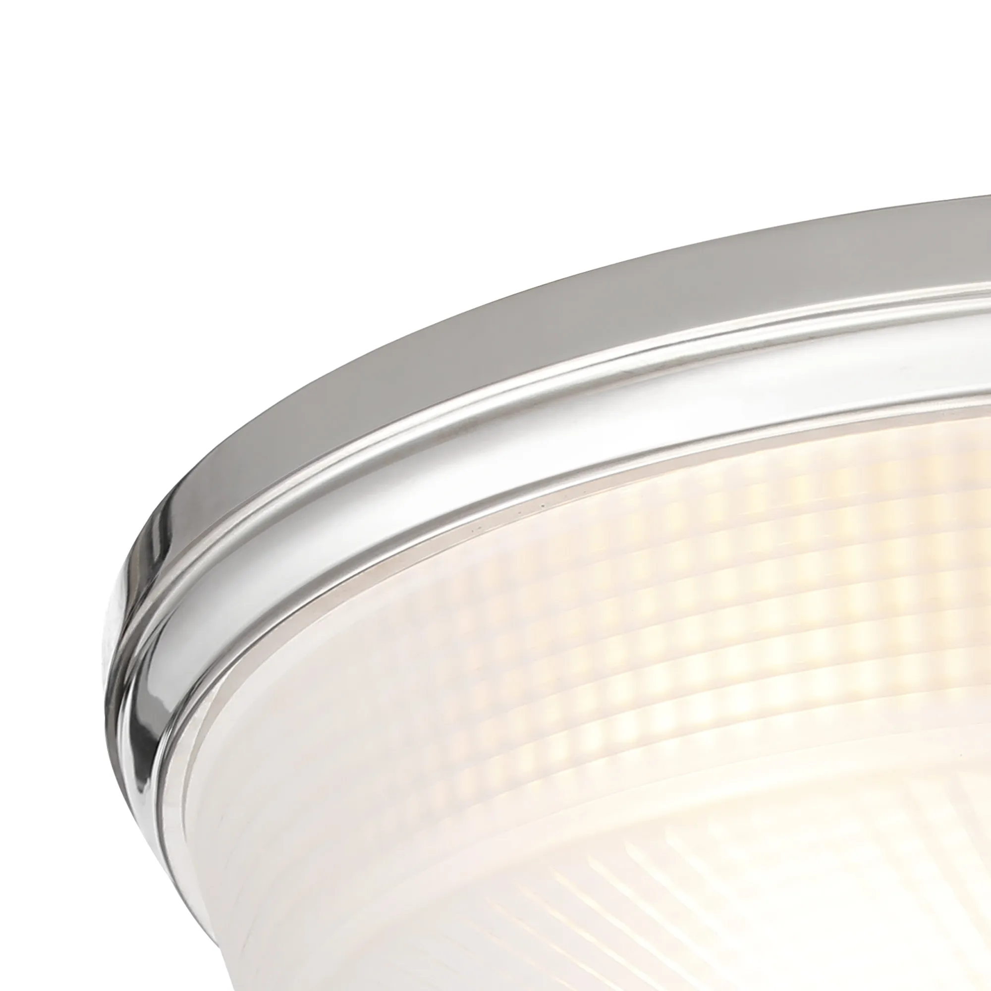 Yorkton 2 Light E27 Flush Ceiling Light, Polished Nickel/Frosted Glass
