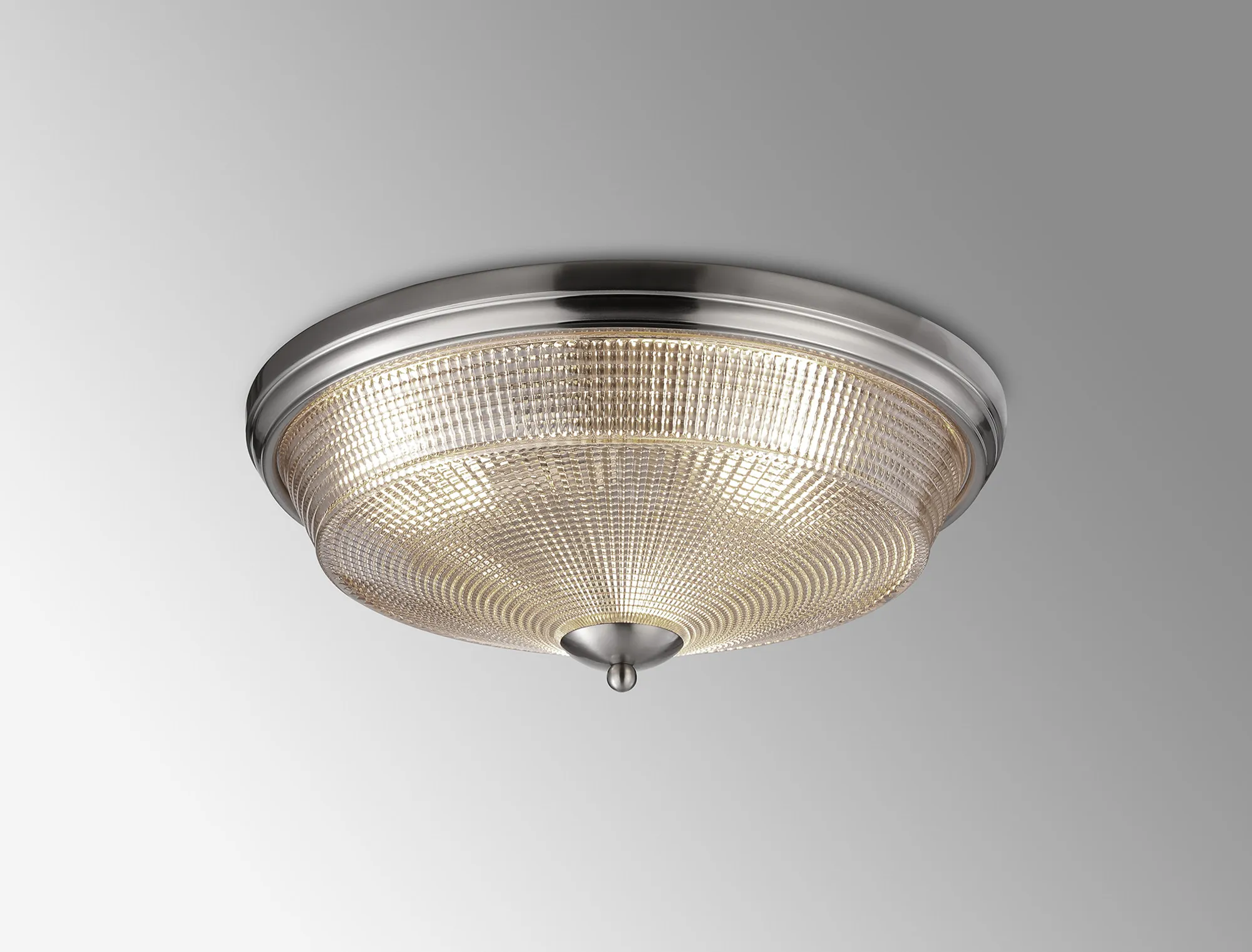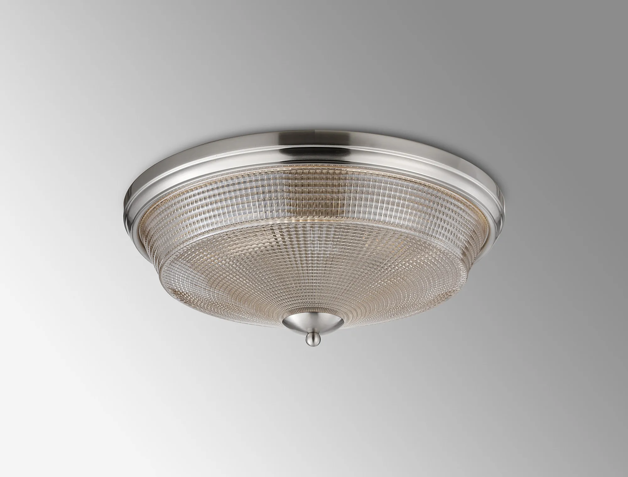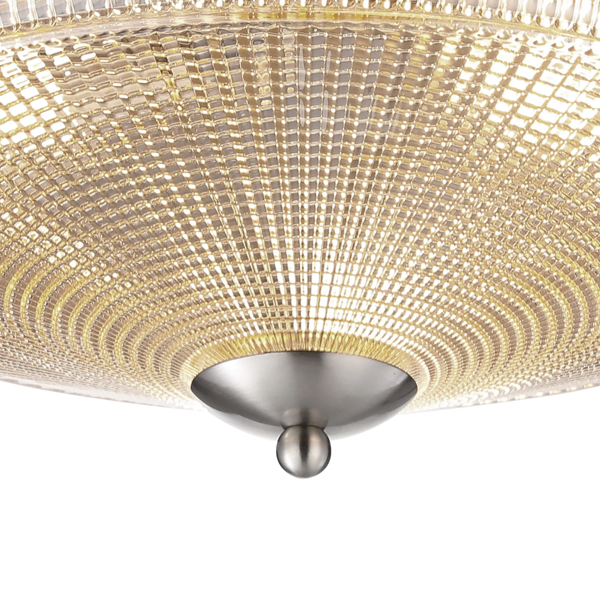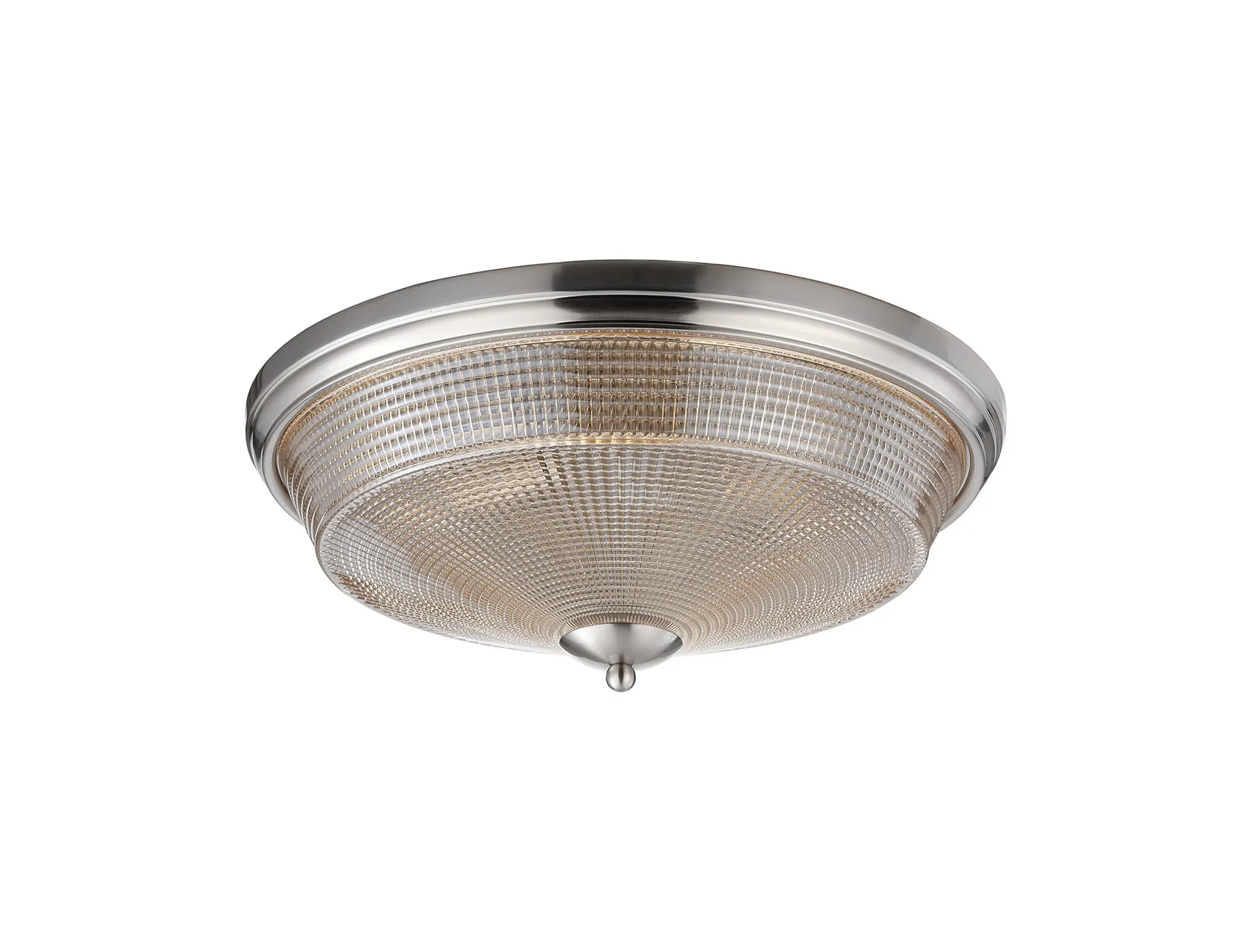 OTHER Yorkton 3 Light E27 Flush Ceiling Light, Satin Nickel/Amber Glass