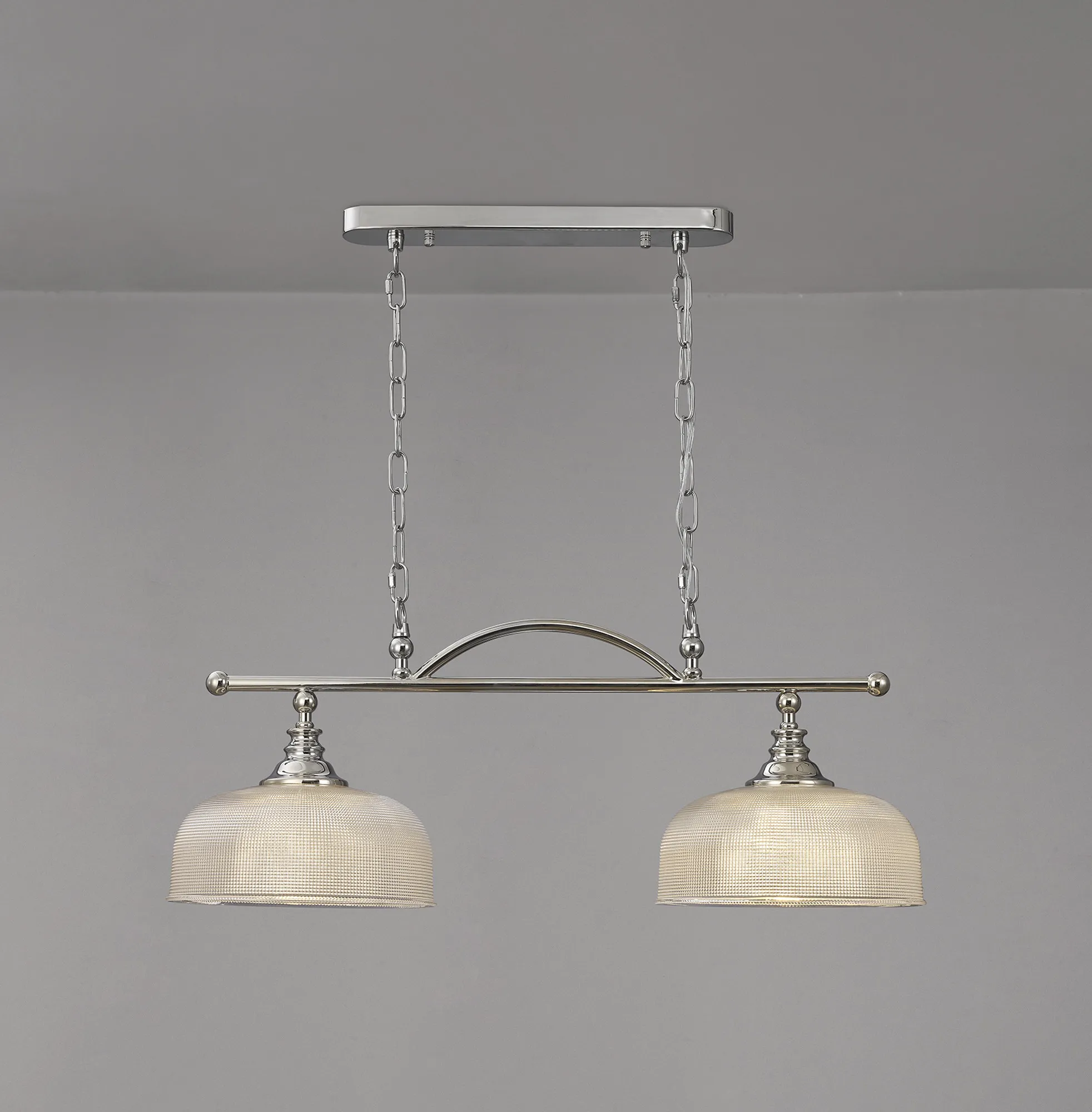 Yorkton 27cm Flush/Single Pendant, 1 Light Adjustable E27, Polished Nickel/Prismatic Glass