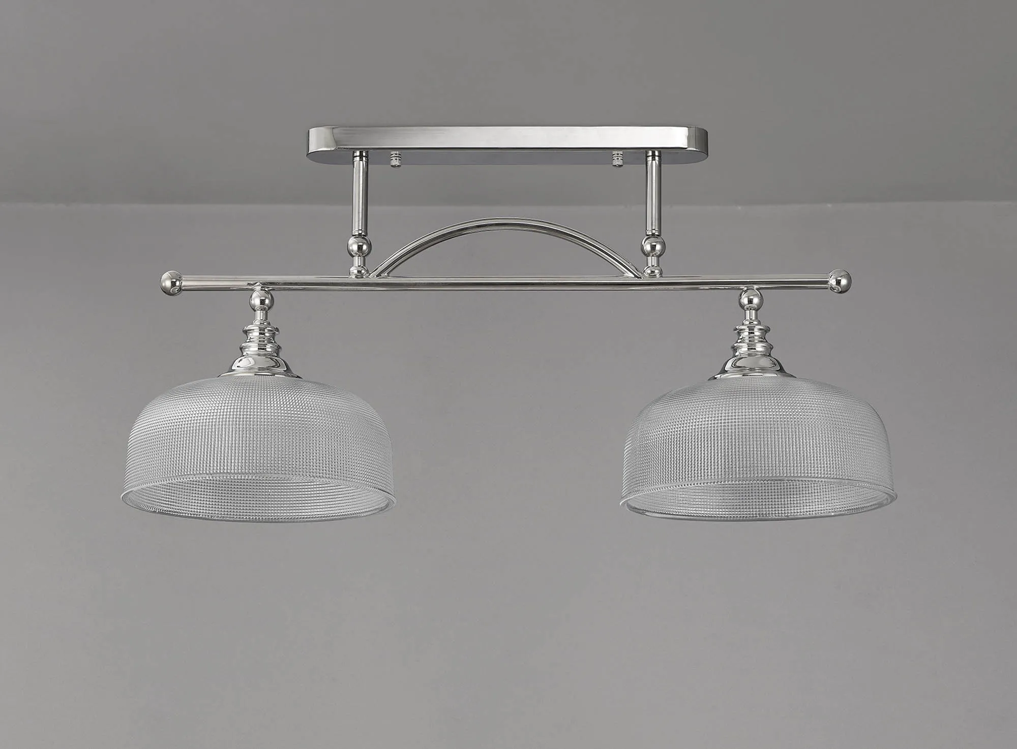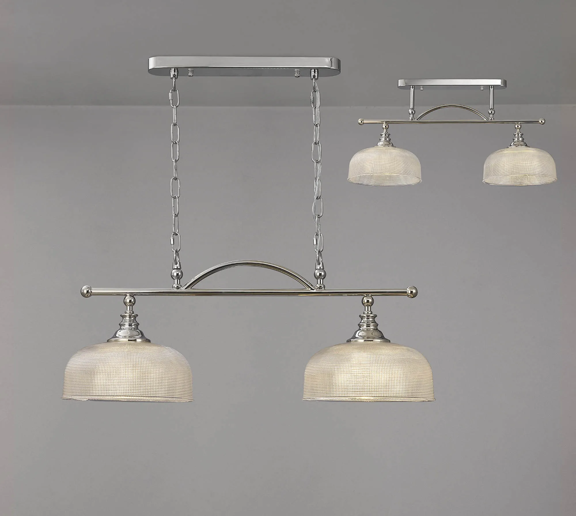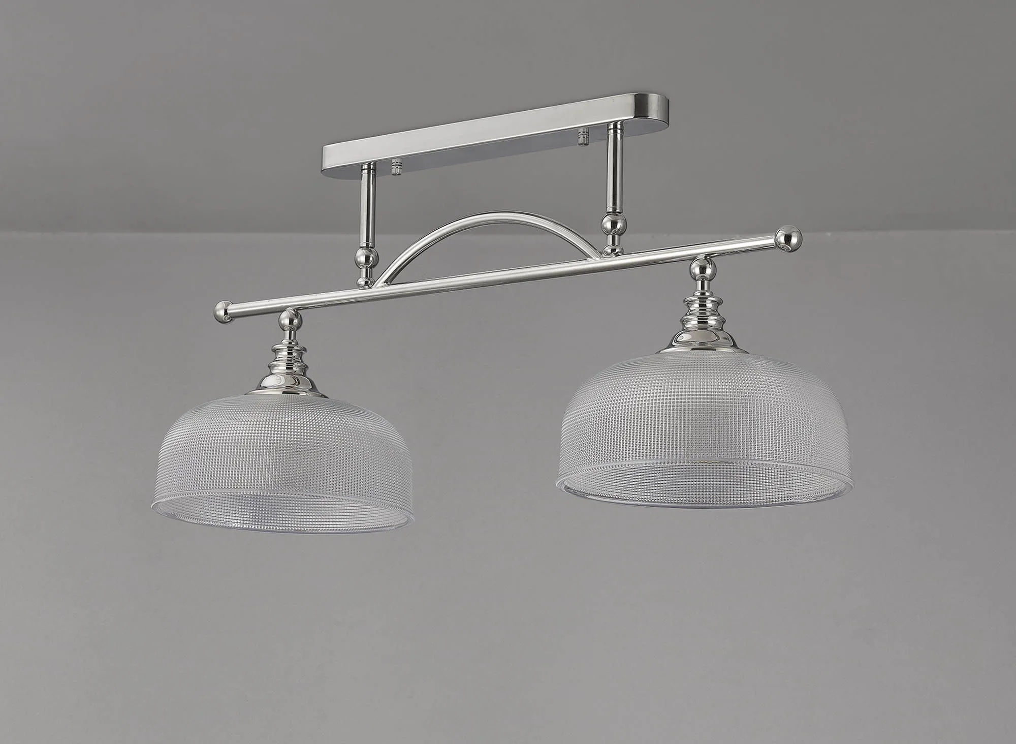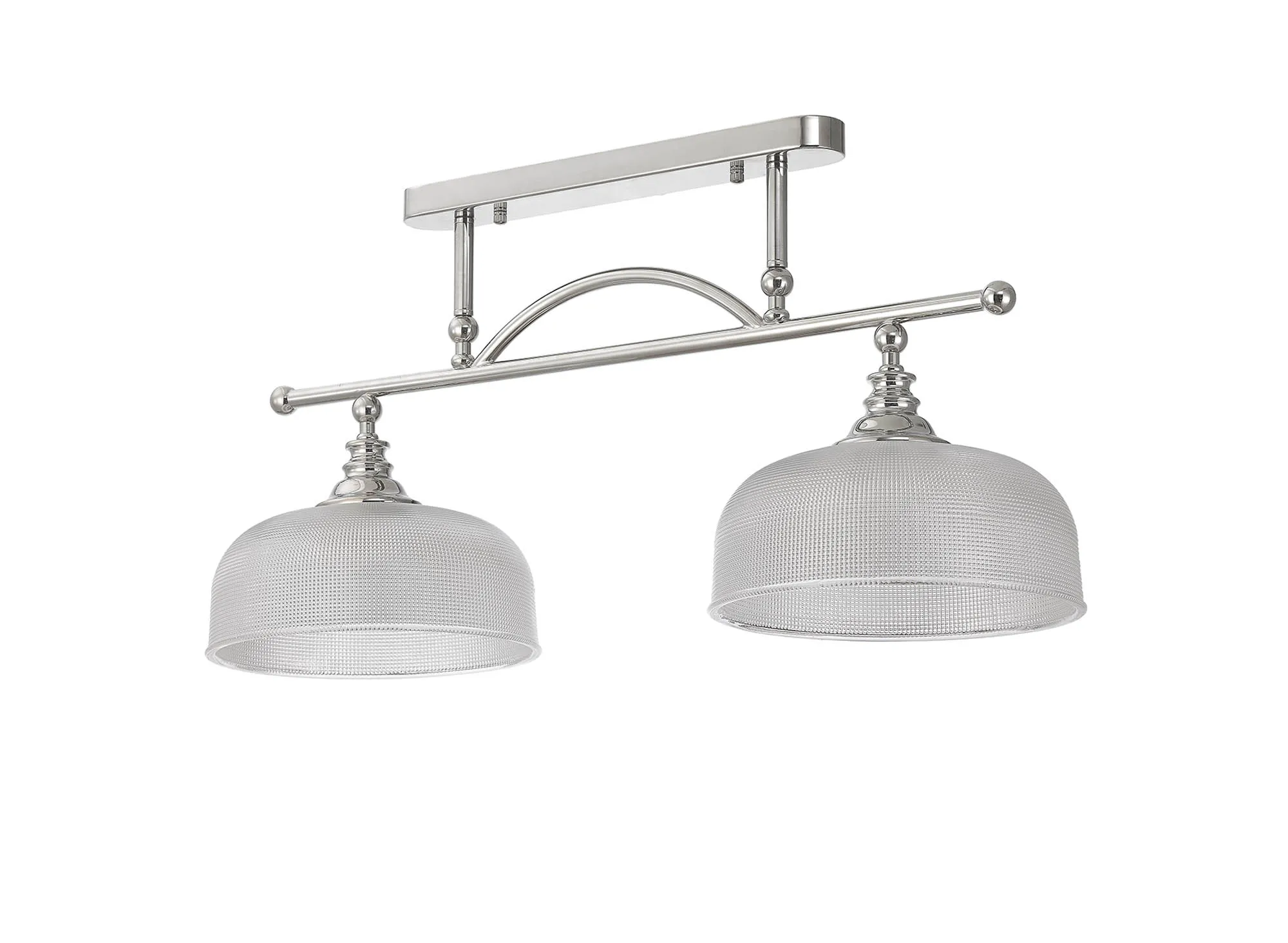 Yorkton Flush/Single Pendant, 1 Light Adjustable E27, Polished Nickel/Prismatic Glass