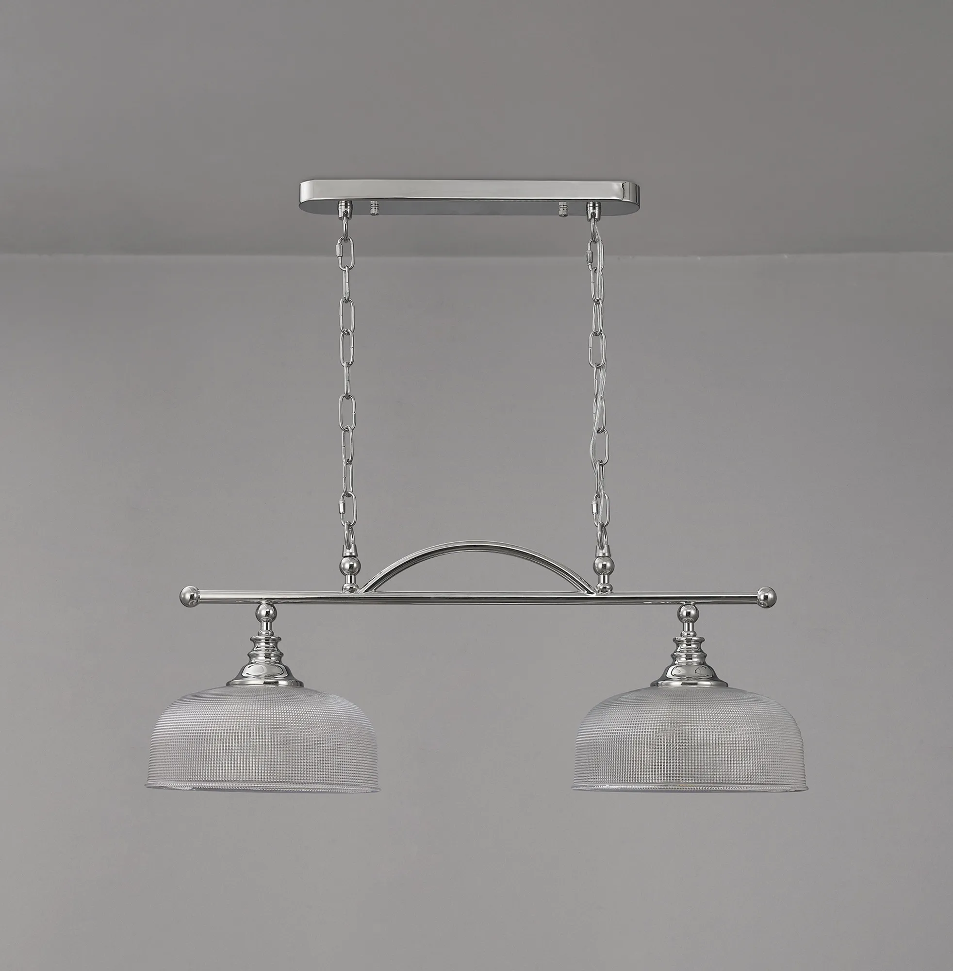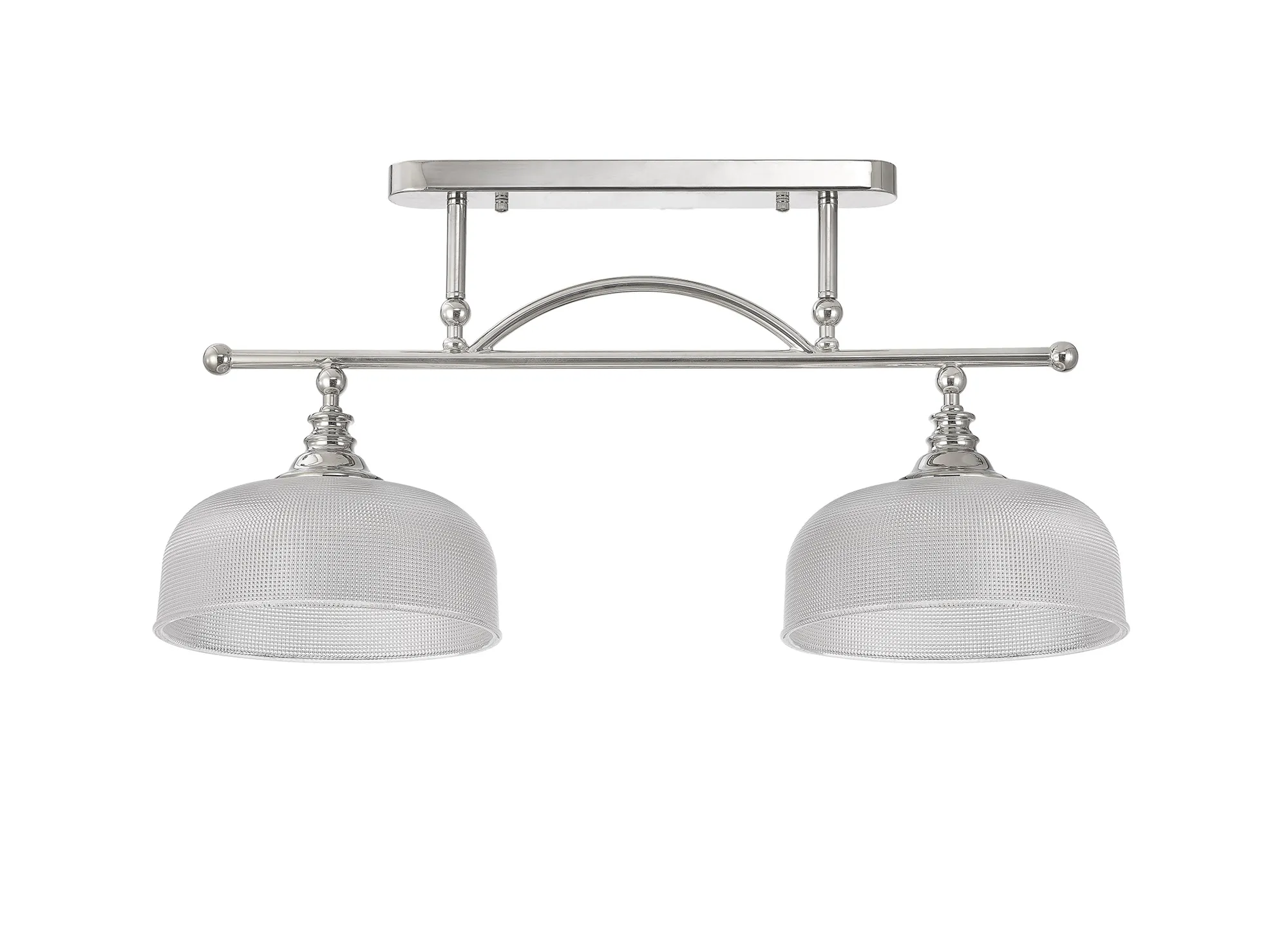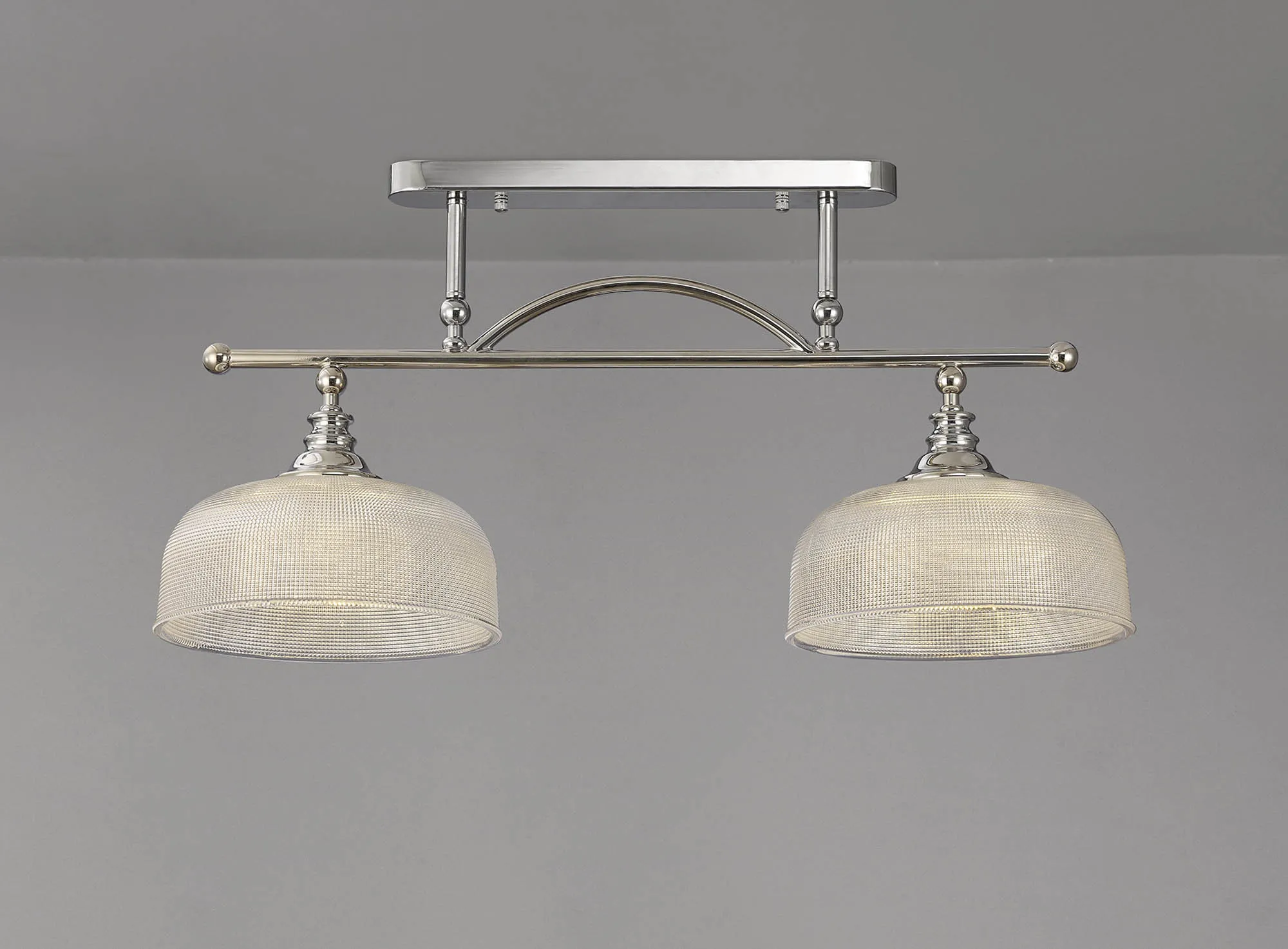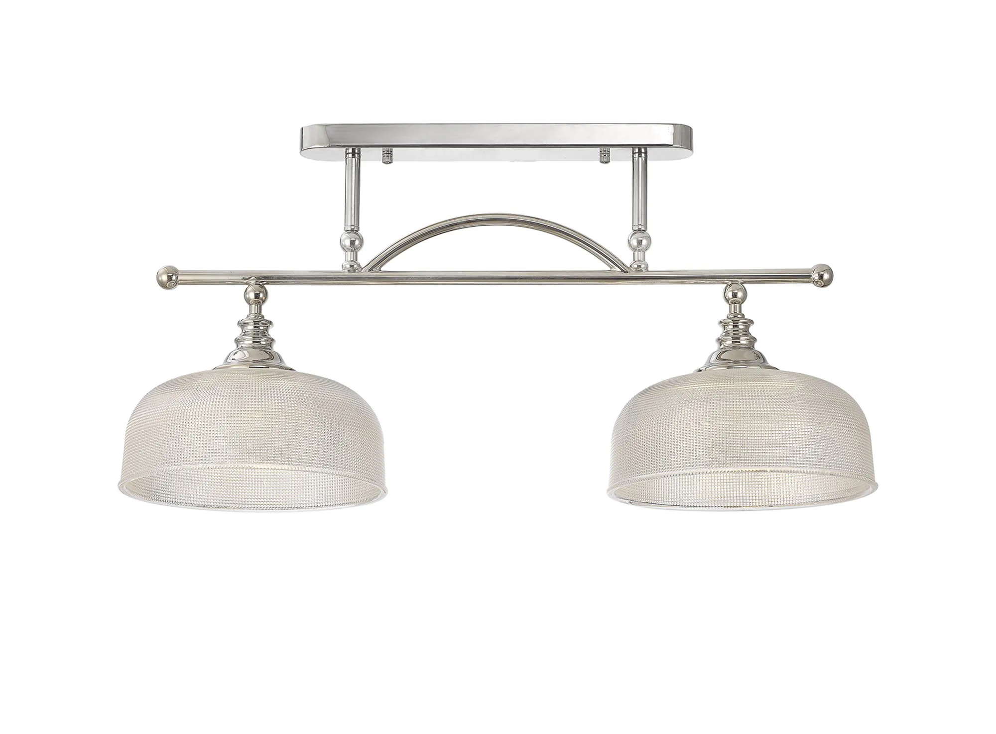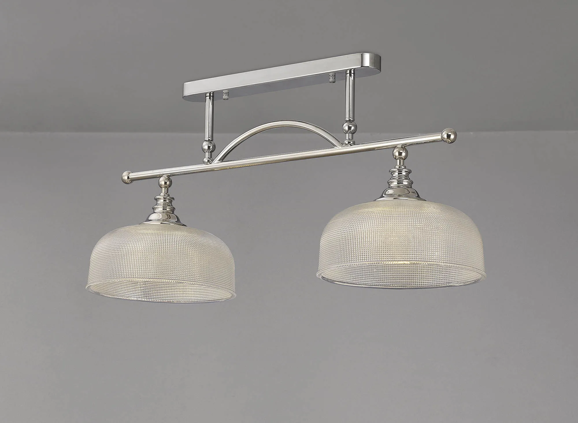 Yorkton Flush/Single Pendant, 1 Light Adjustable E27, Polished Nickel/Prismatic Glass