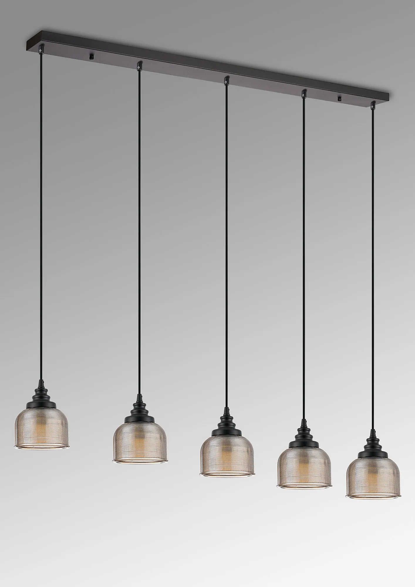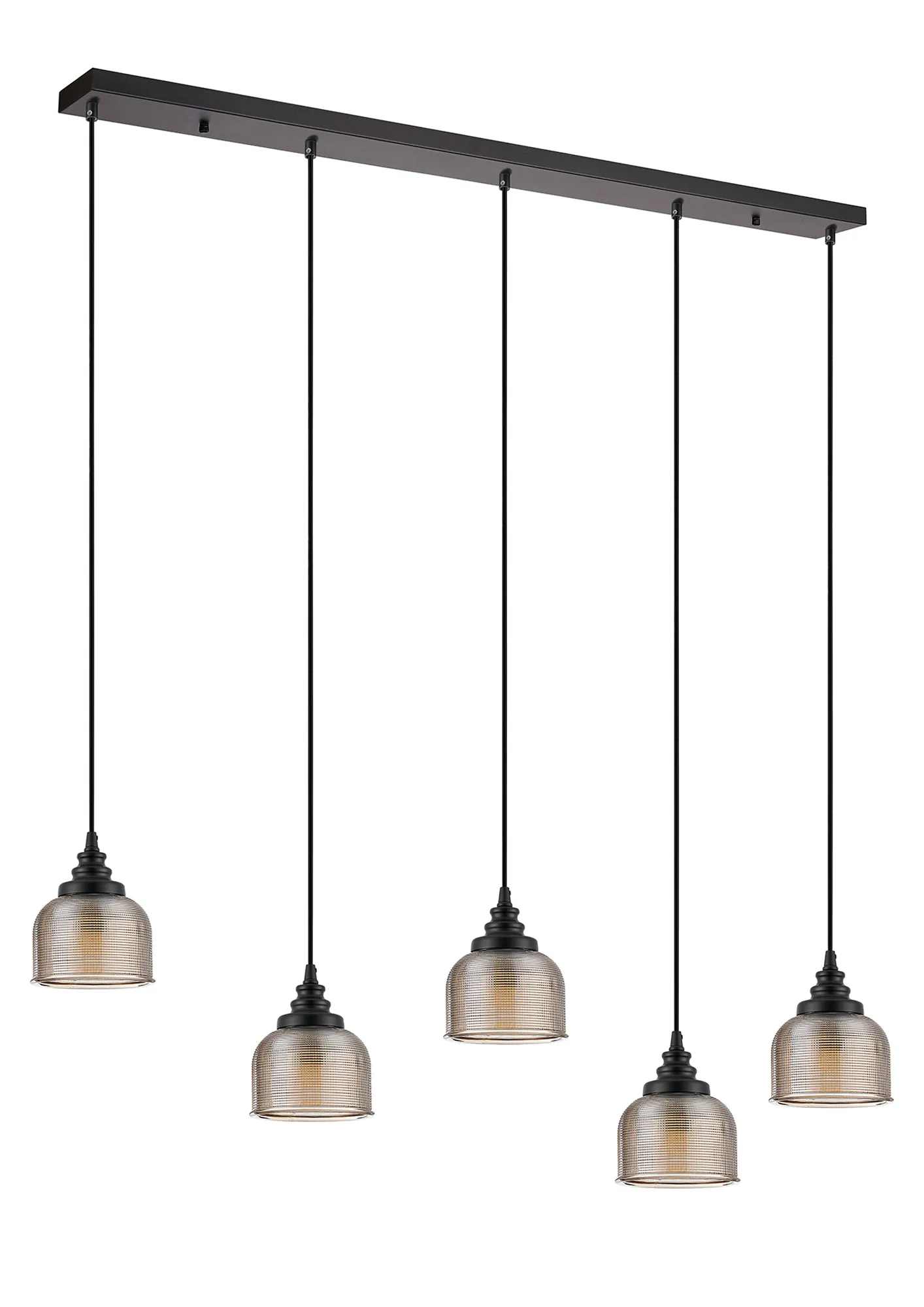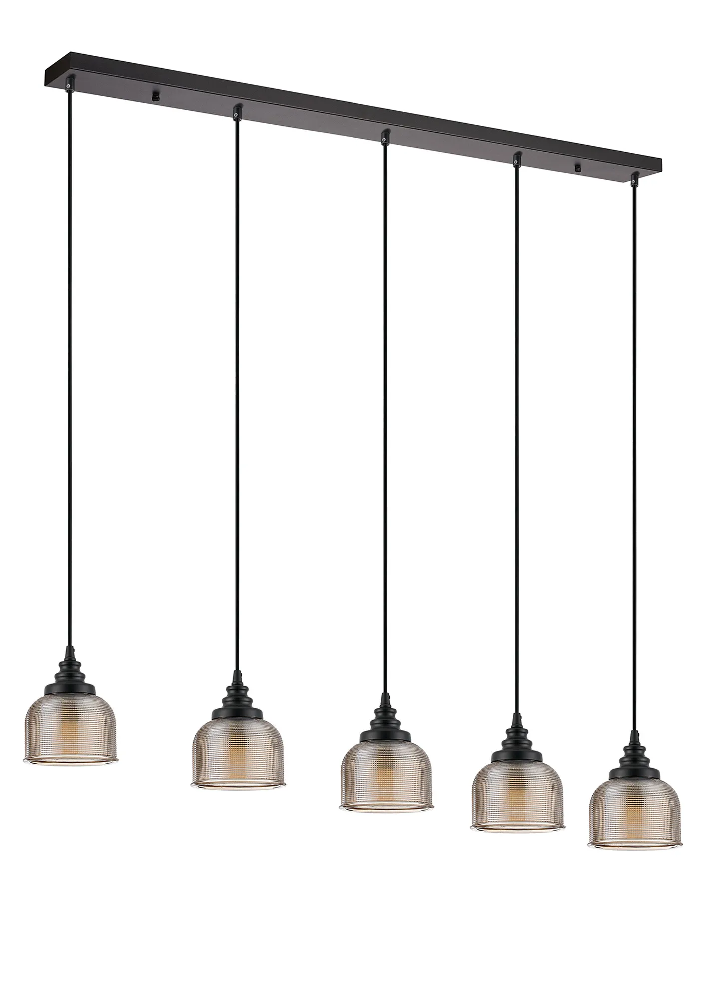OTHER Yorkton 5 Light Linear Pendant, E27, Satin Black/Prismatic Dome Glass, Amber
