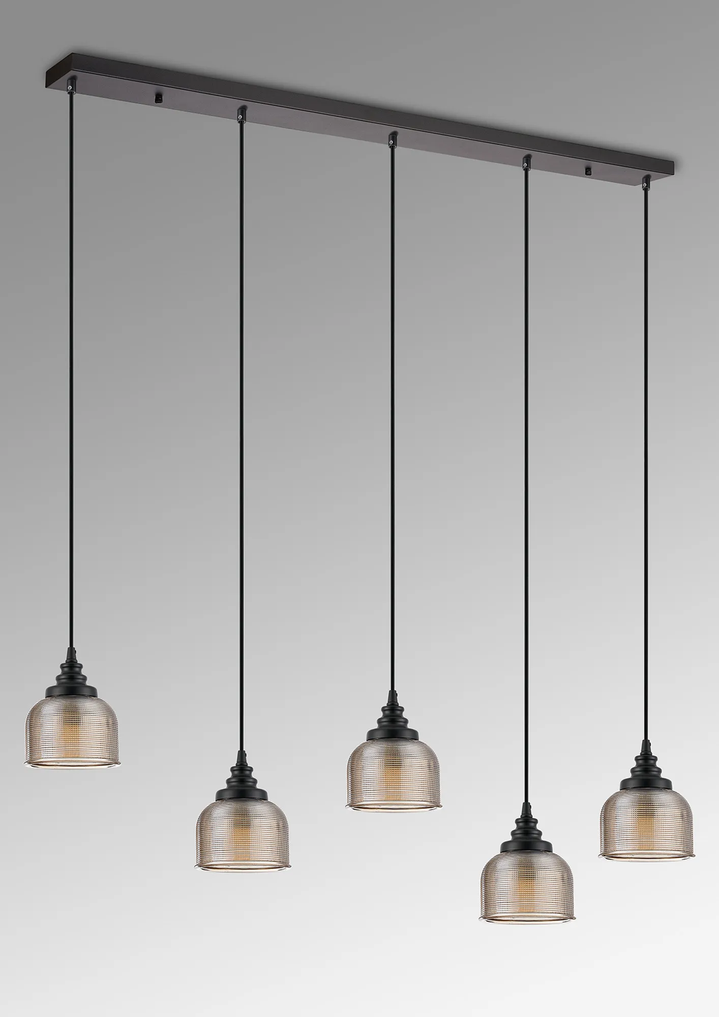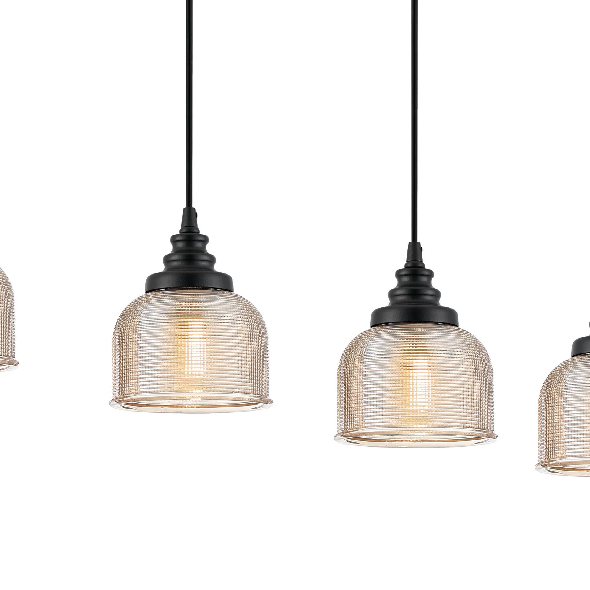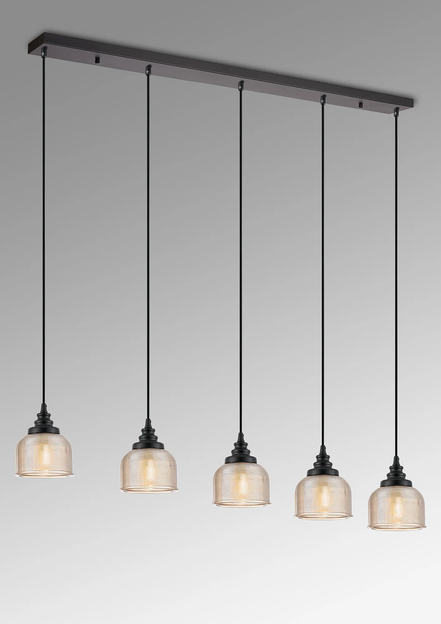 OTHER Yorkton 5 Light Linear Pendant, E27, Satin Black/Prismatic Dome Glass, Amber