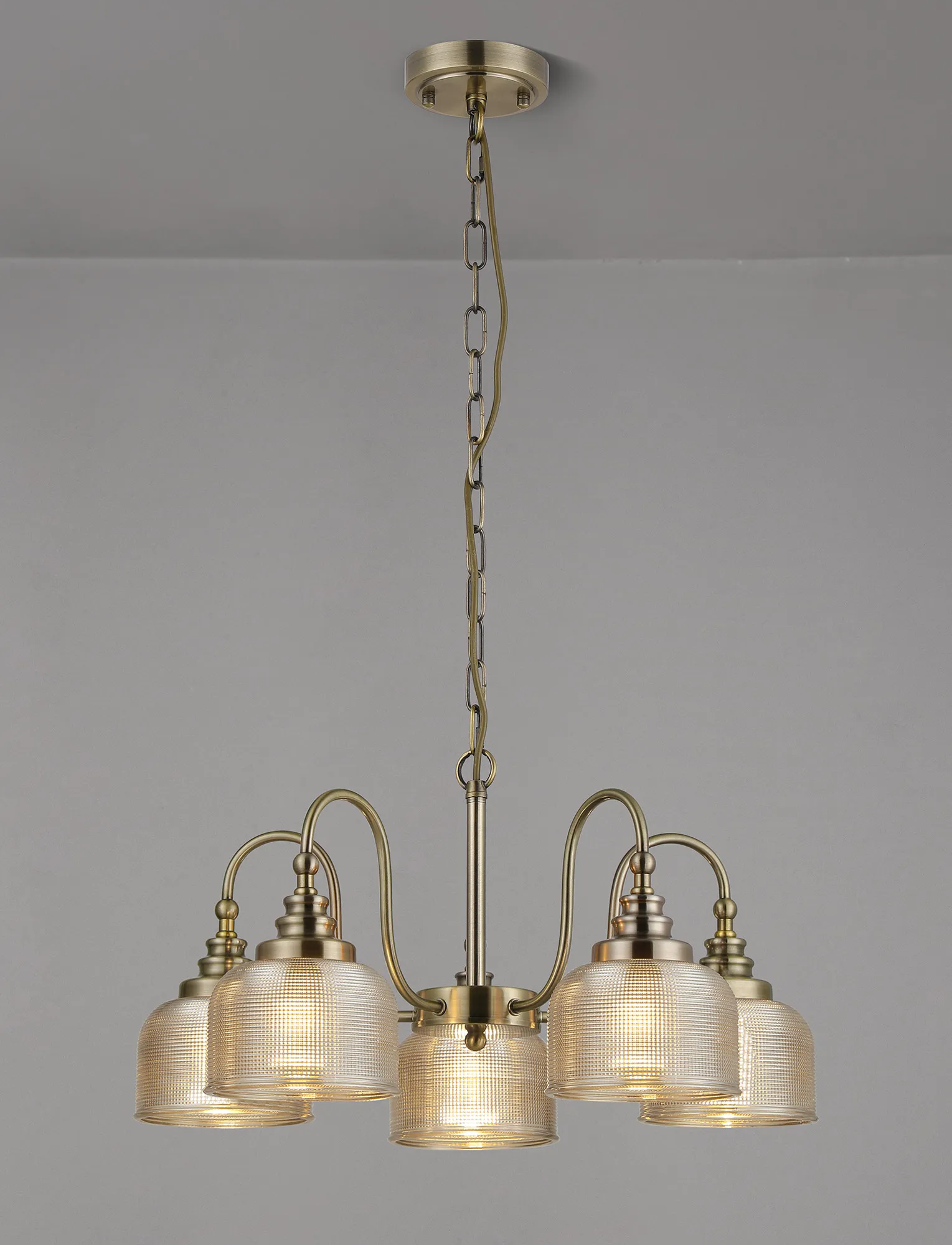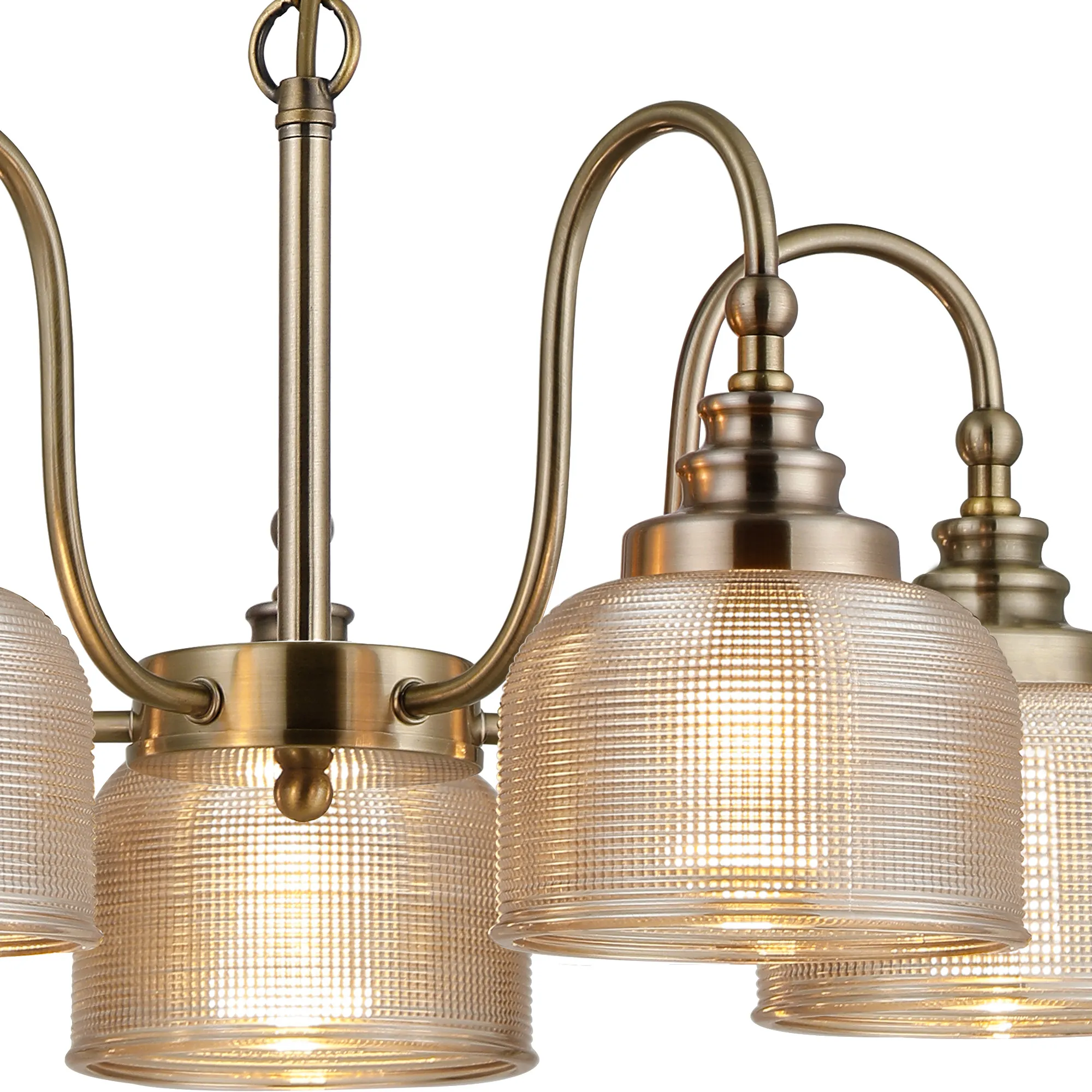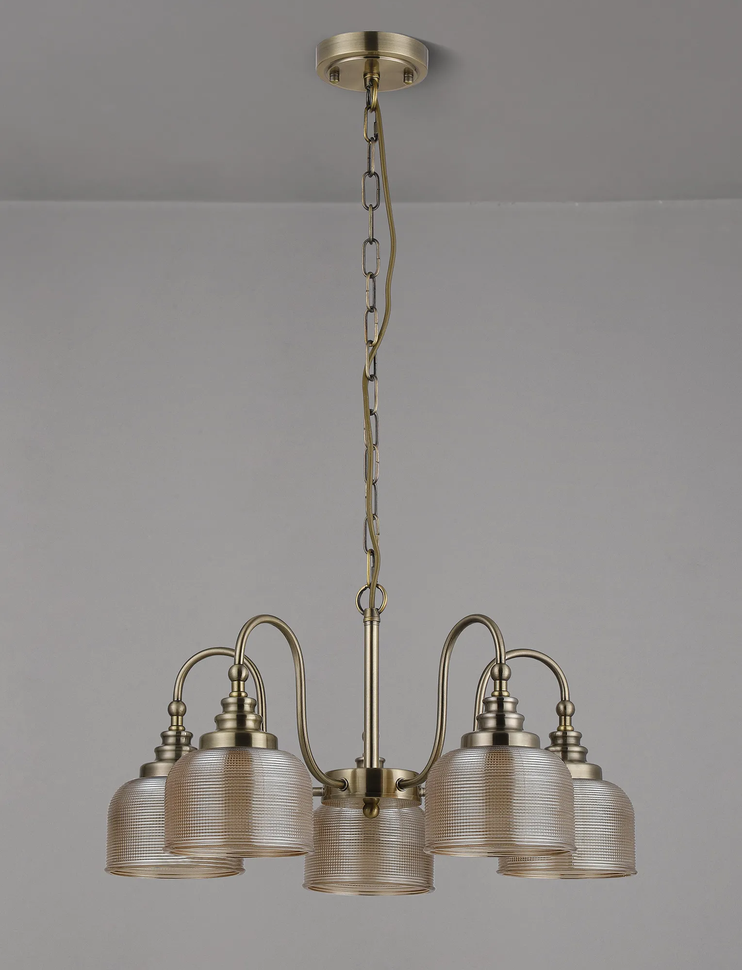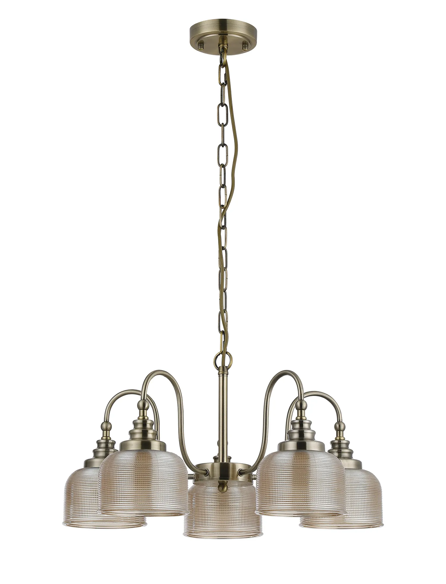 OTHER Yorkton Semi Flush/Pendant, 5 Light E27, Antique Brass/Amber Glass