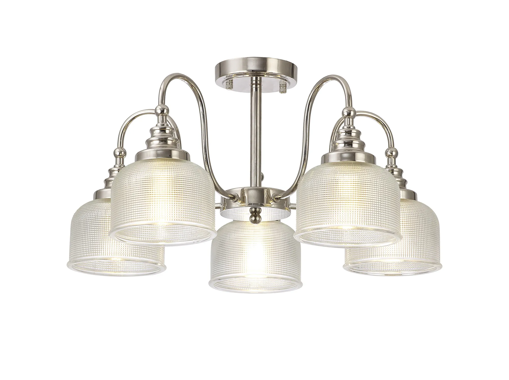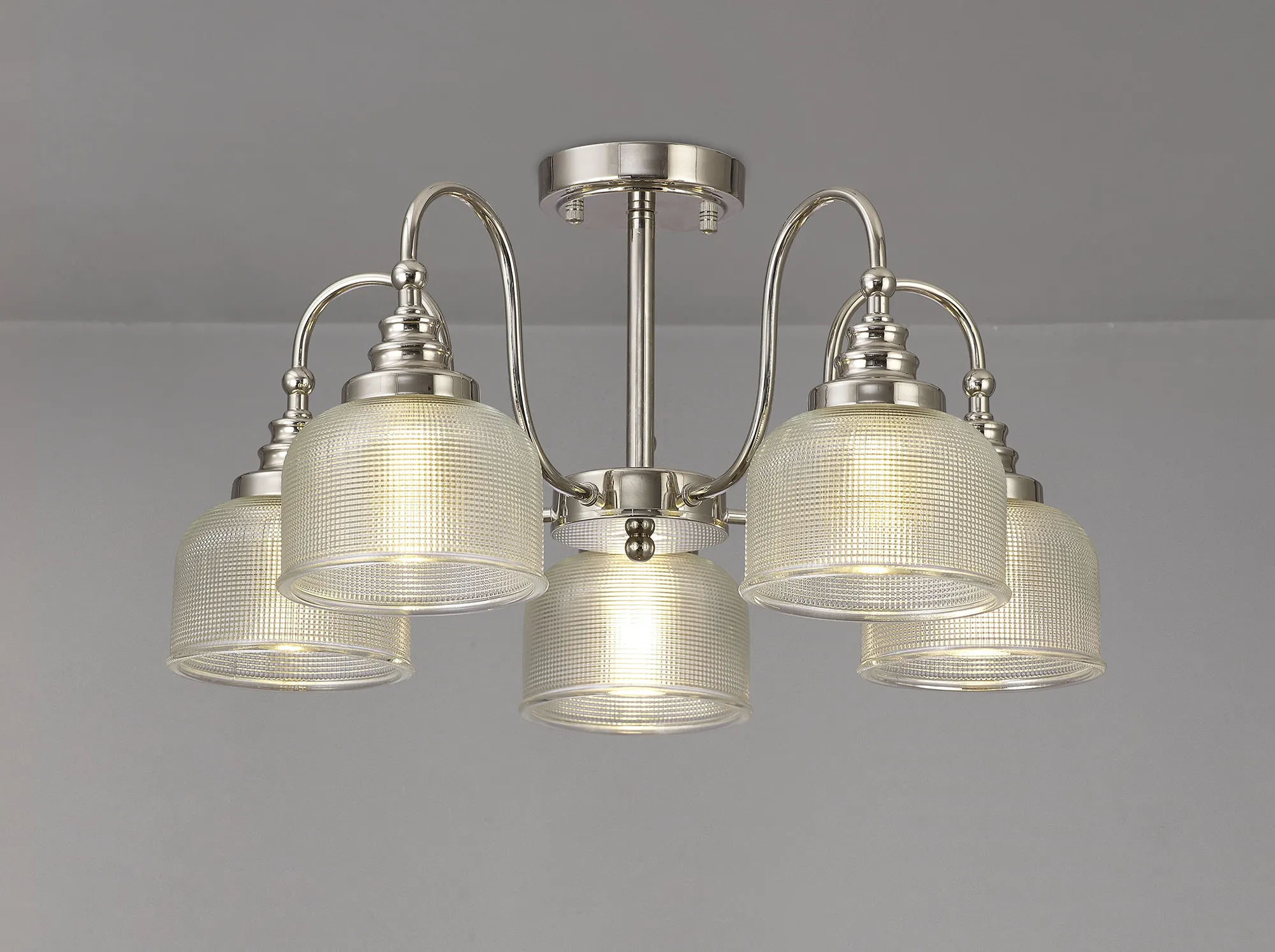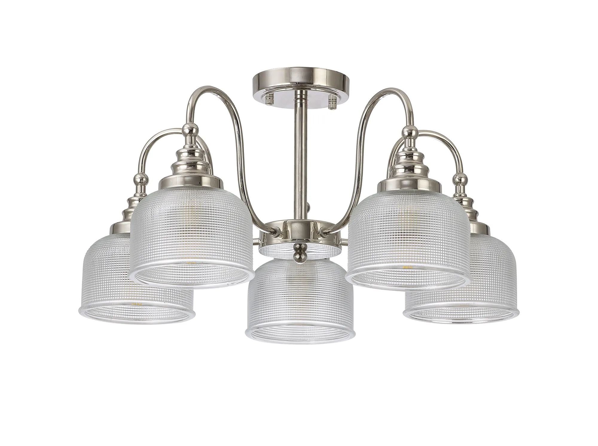 Yorkton Flush/Single Pendant, 1 Light Adjustable E27, Polished Nickel/Prismatic Glass