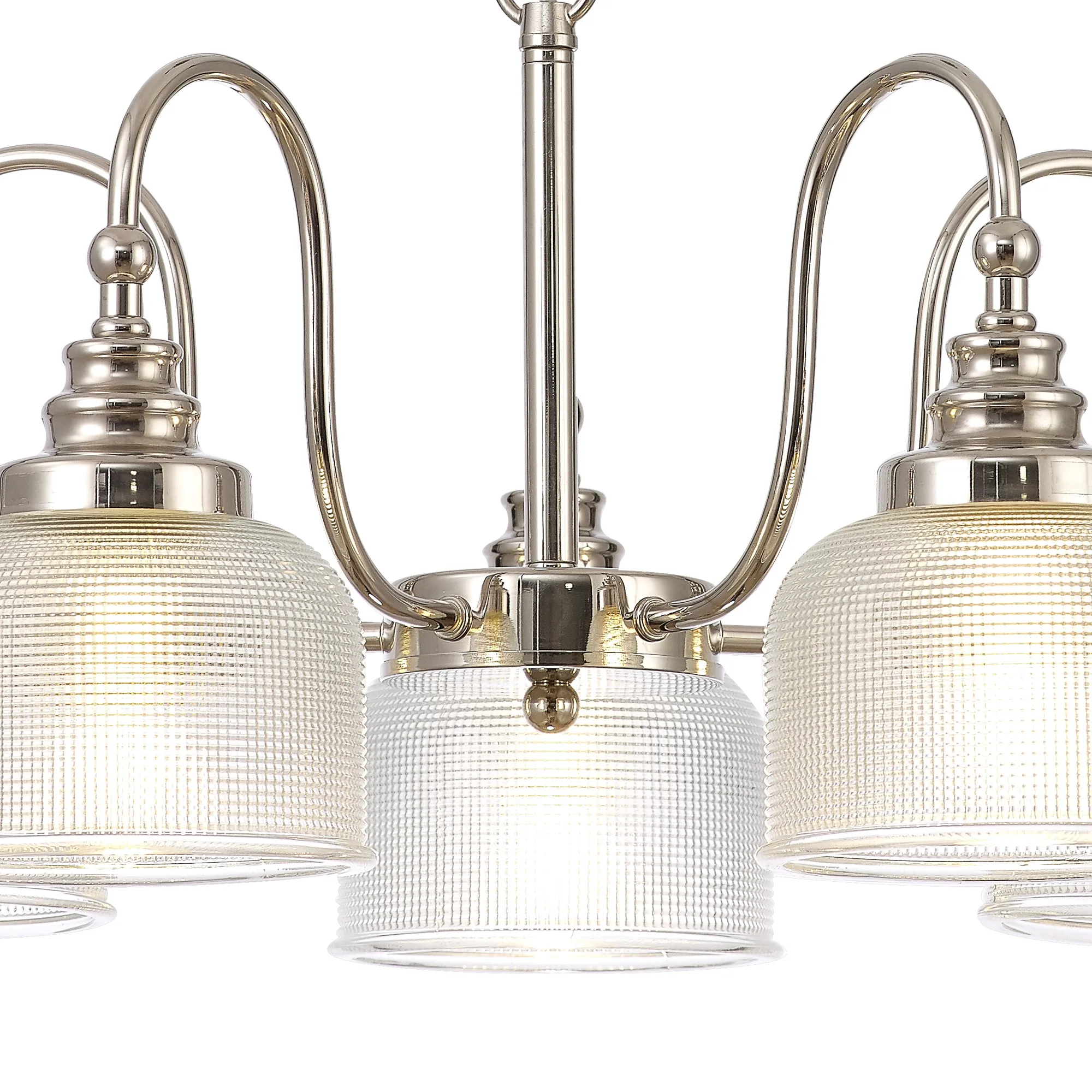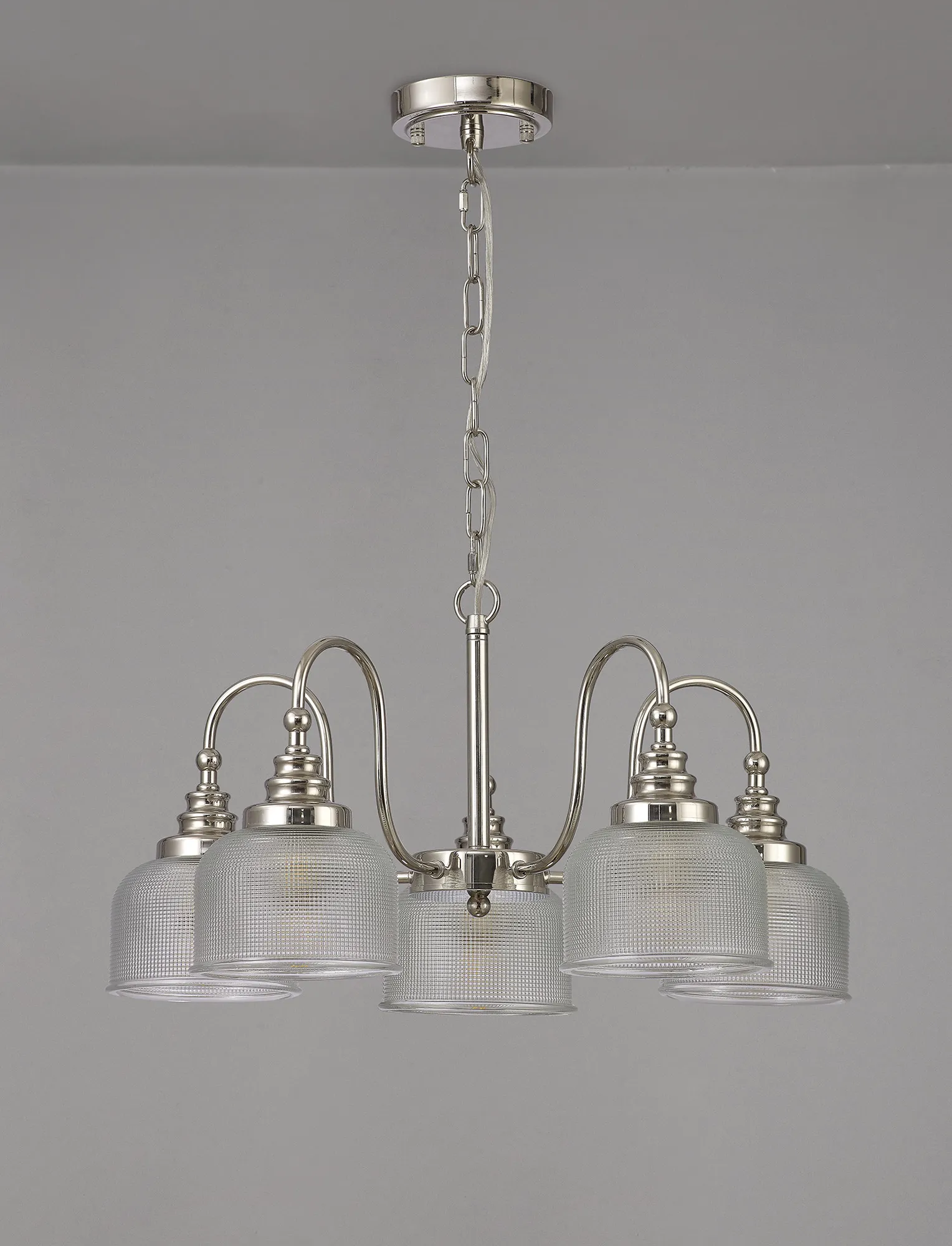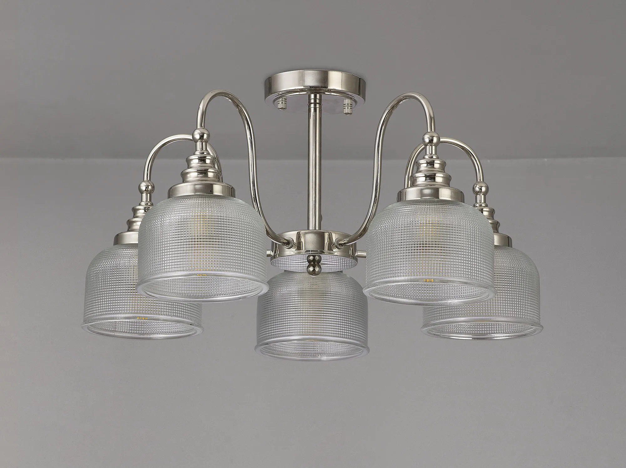 Yorkton Flush/Single Pendant, 1 Light Adjustable E27, Polished Nickel/Prismatic Glass