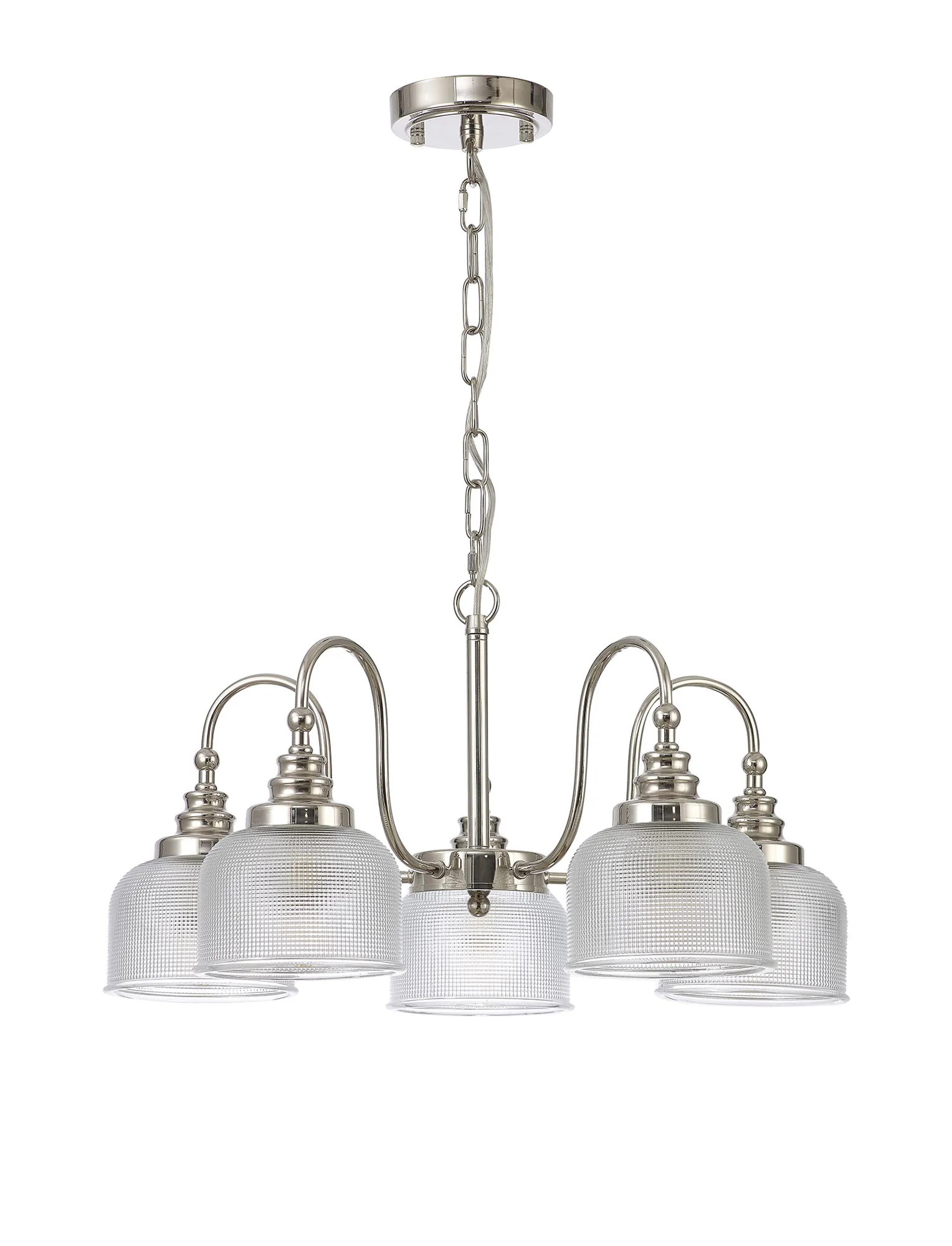 Yorkton 27cm Flush/Single Pendant, 1 Light Adjustable E27, Polished Nickel/Prismatic Glass