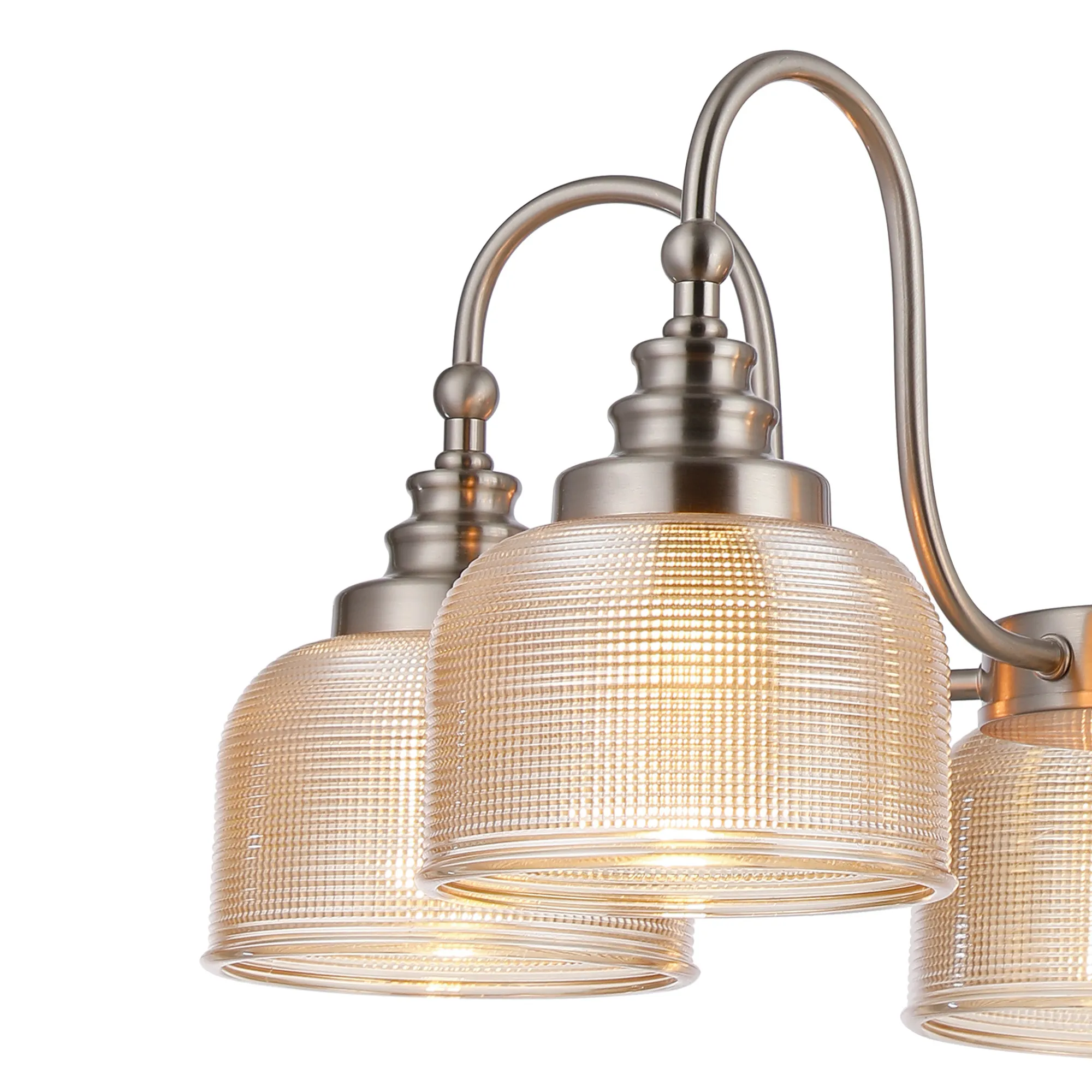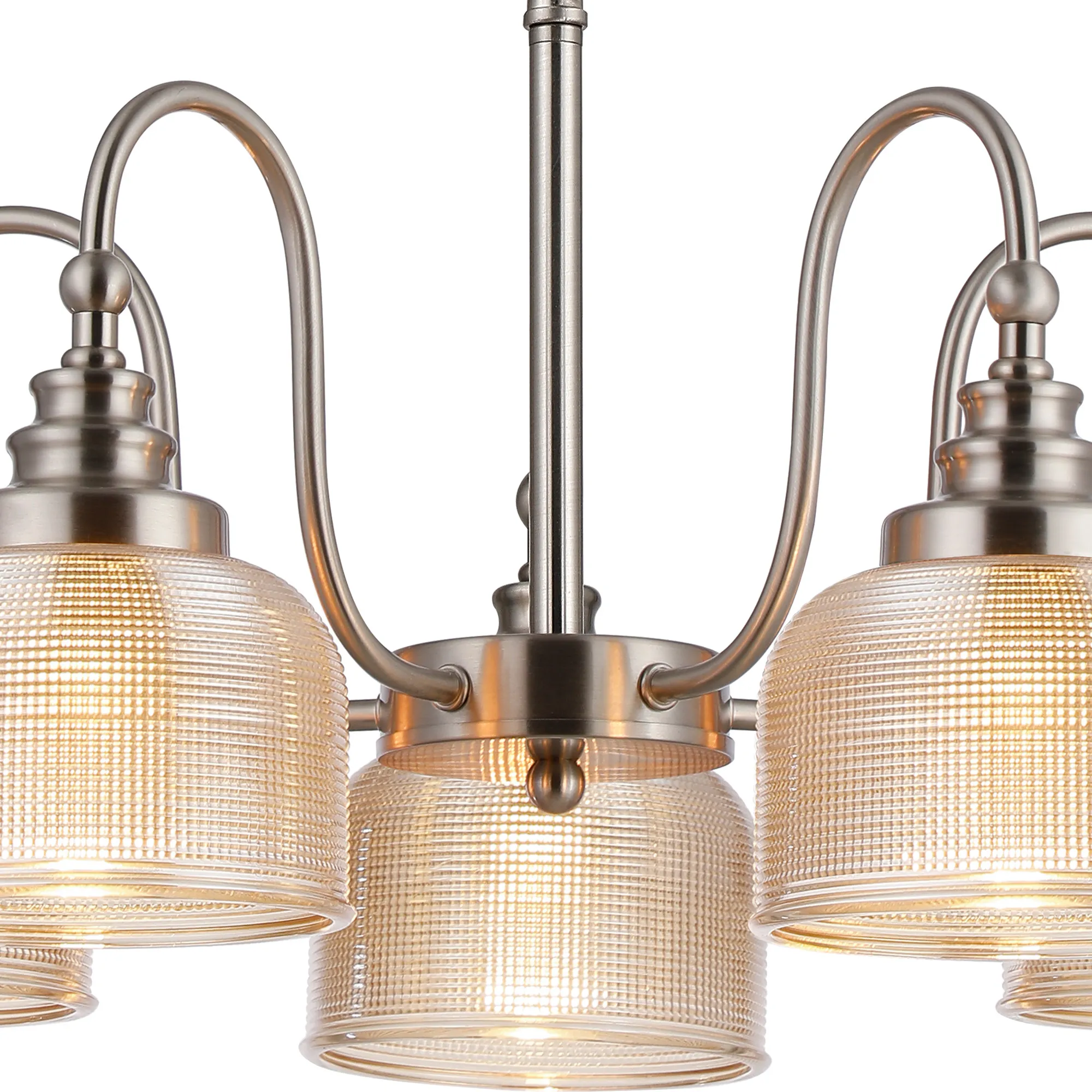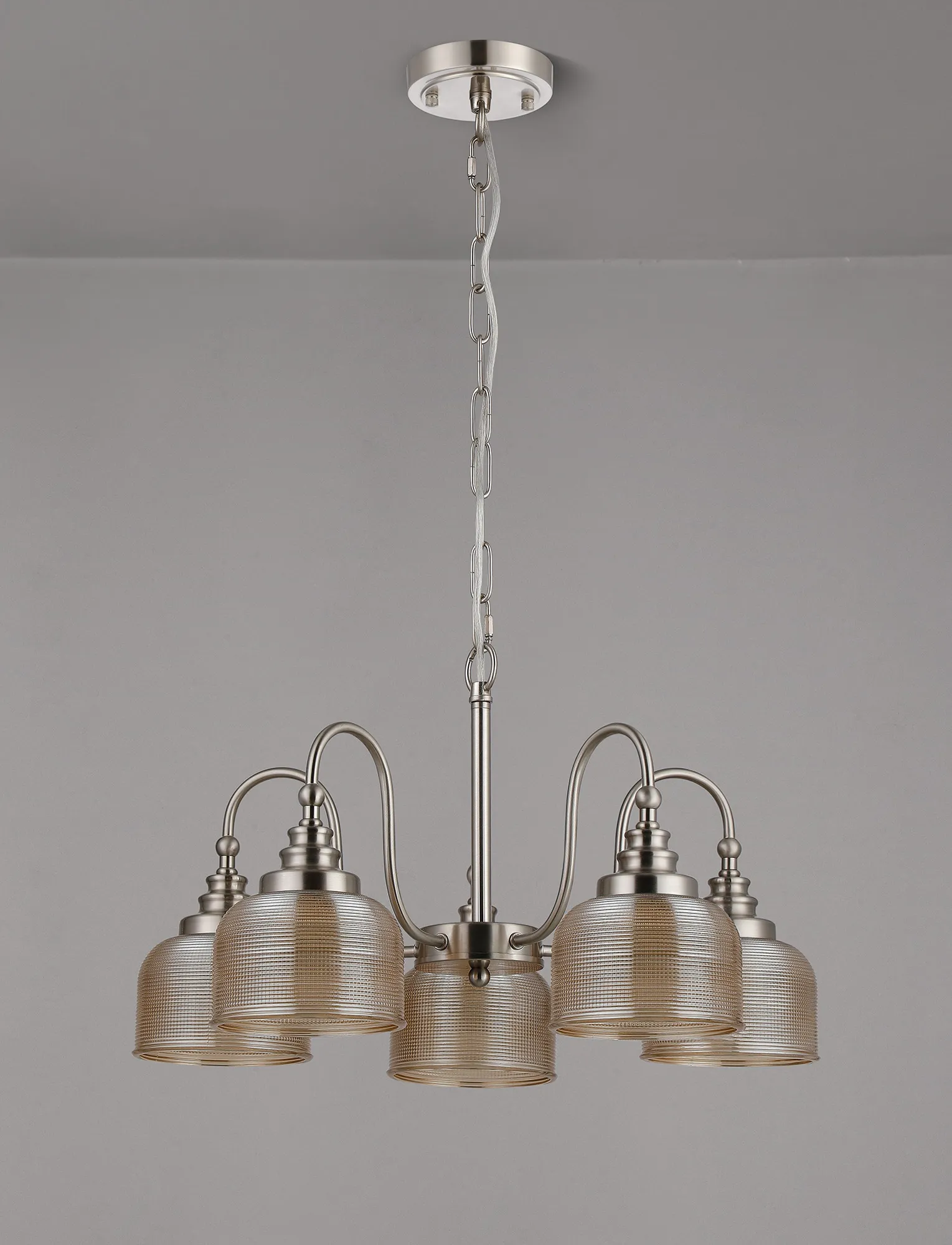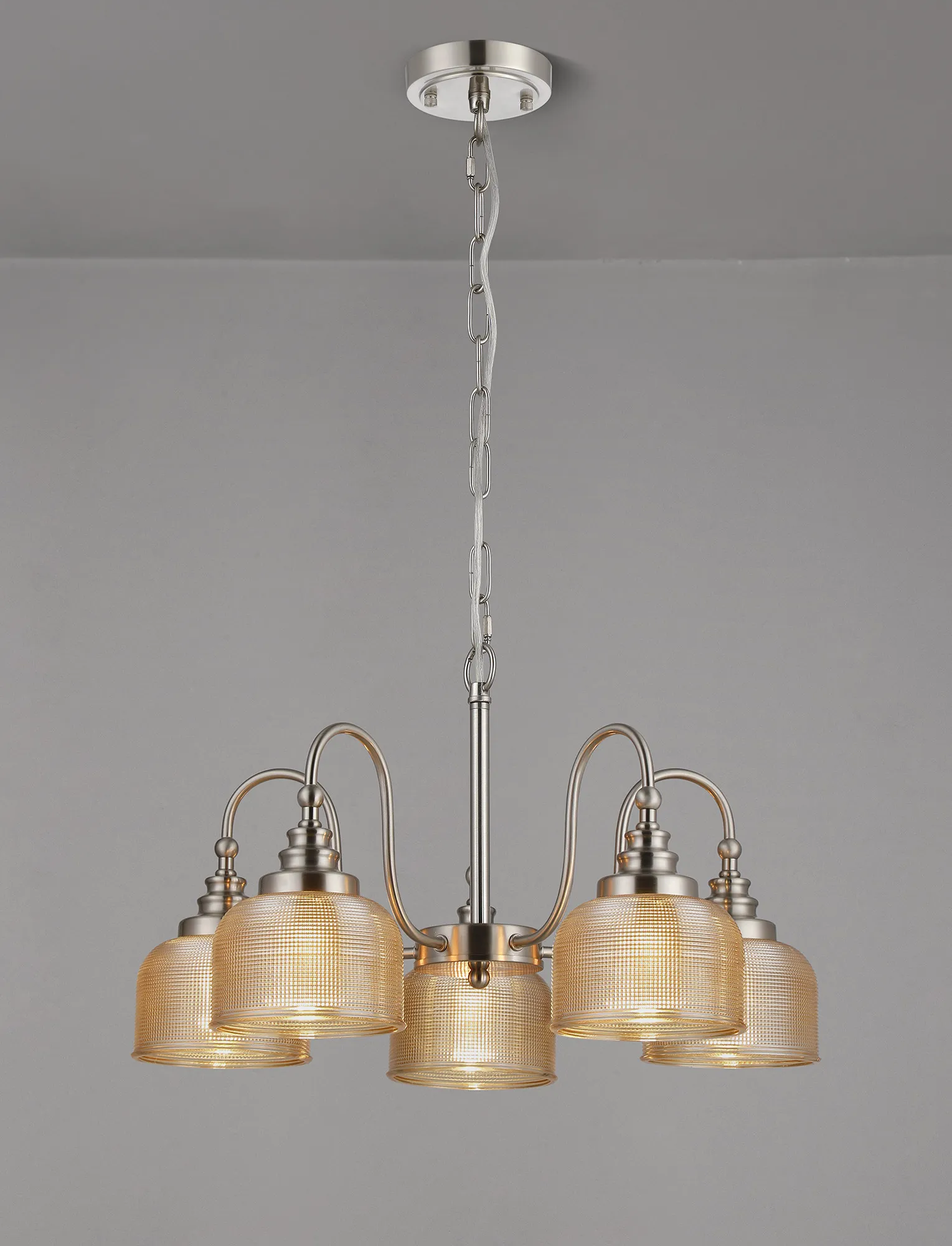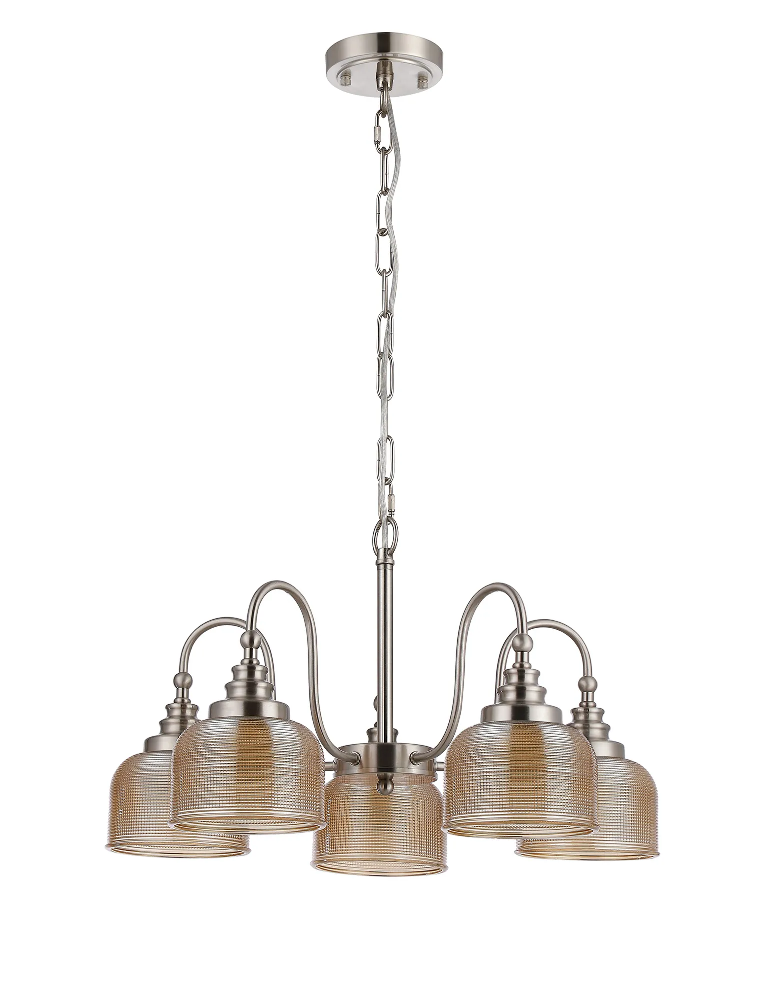 OTHER Yorkton Semi Flush/Pendant, 5 Light E27, Satin Nickel/Amber Glass