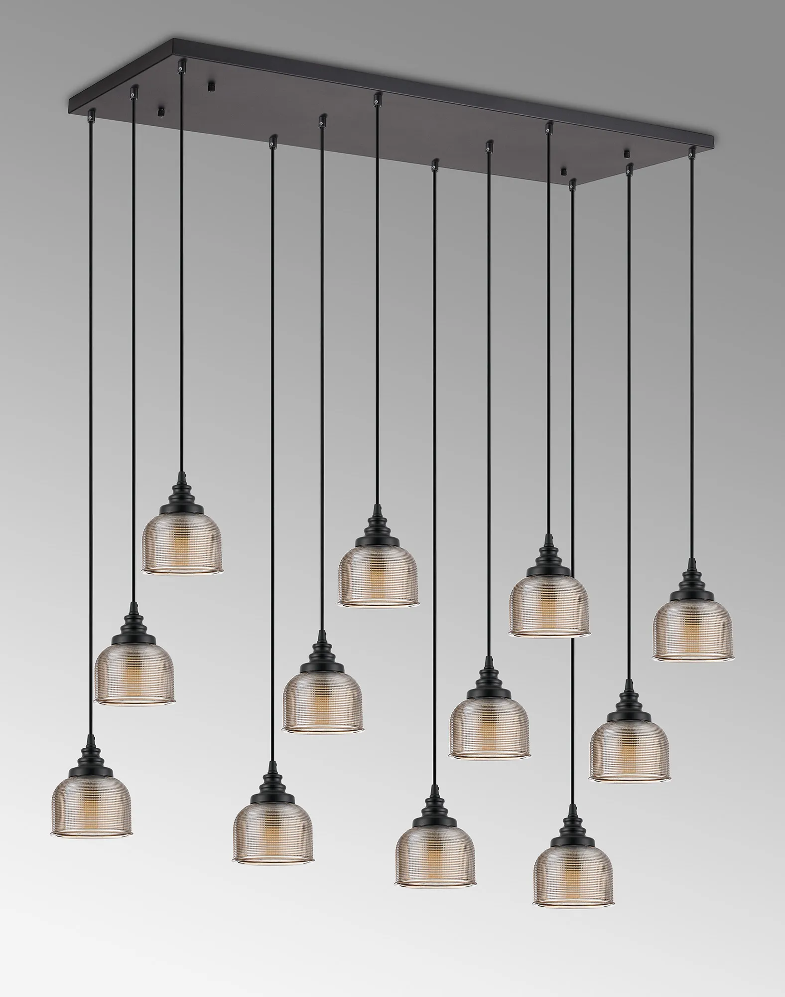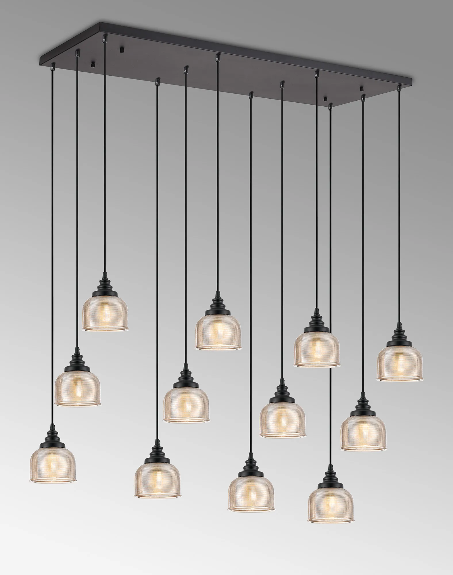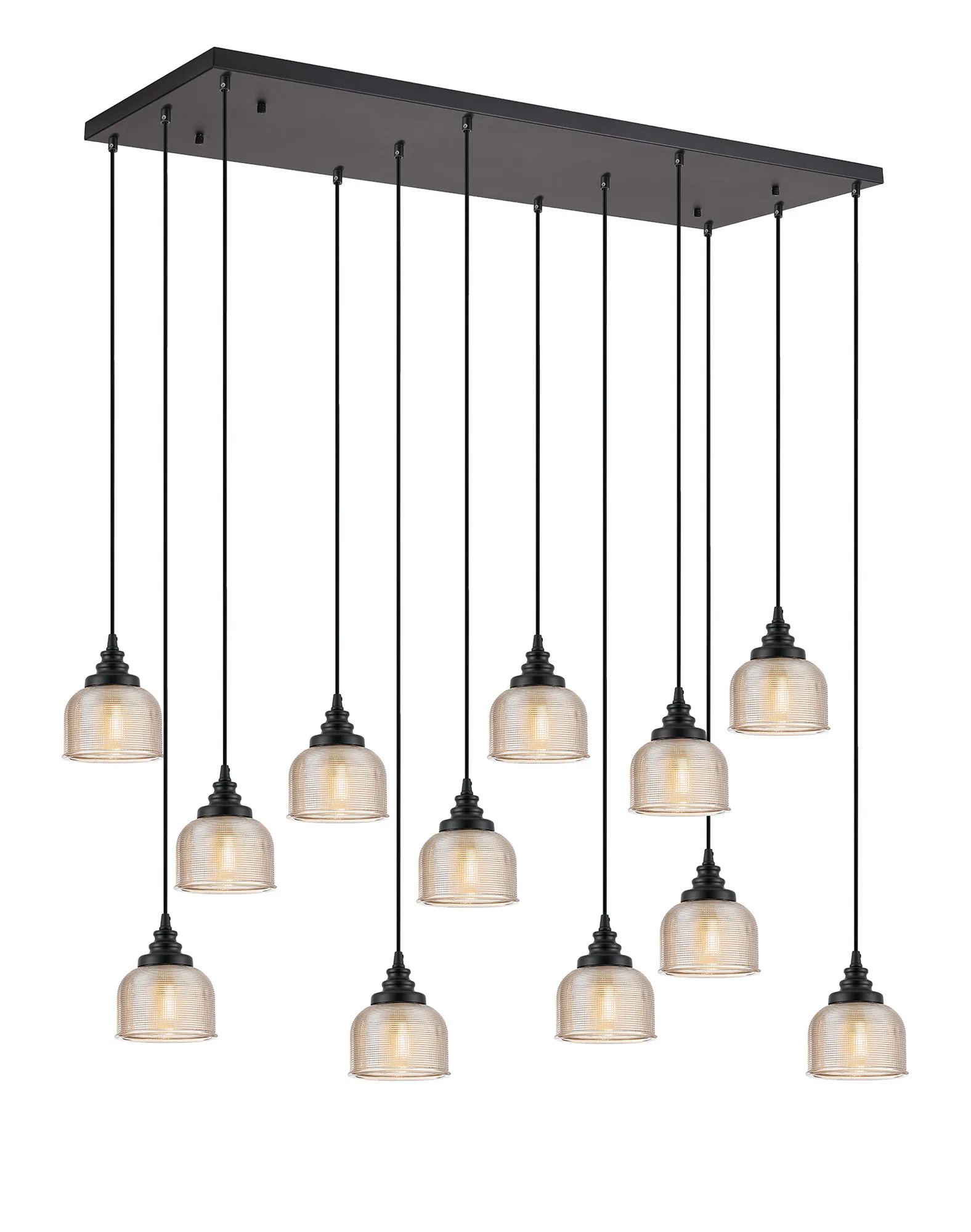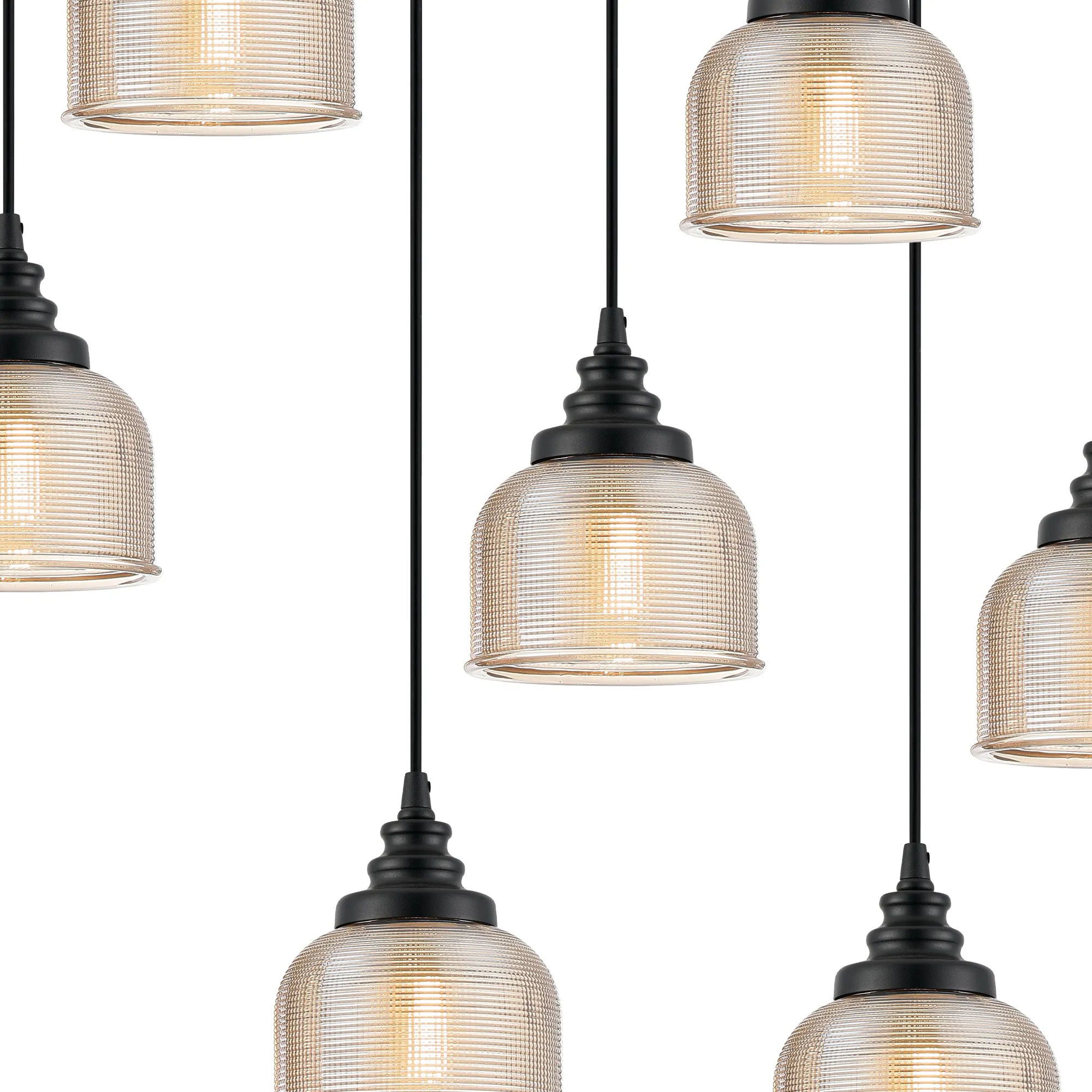 Yorkton 5 Light Rectangular Pendant, E27, Satin Black/Prismatic Dome Glass, Amber