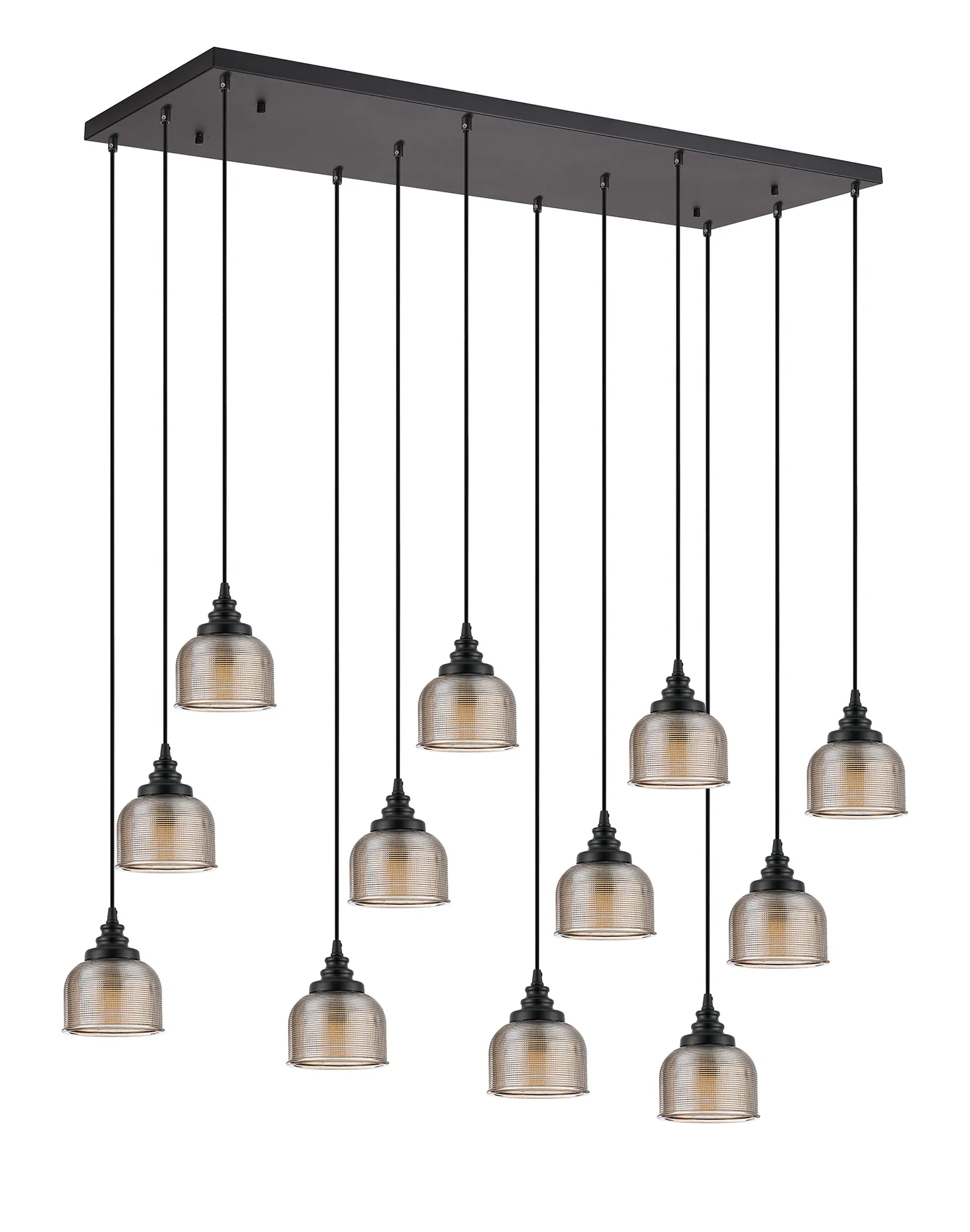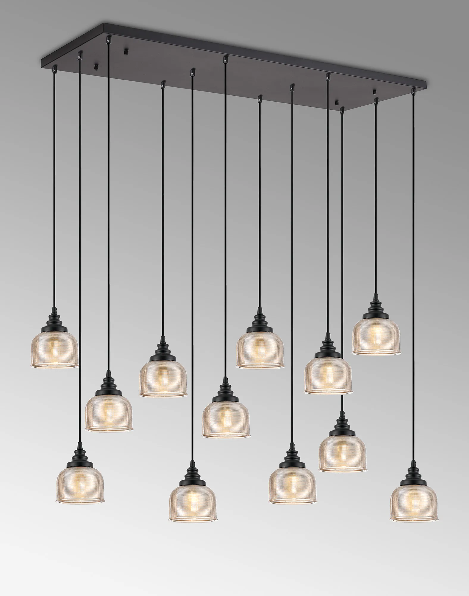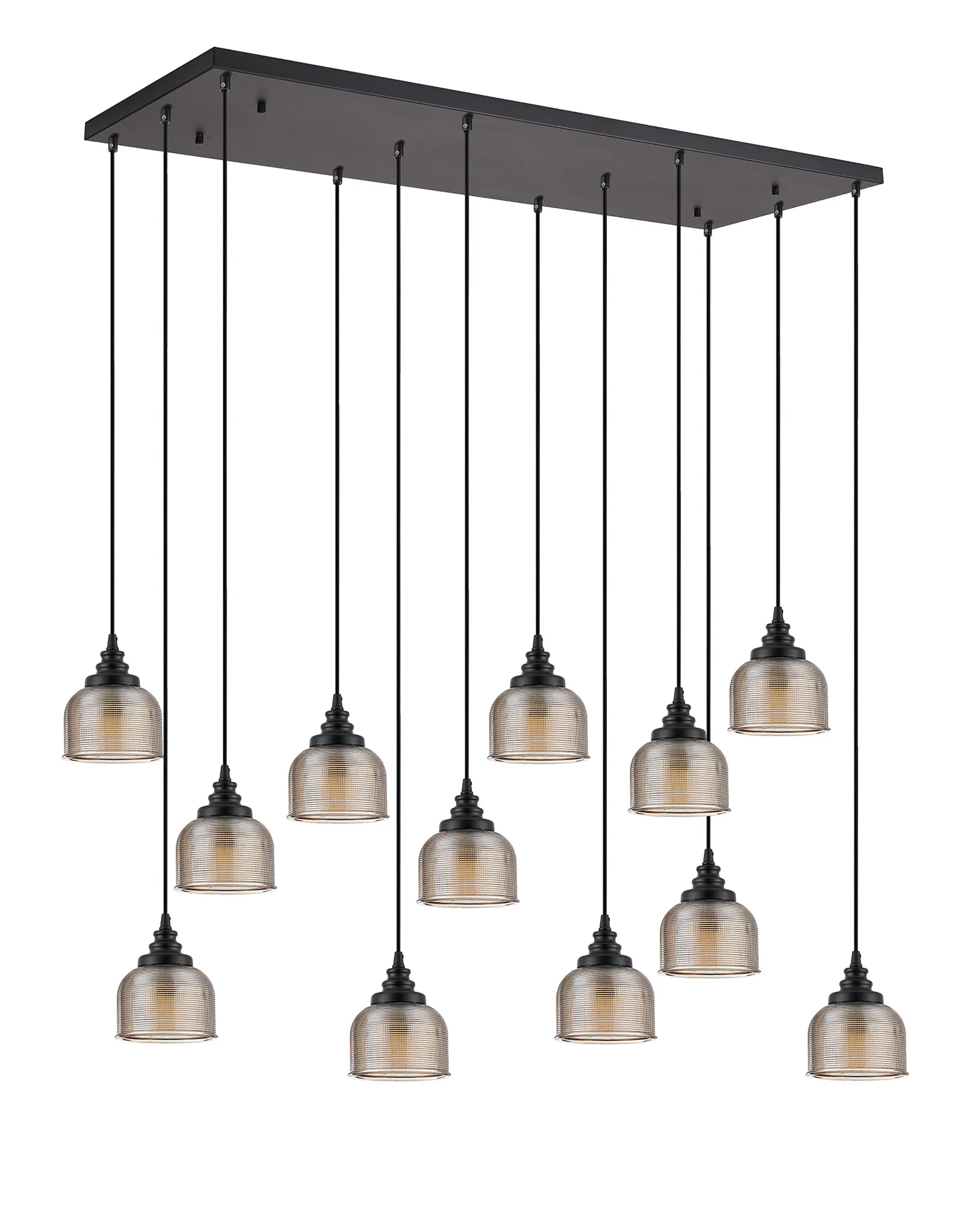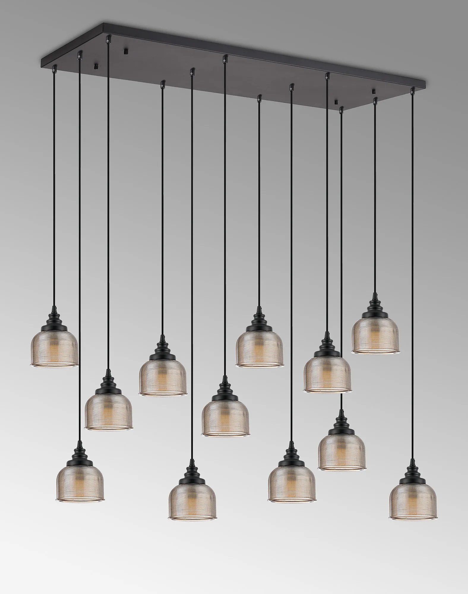Yorkton 5 Light Rectangular Pendant, E27, Satin Black/Prismatic Dome Glass, Amber
