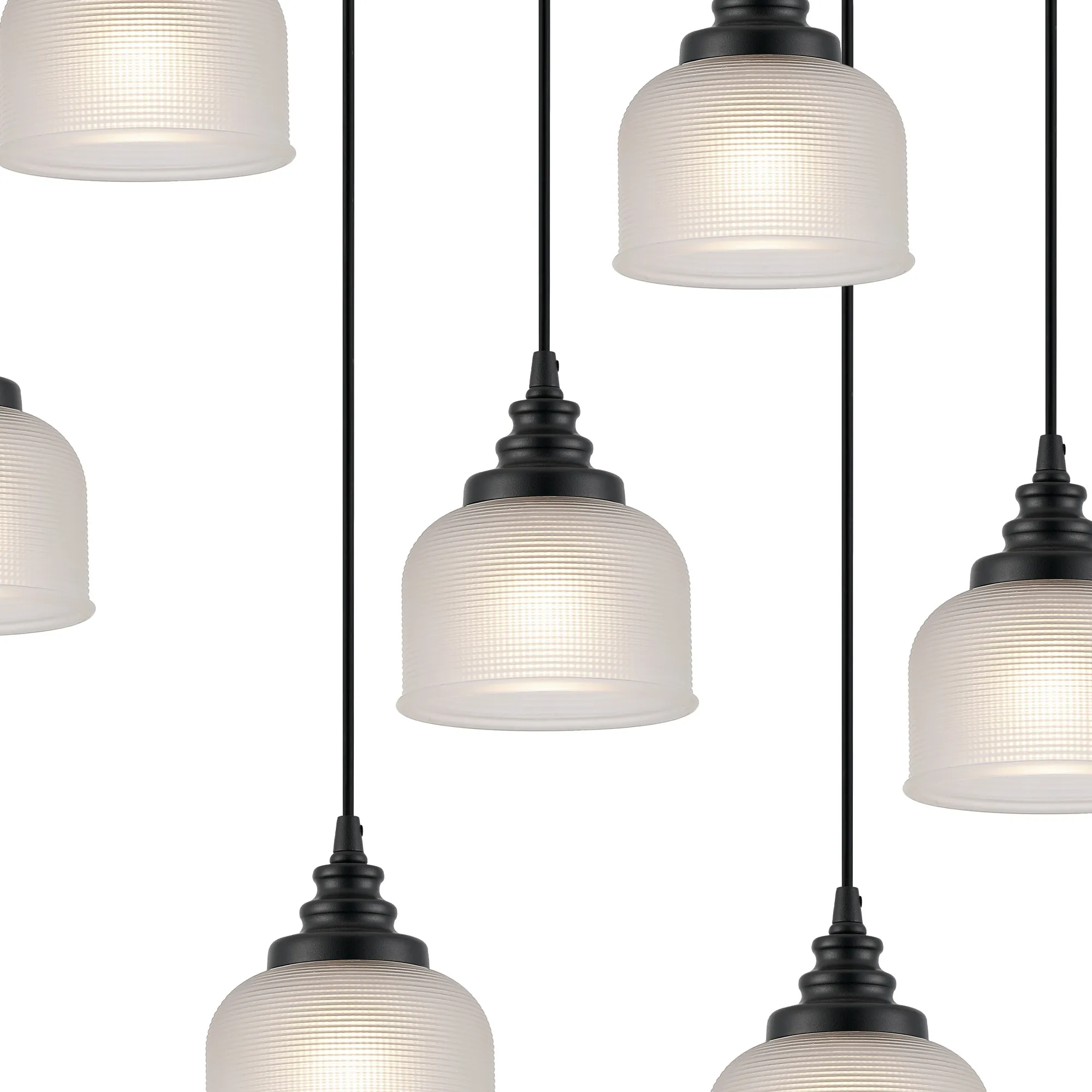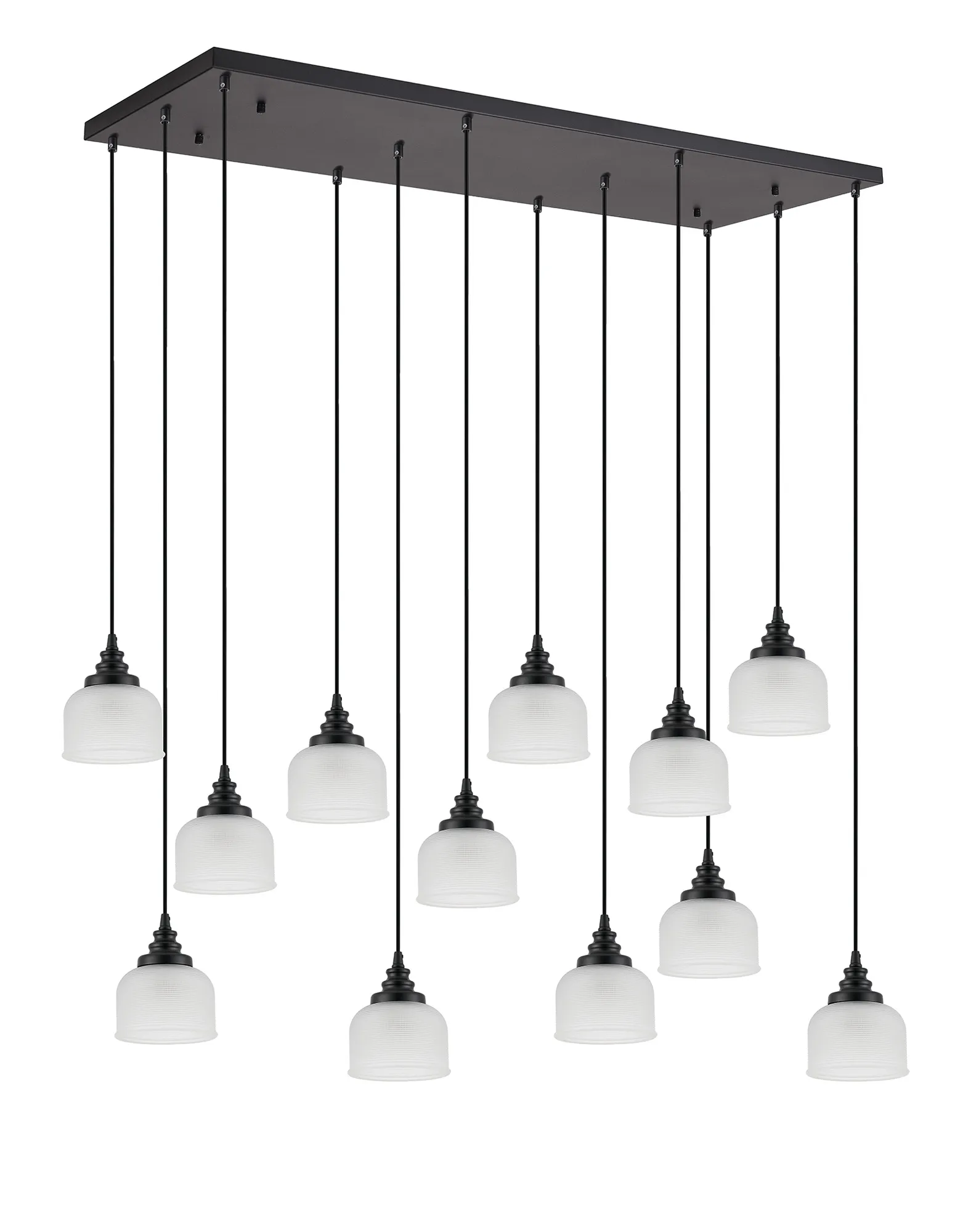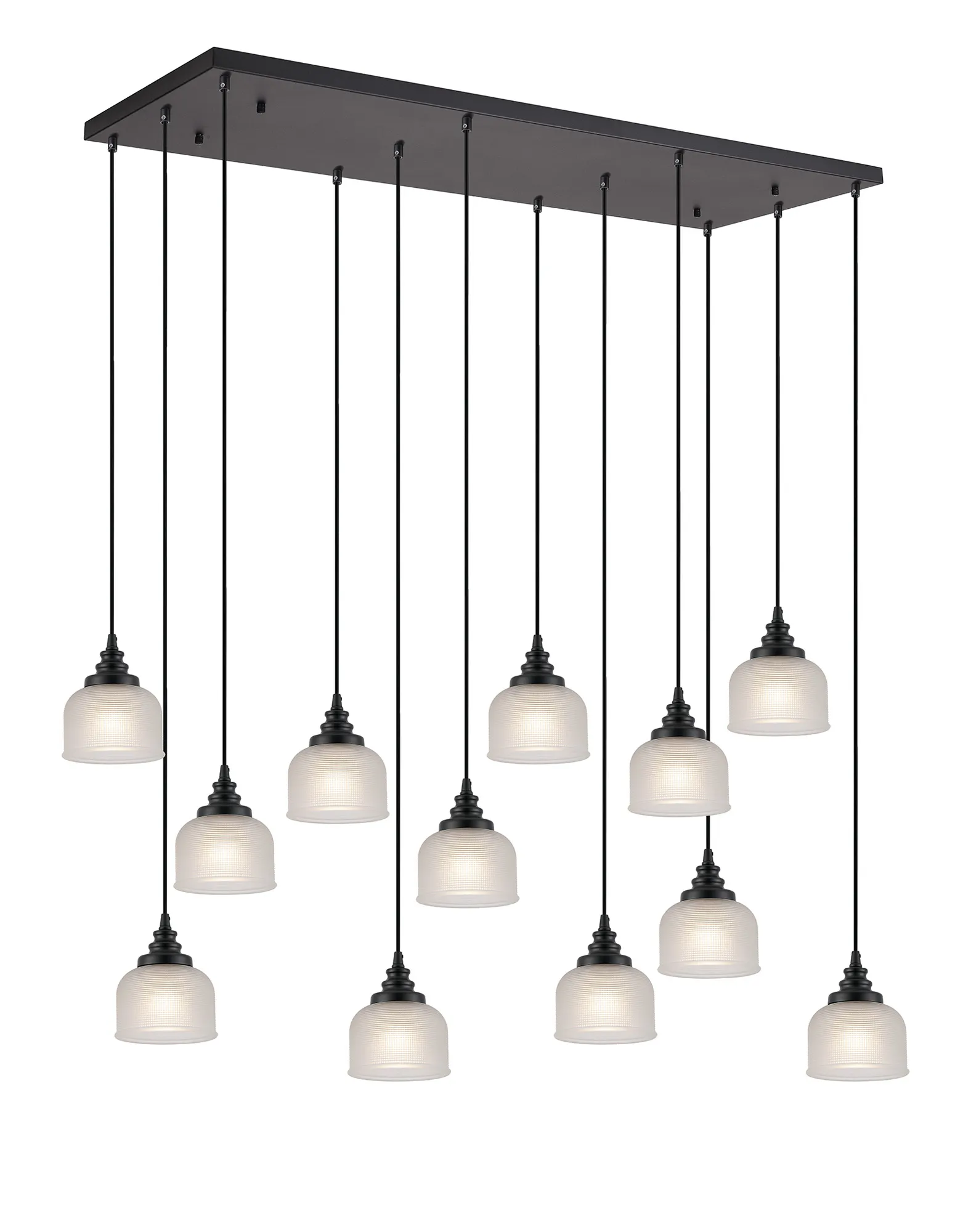 Yorkton 5 Light Rectangular Pendant, E27, Satin Black/Prismatic Dome Glass, Frosted