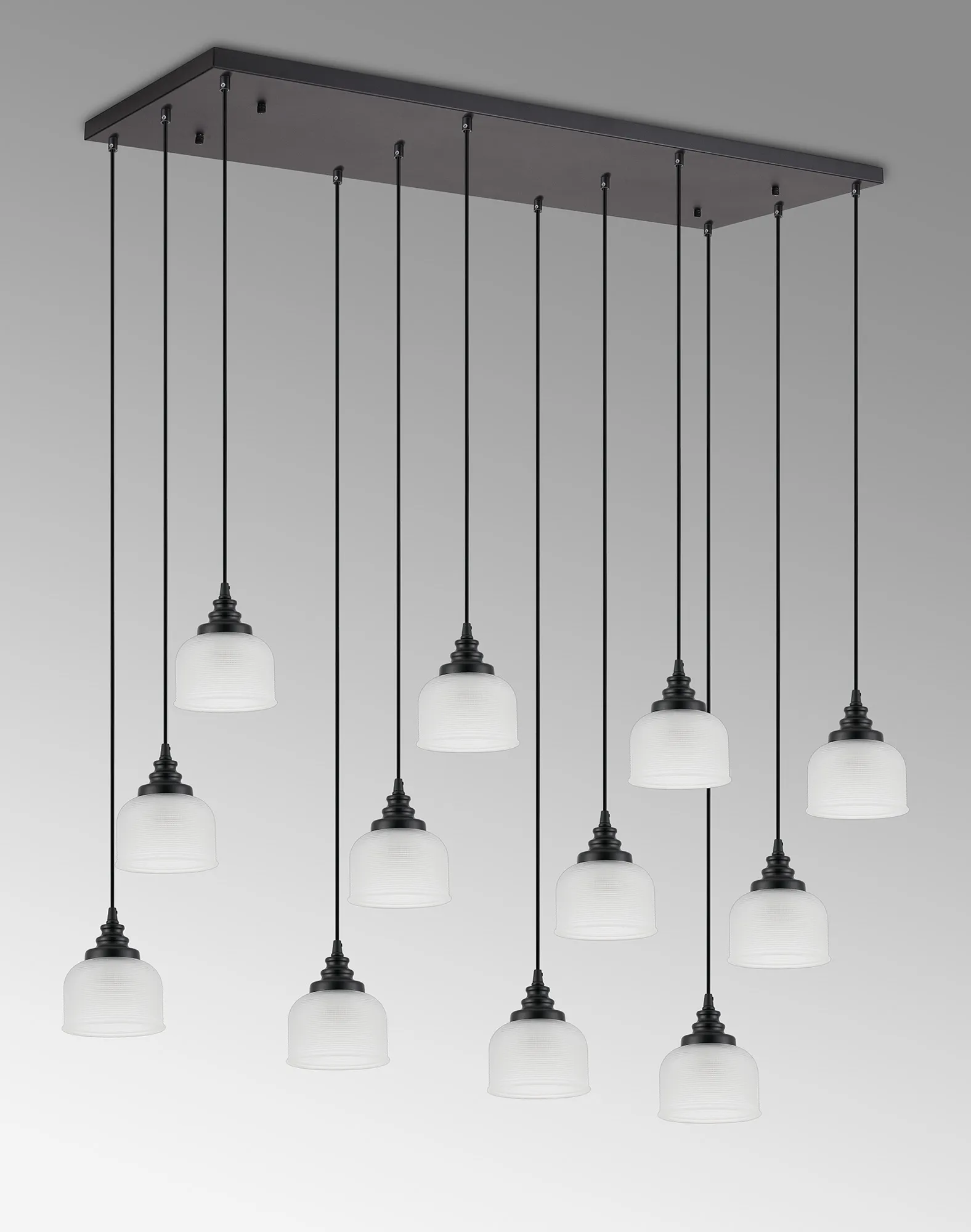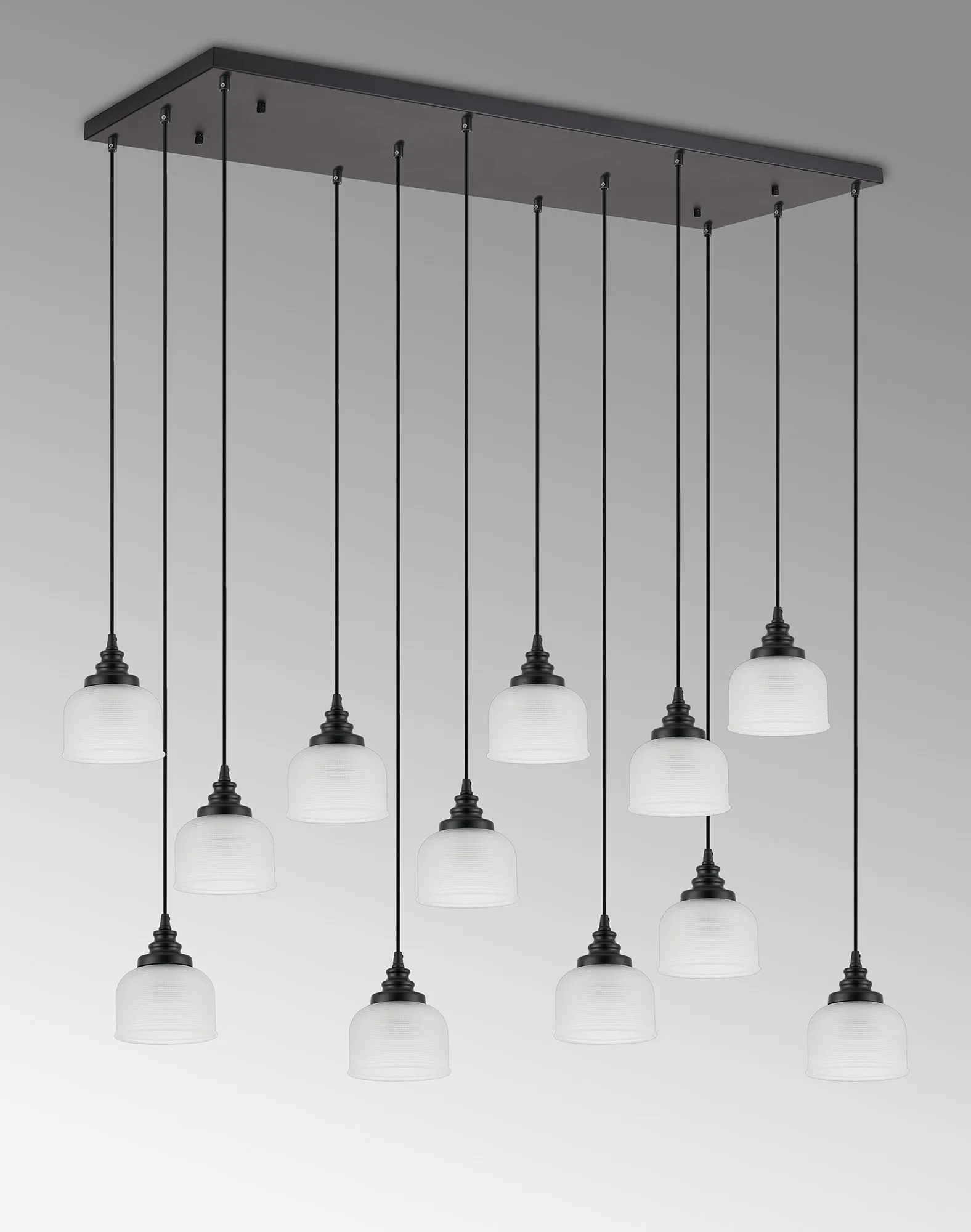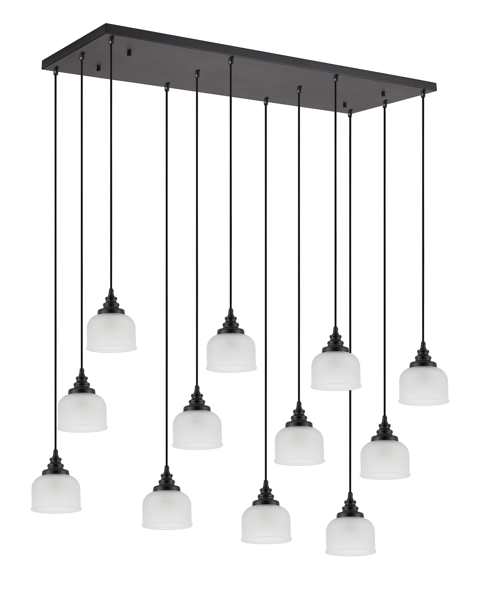 Yorkton 5 Light Rectangular Pendant, E27, Satin Black/Prismatic Dome Glass, Frosted