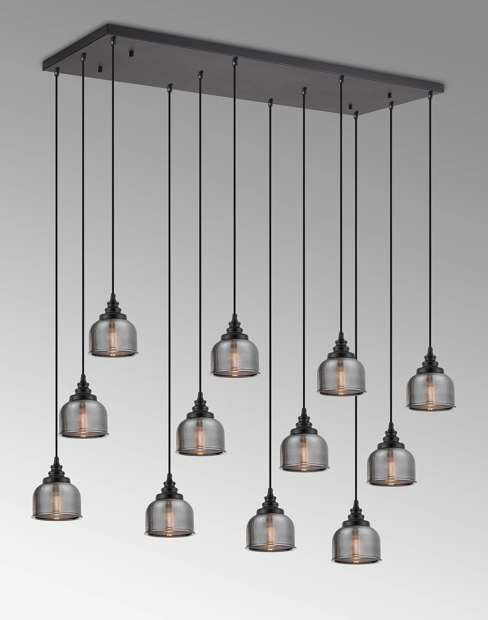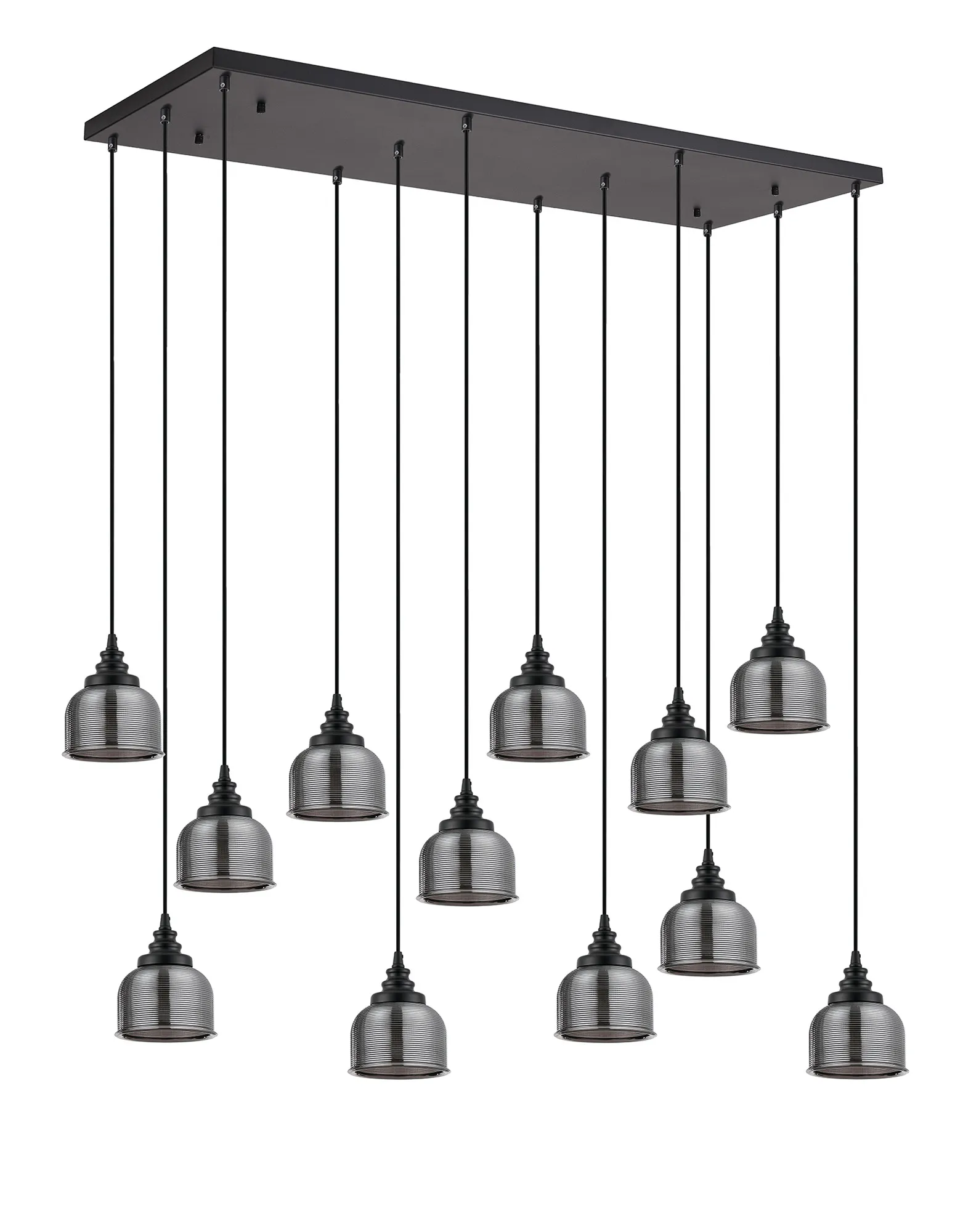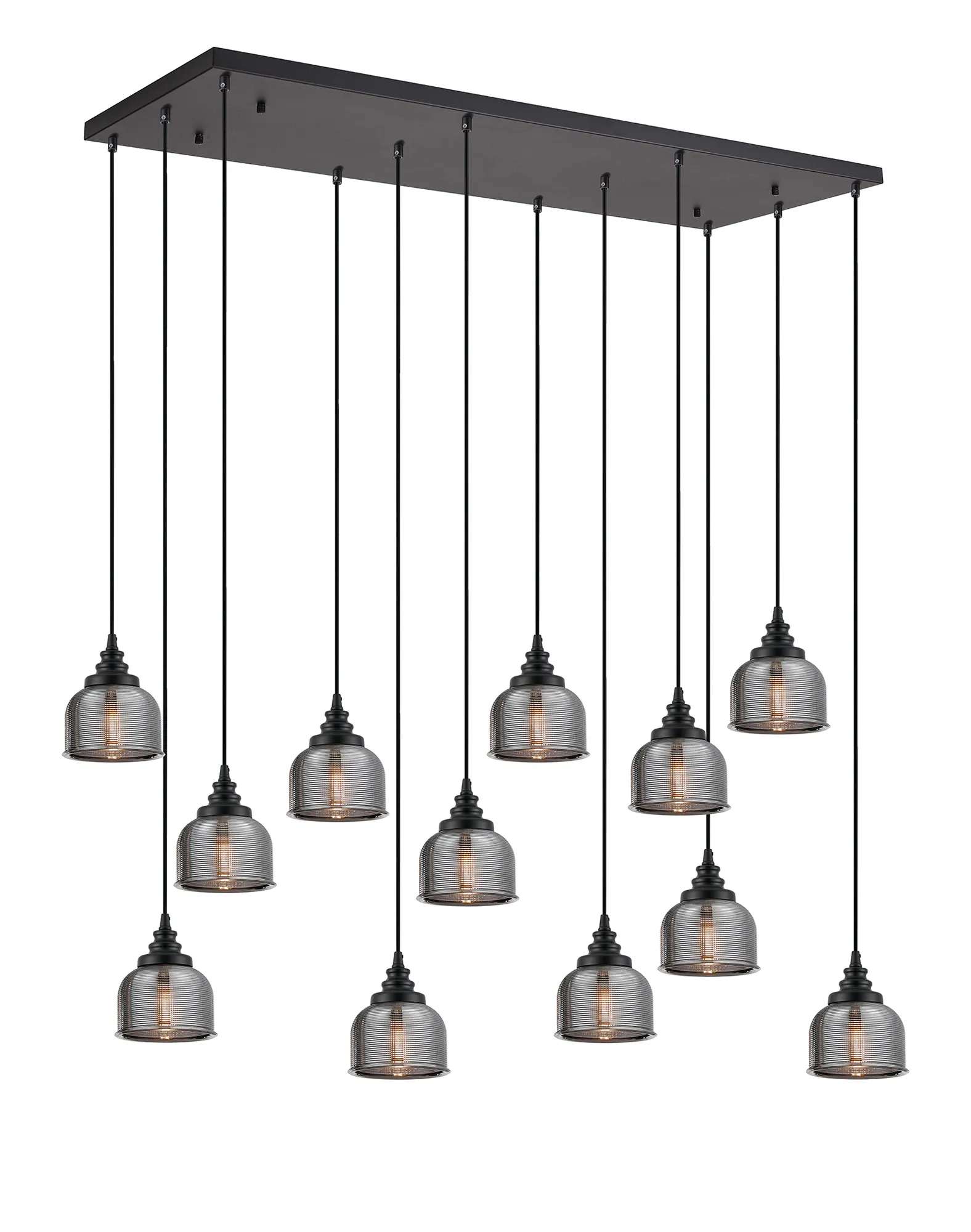 Yorkton 5 Light Rectangular Pendant, E27, Satin Black/Prismatic Dome Glass, Smoke