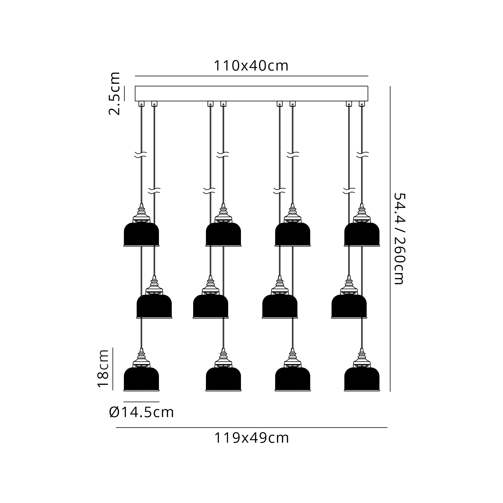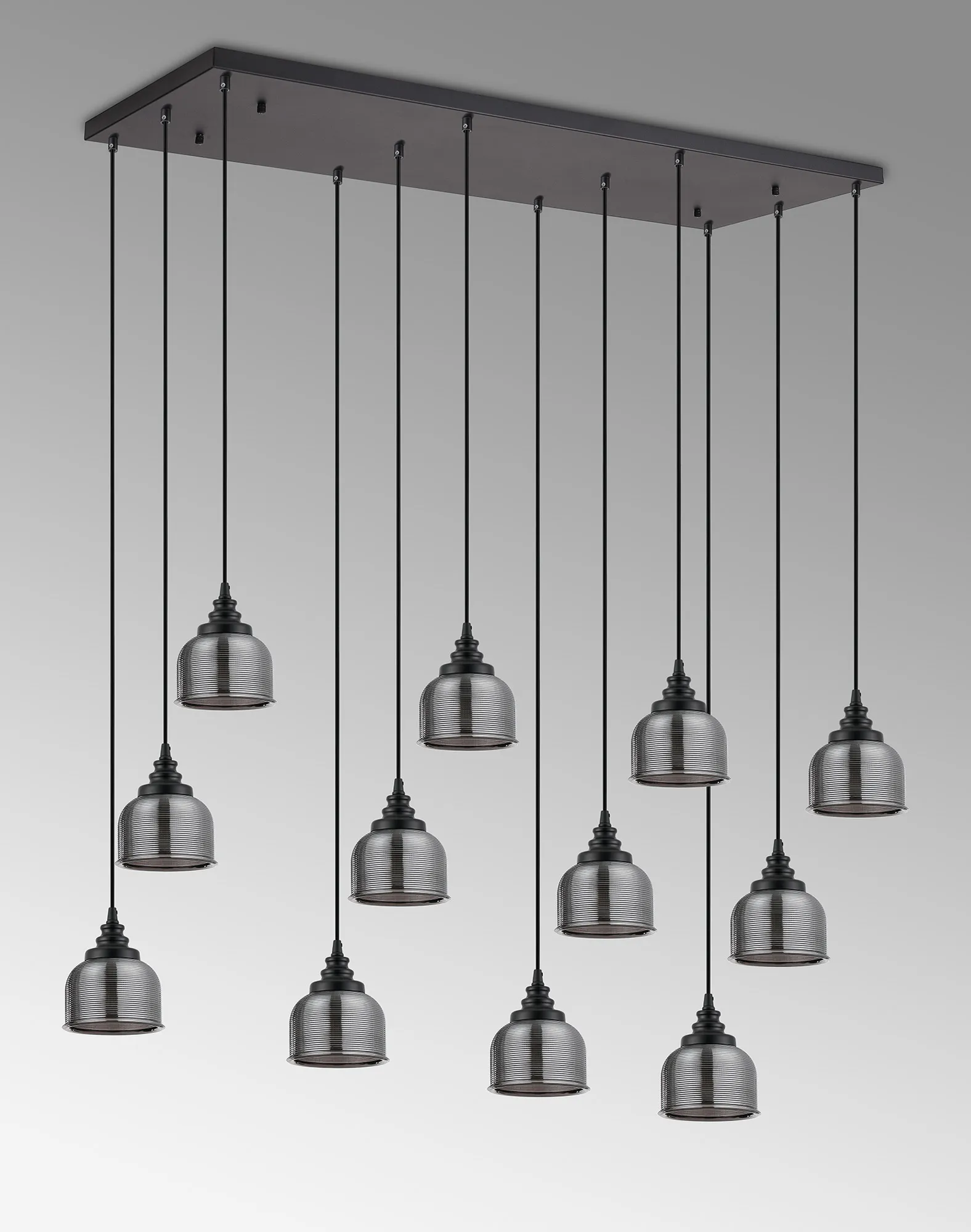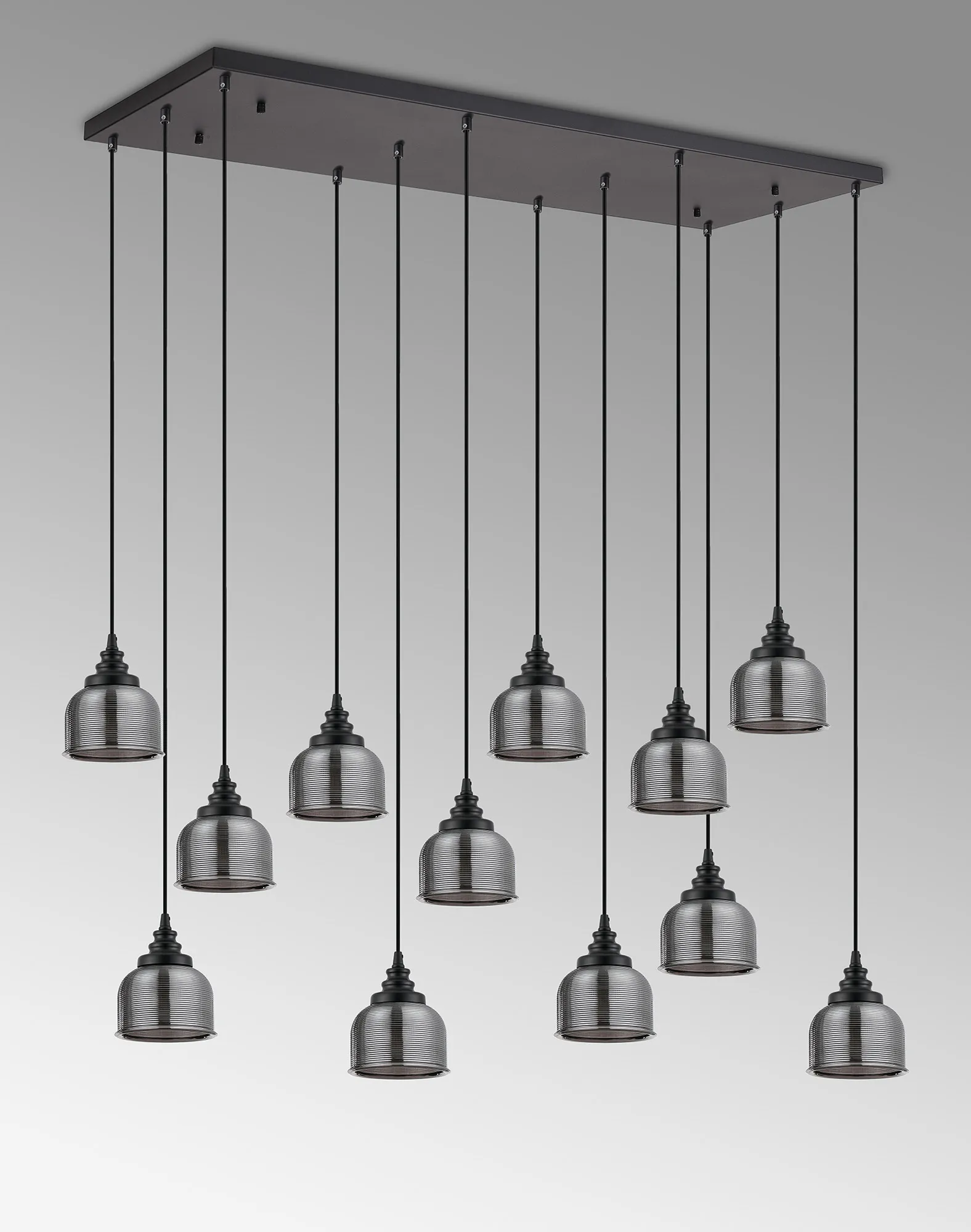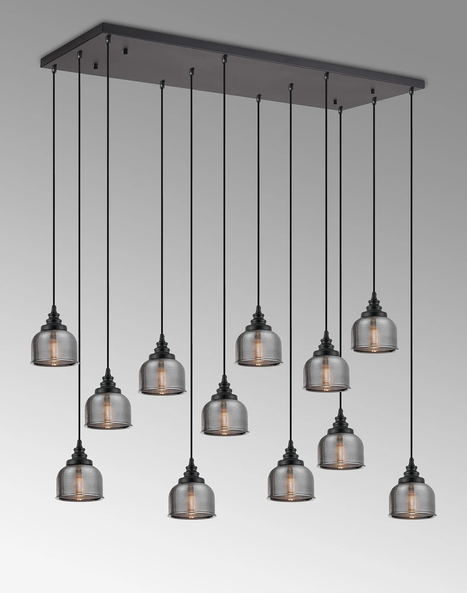 Yorkton 5 Light Rectangular Pendant, E27, Satin Black/Prismatic Dome Glass, Smoke
