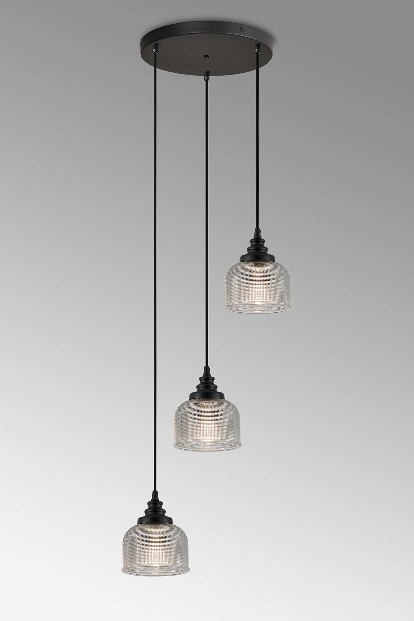 Yorkton 12 Light Rectangular Pendant, E27, Satin Black/Prismatic Dome Glass, Clear Item Weight: 16.1kg