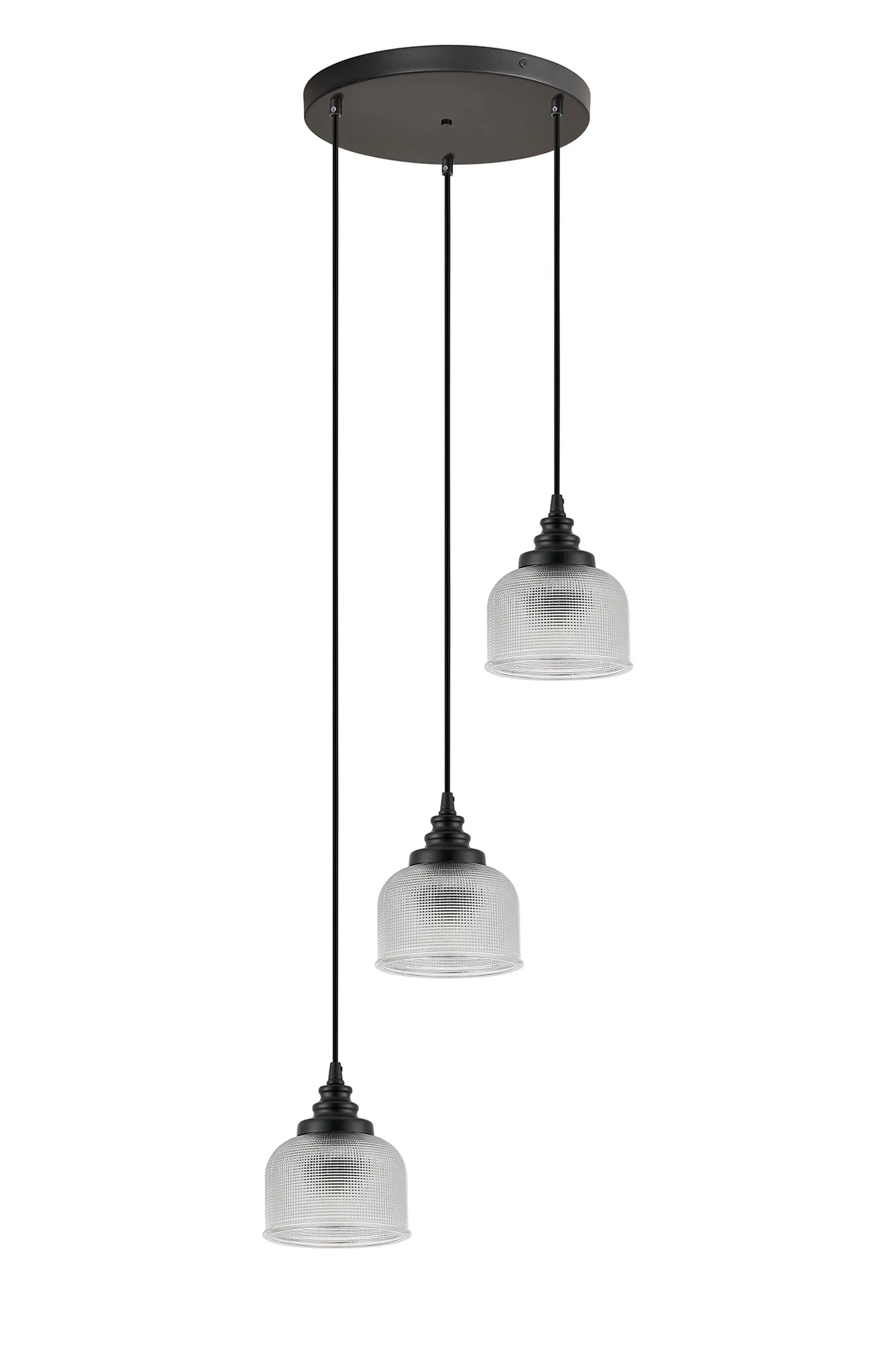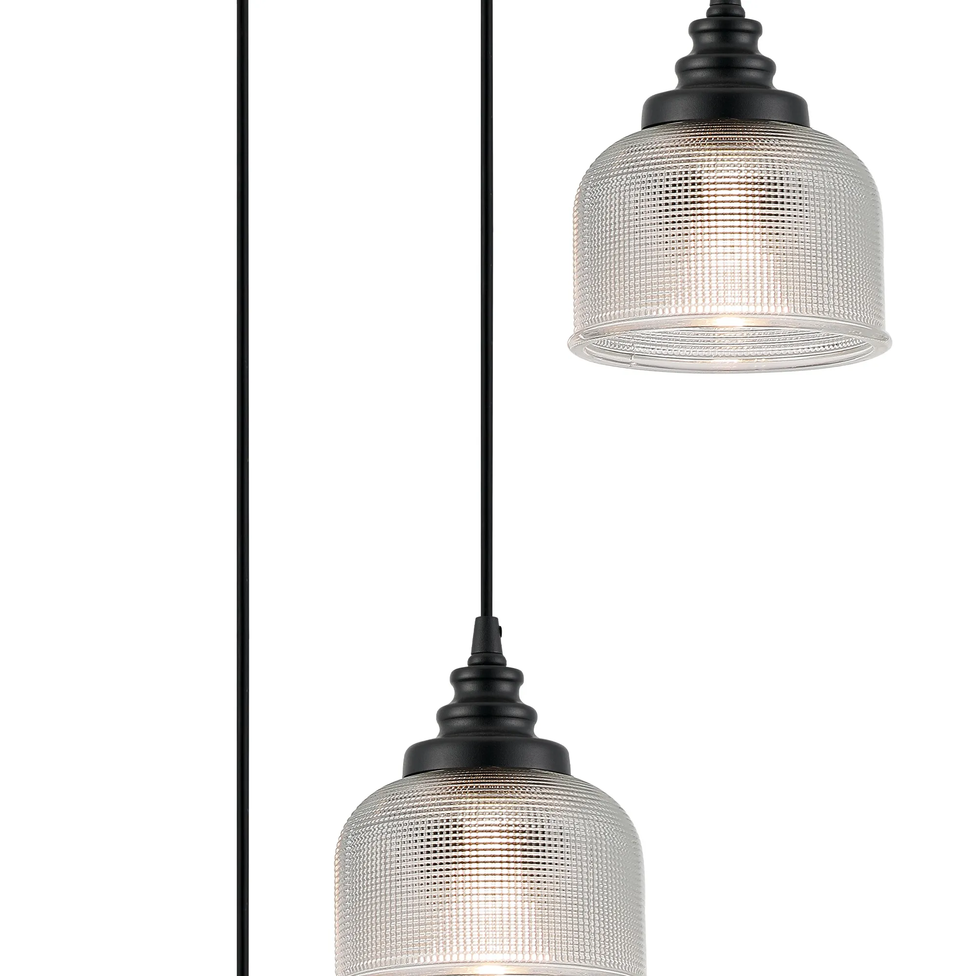Yorkton 12 Light Rectangular Pendant, E27, Satin Black/Prismatic Dome Glass, Clear