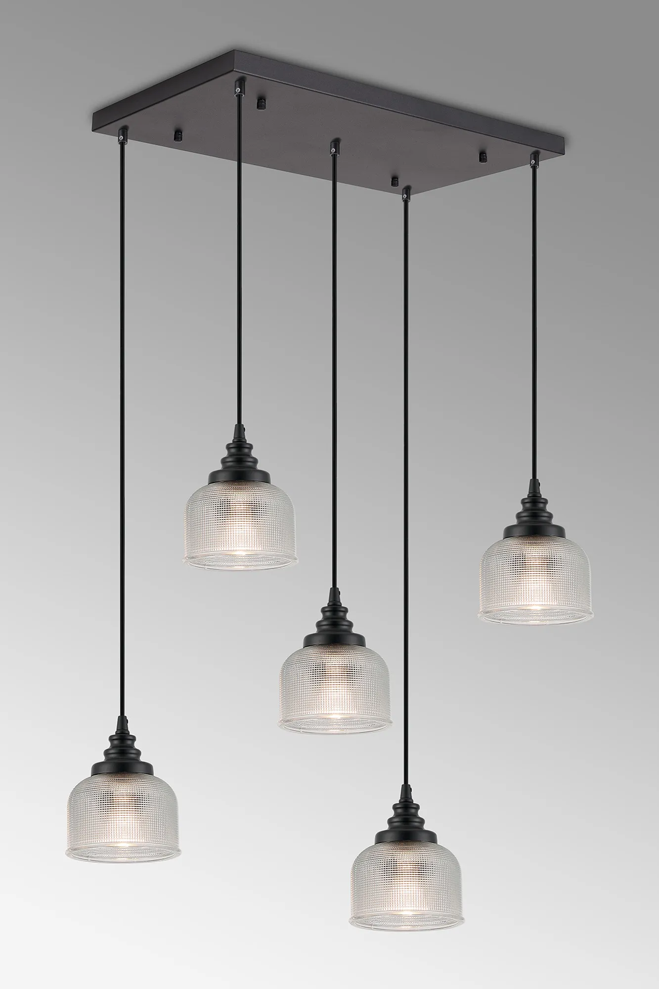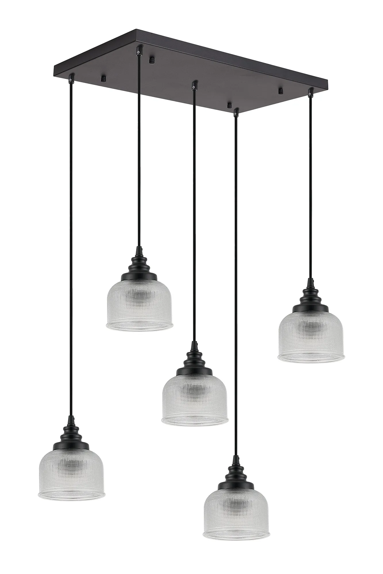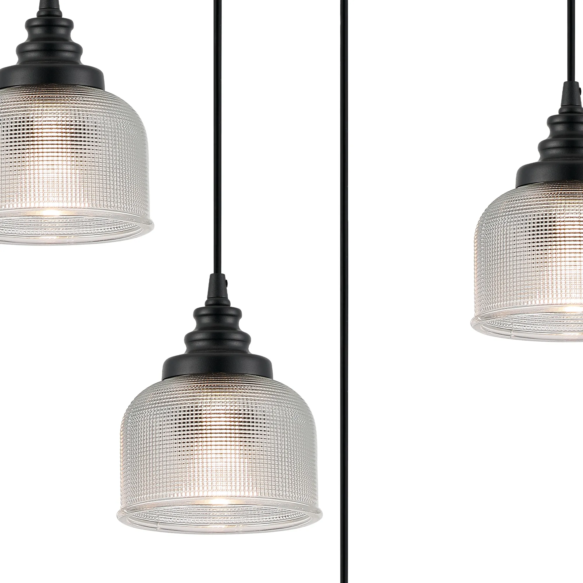 Yorkton 12 Light Rectangular Pendant, E27, Satin Black/Prismatic Dome Glass, Clear Item Weight: 16.1kg