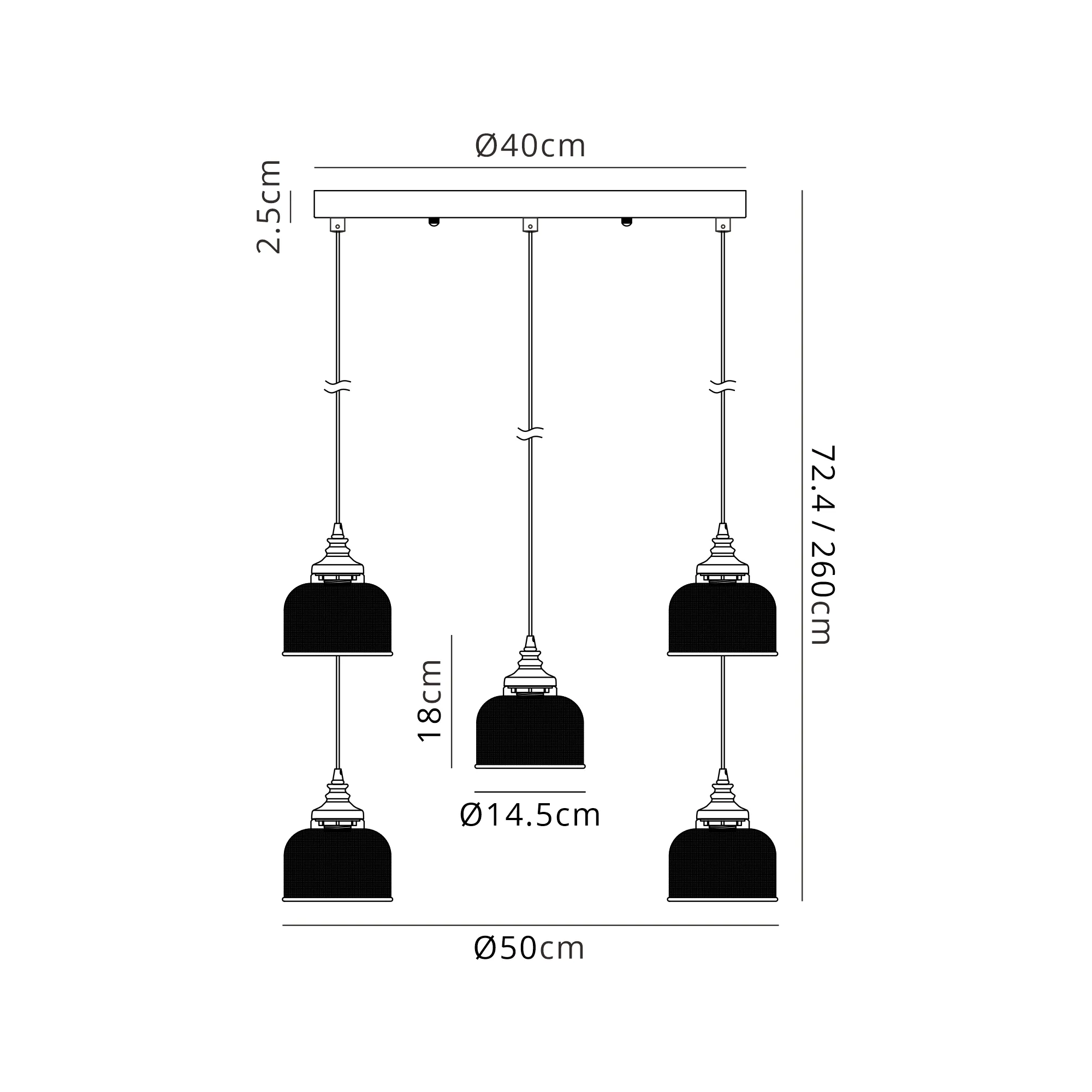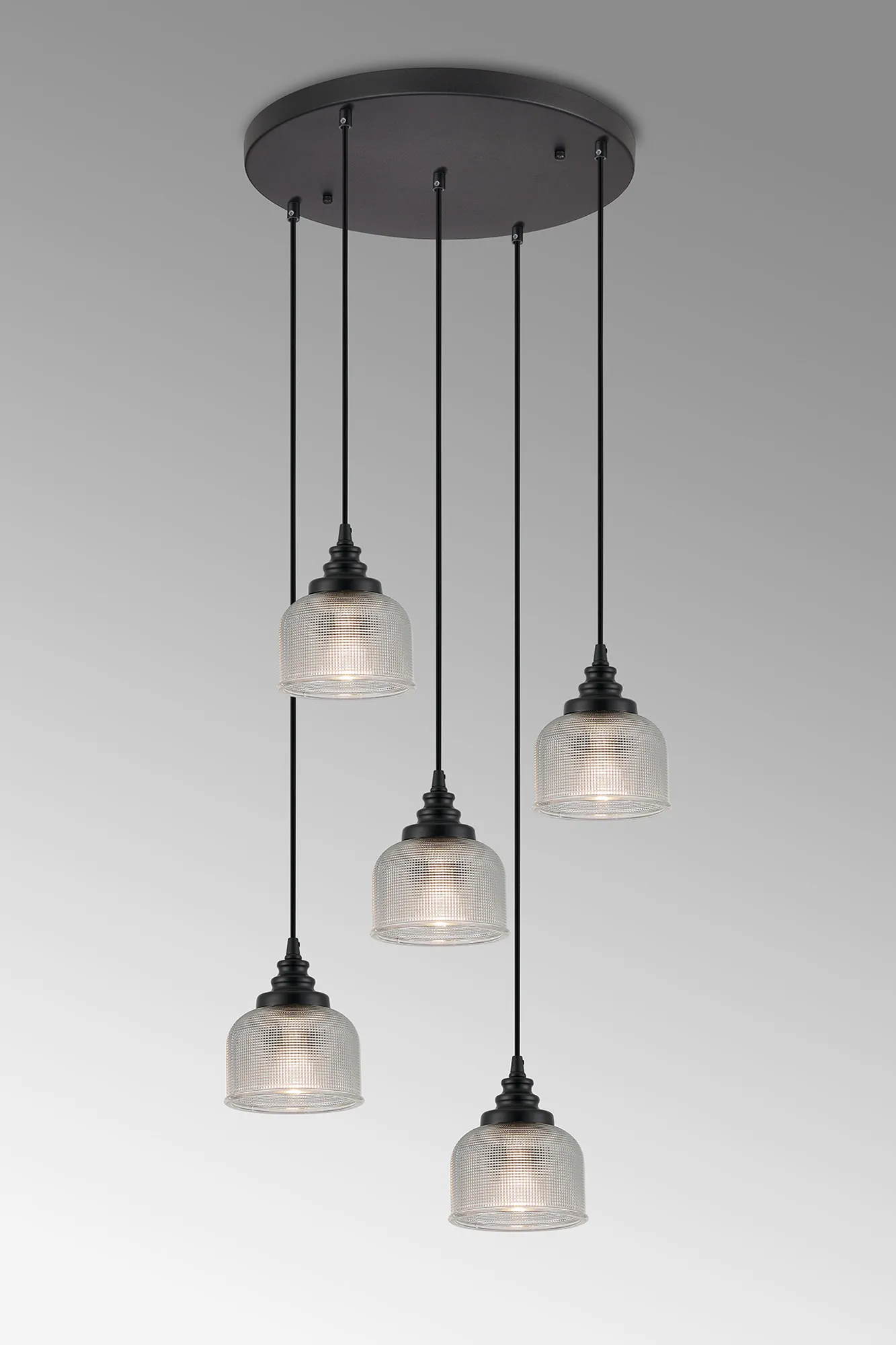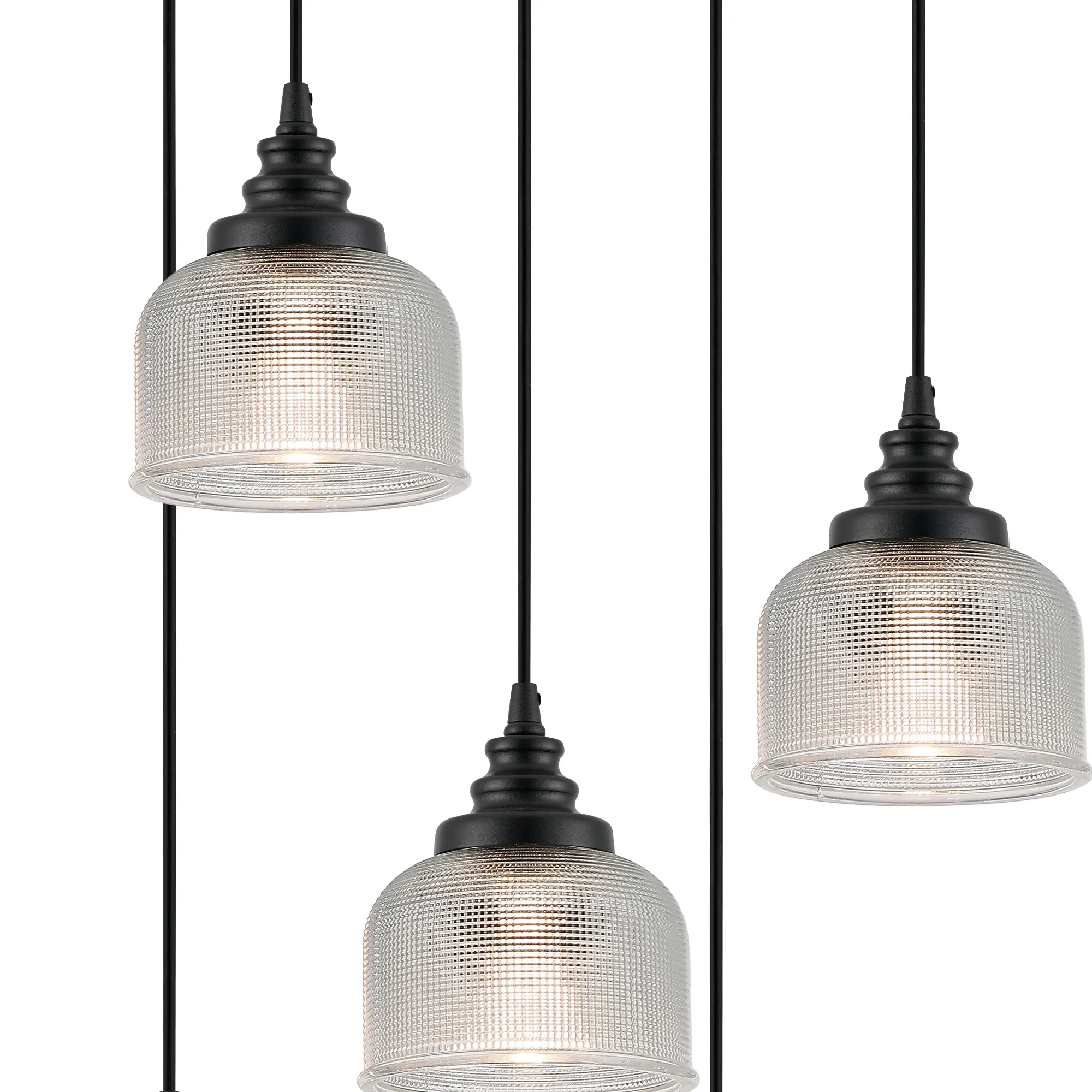 Yorkton 12 Light Rectangular Pendant, E27, Satin Black/Prismatic Dome Glass, Clear Item Weight: 16.1kg