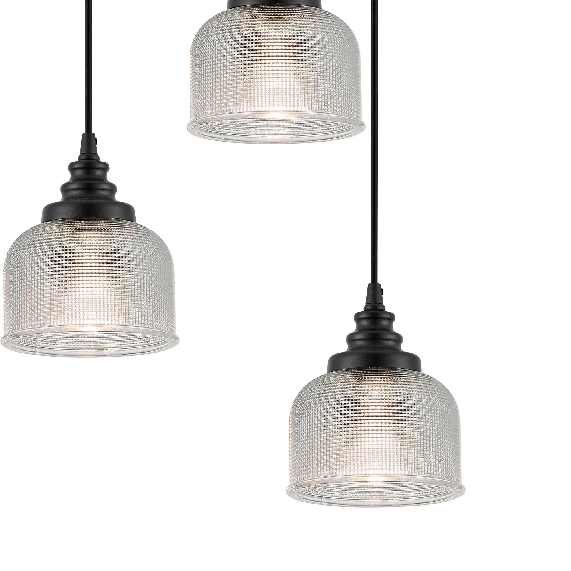 Yorkton 12 Light Rectangular Pendant, E27, Satin Black/Prismatic Dome Glass, Clear
