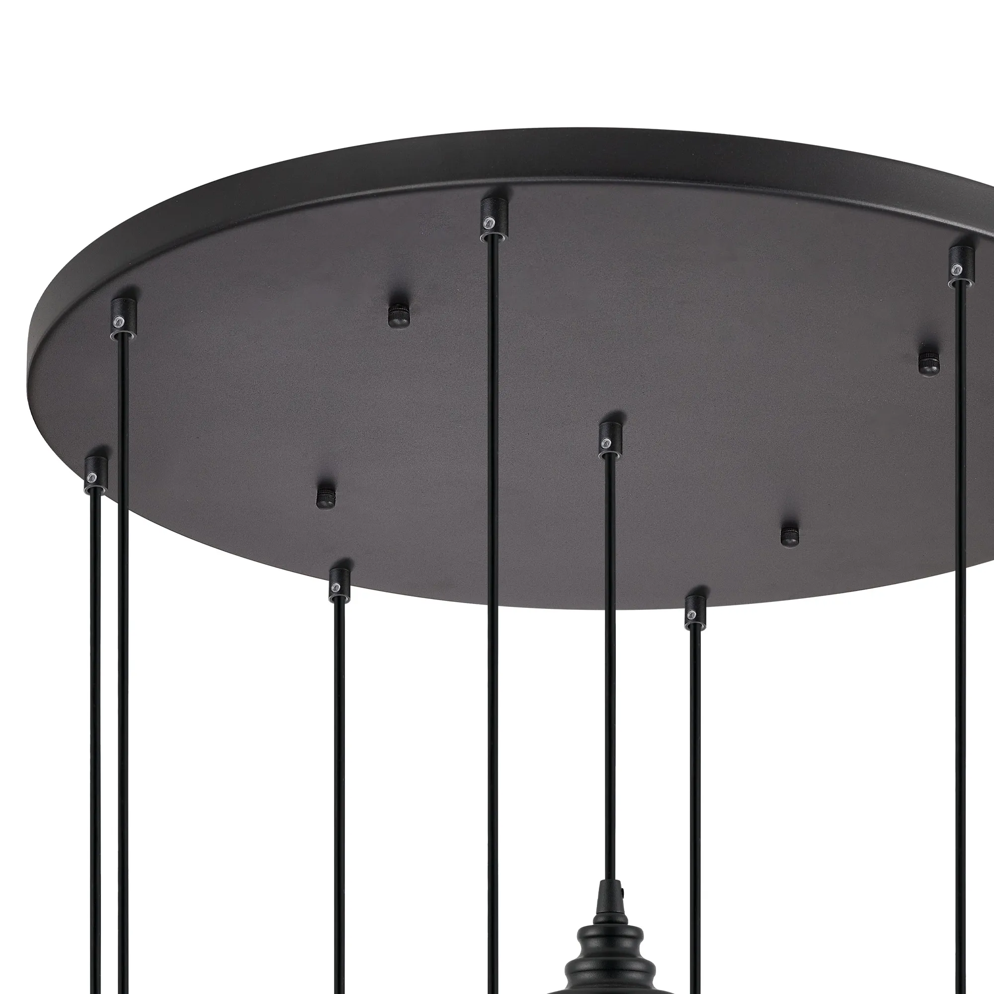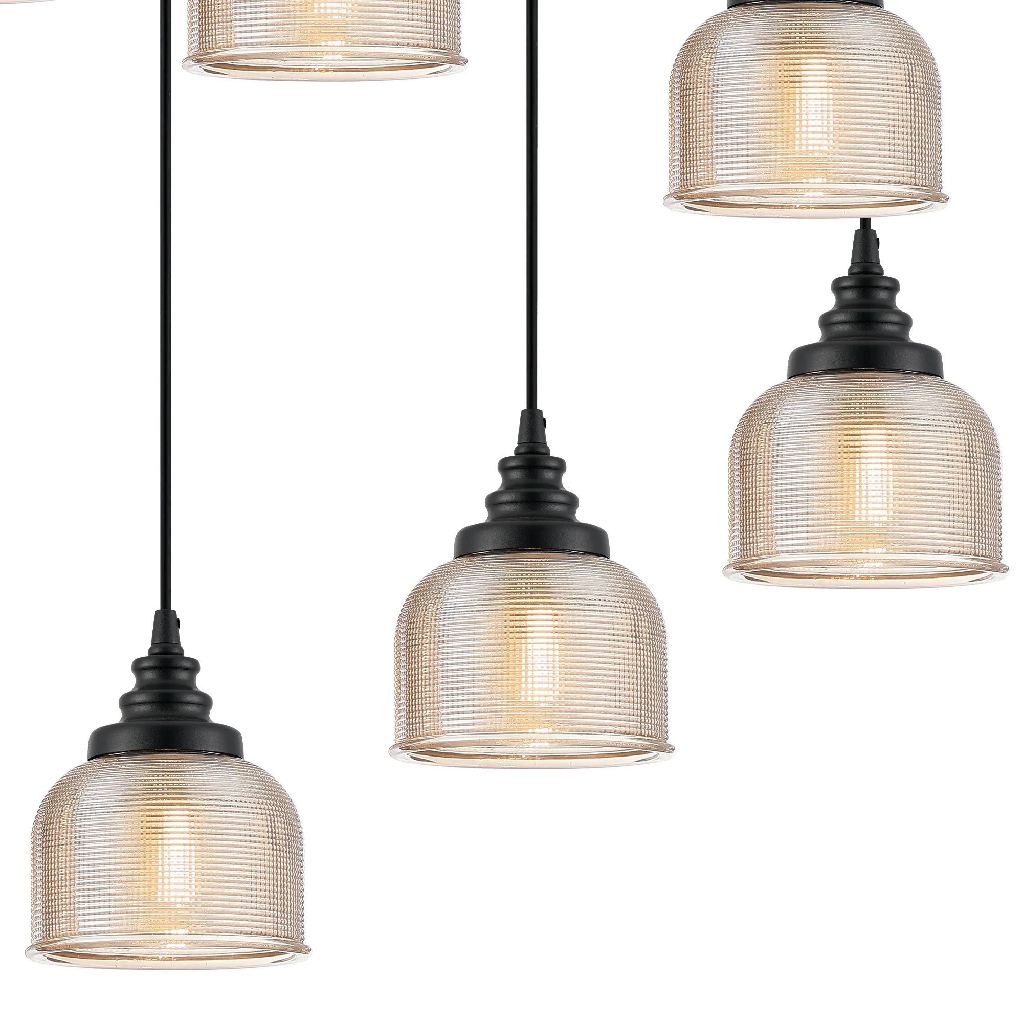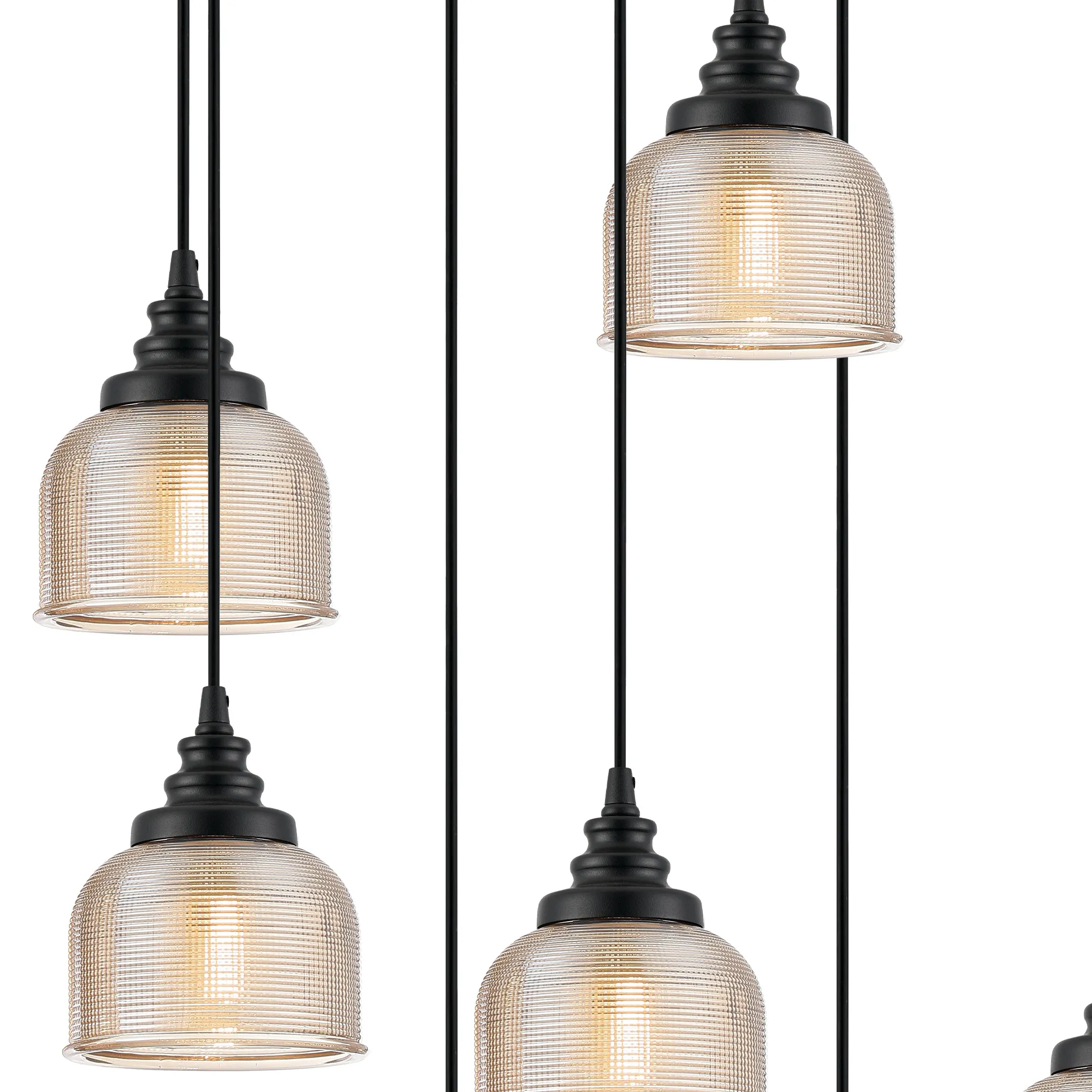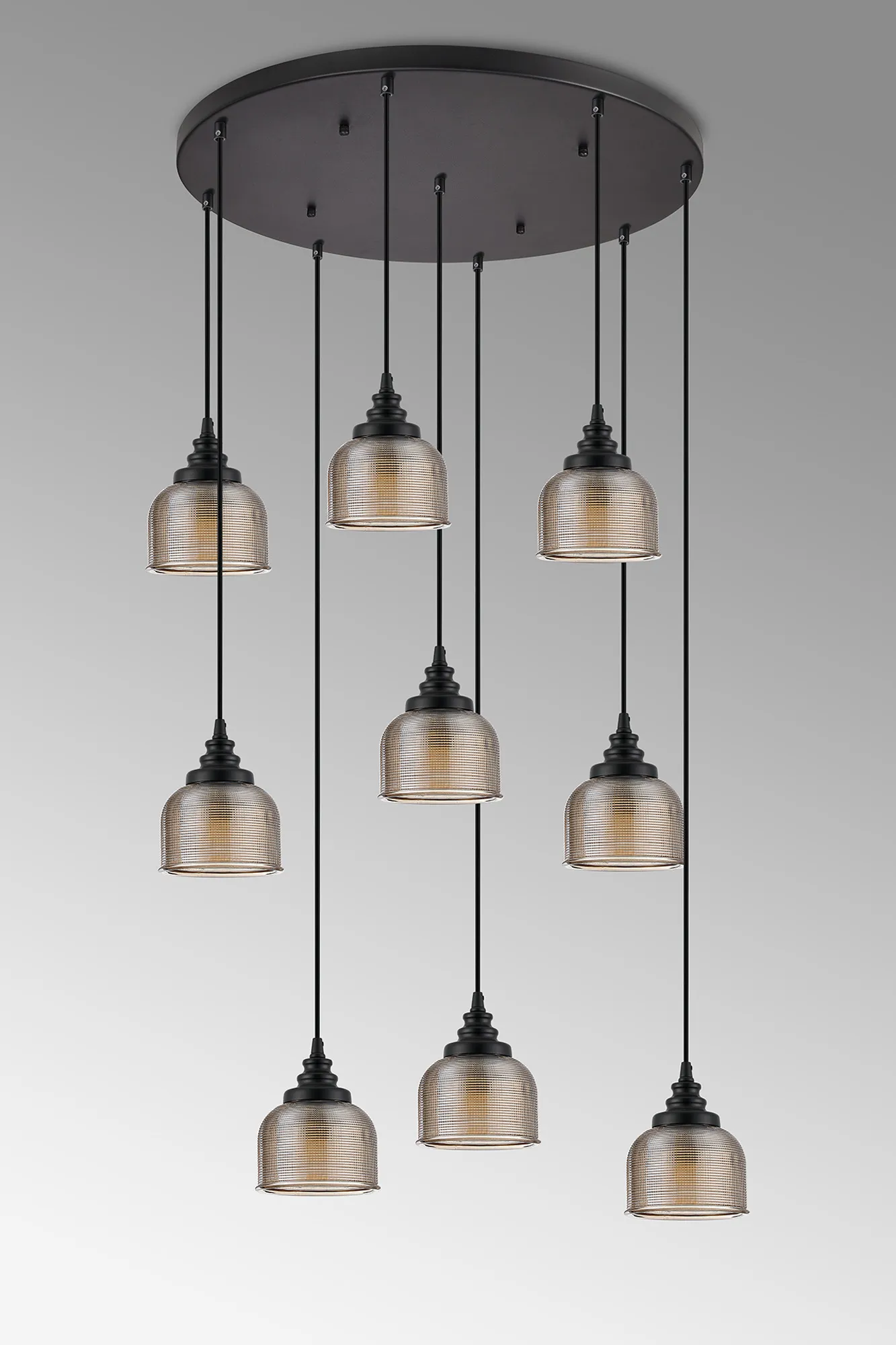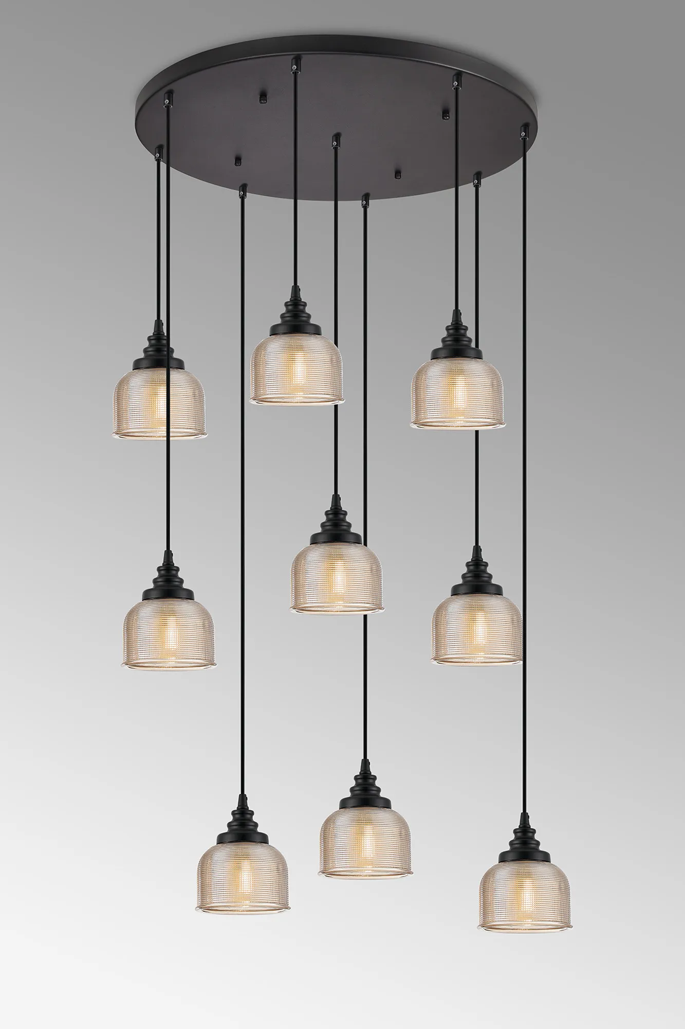 OTHER Yorkton 9 Light Round Pendant, E27, Satin Black/Prismatic Dome Glass, Amber