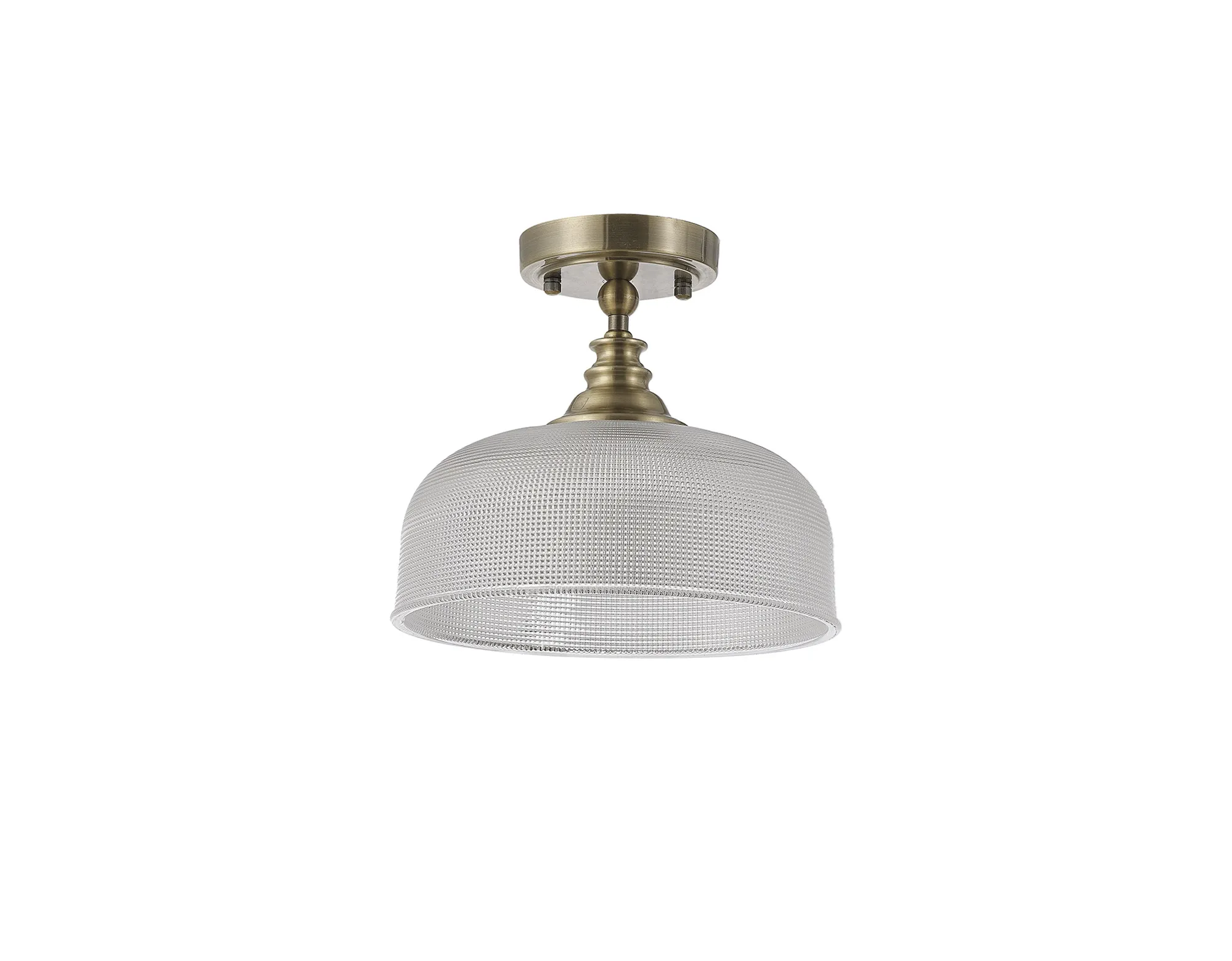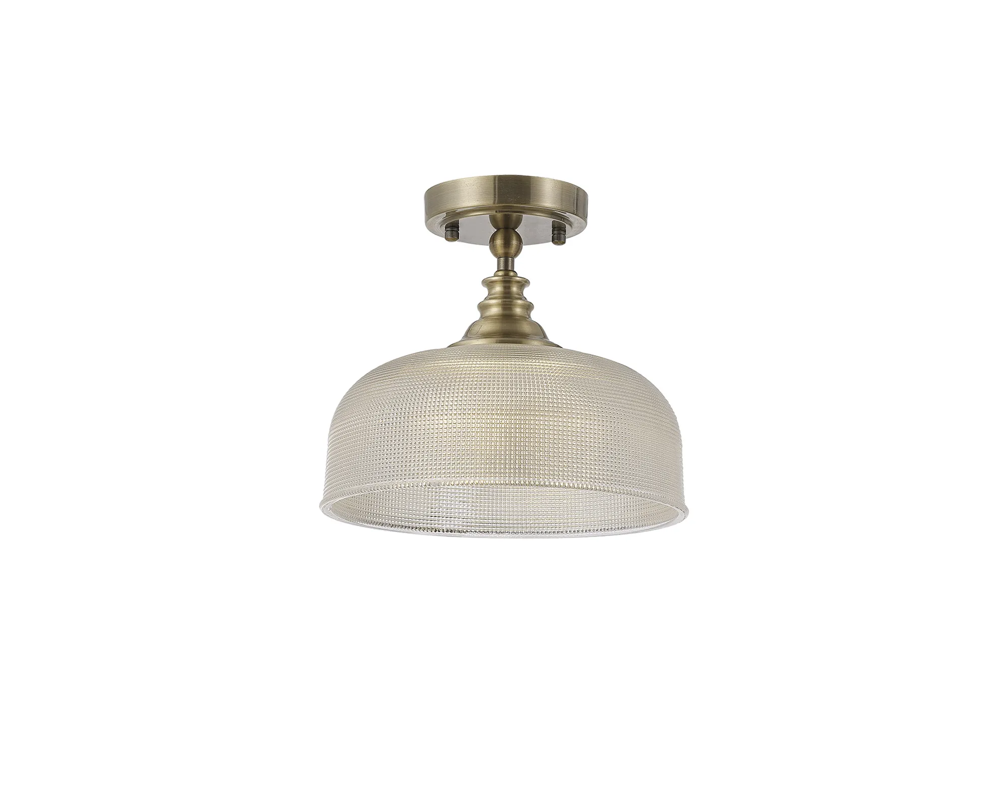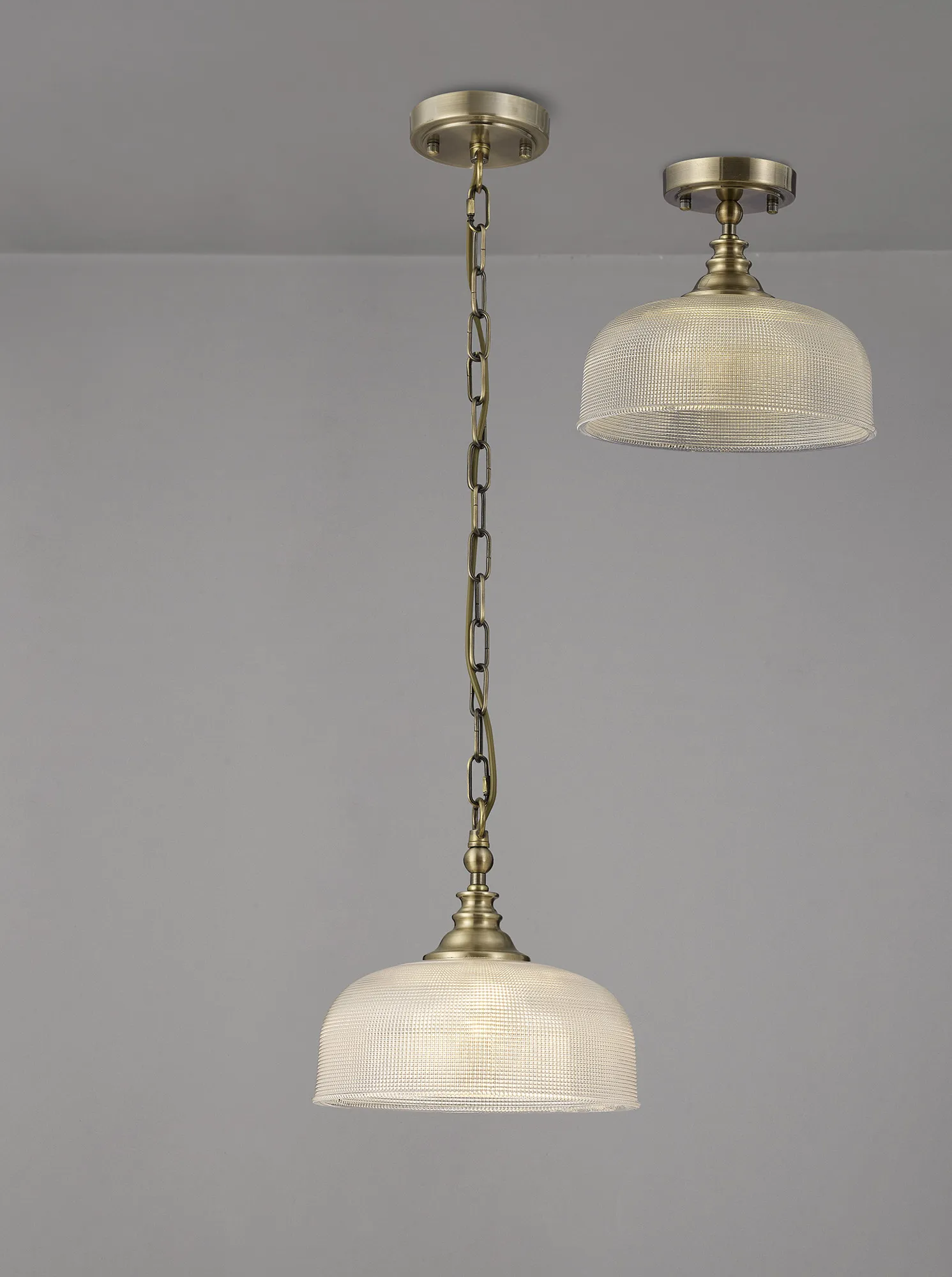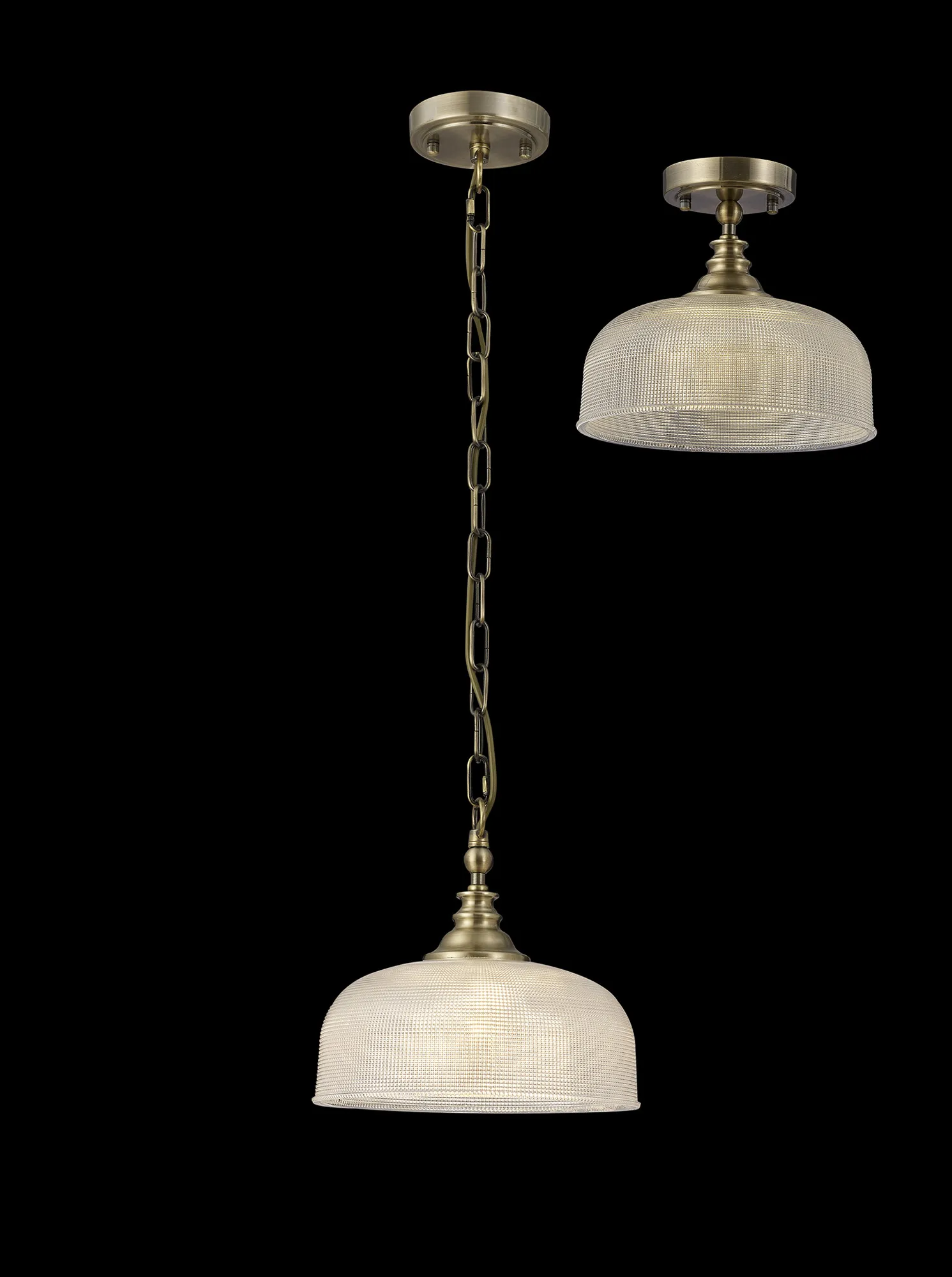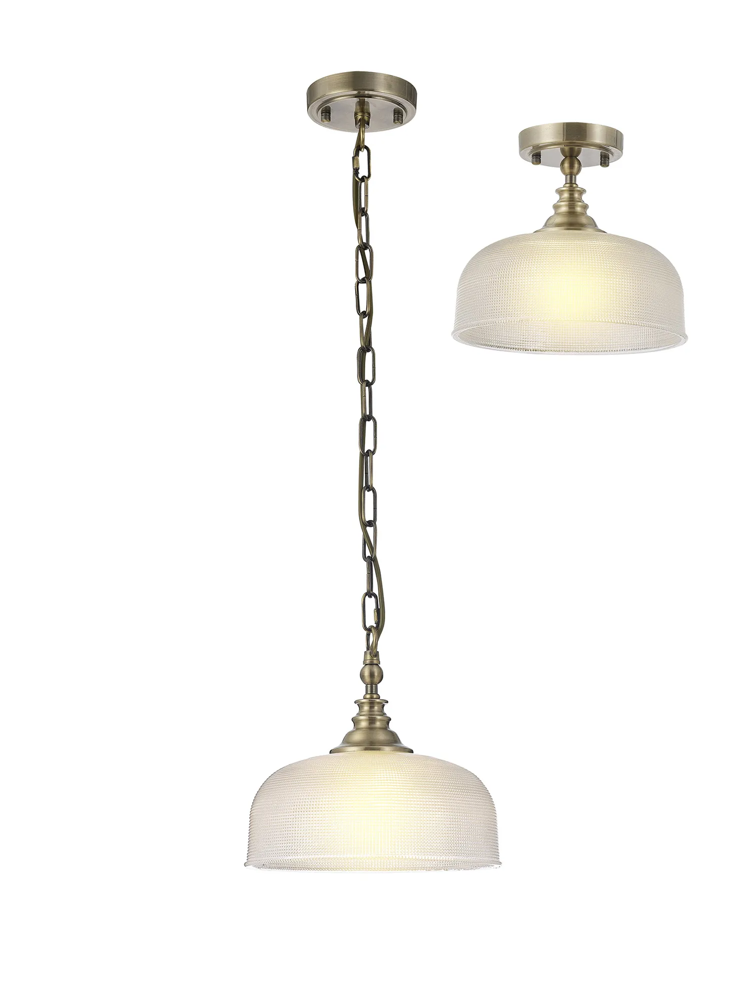 Yorkton Semi Flush/Pendant Bar, 2 Light Adjustable E27, Antique Brass/Prismatic Glass