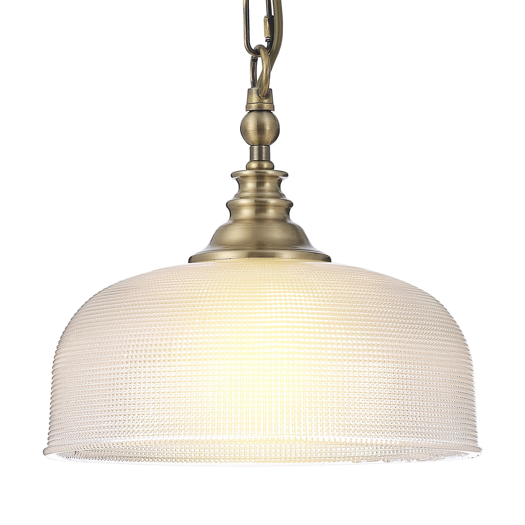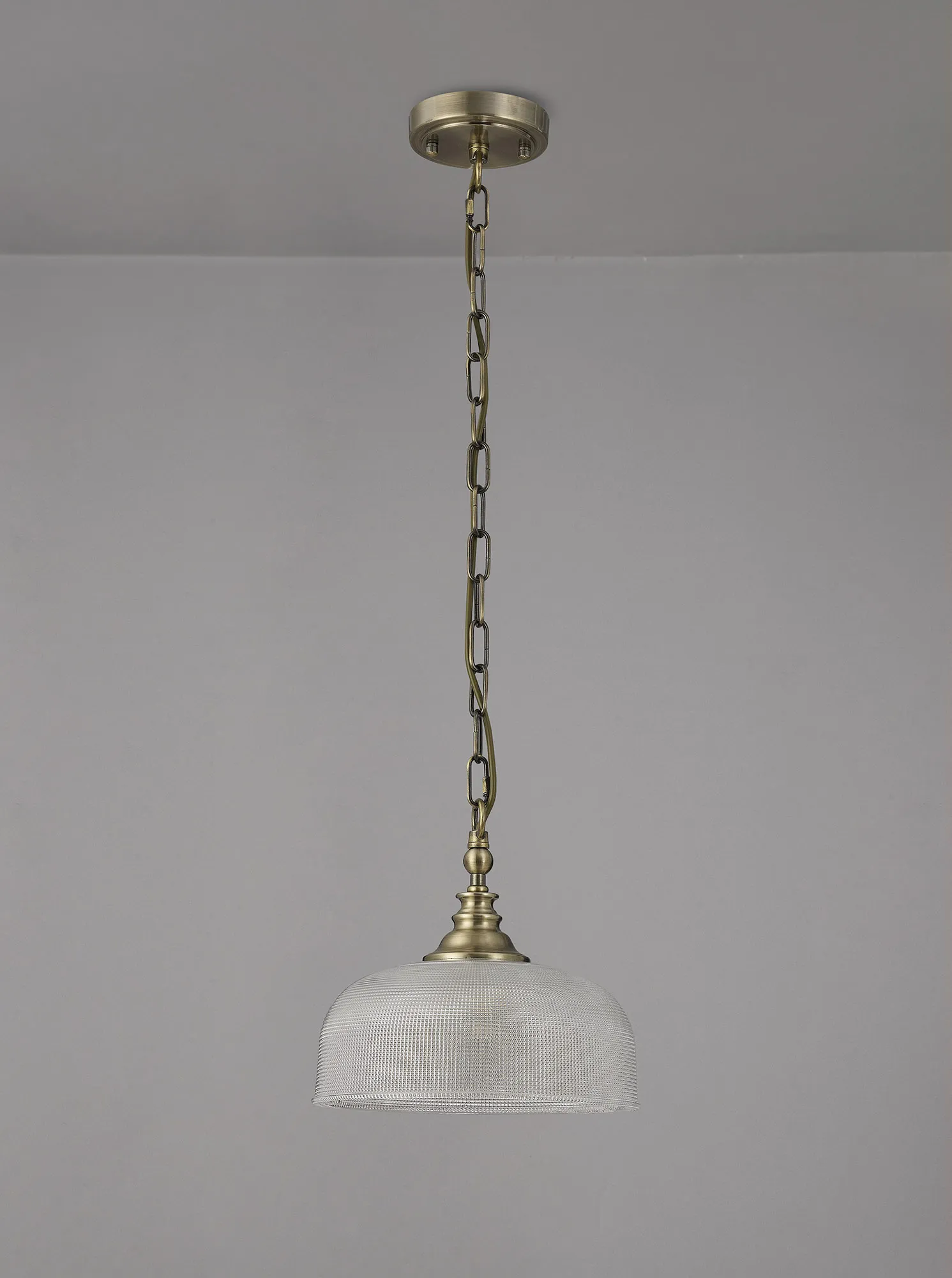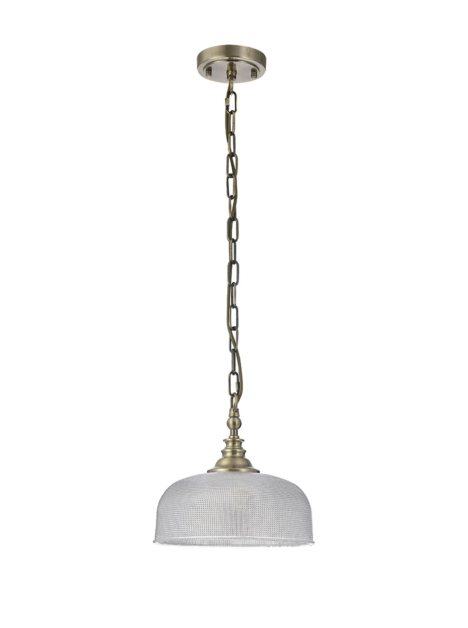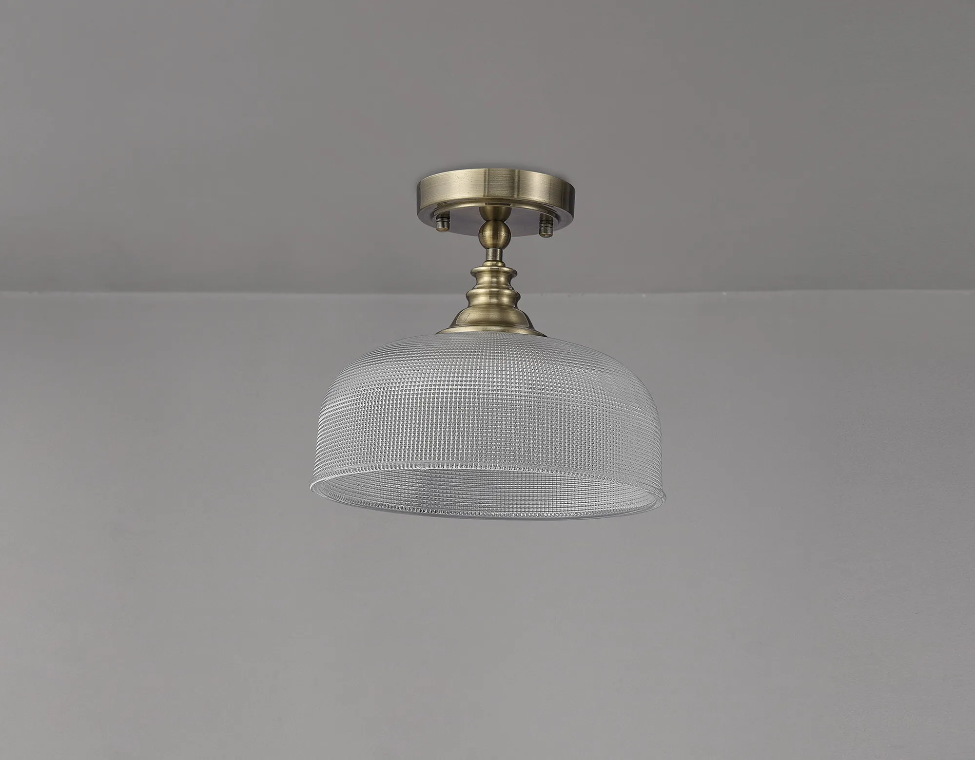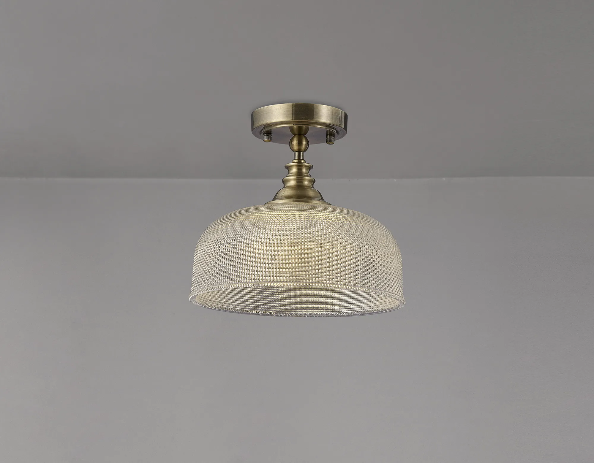 Yorkton Semi Flush/Pendant Bar, 2 Light Adjustable E27, Antique Brass/Prismatic Glass