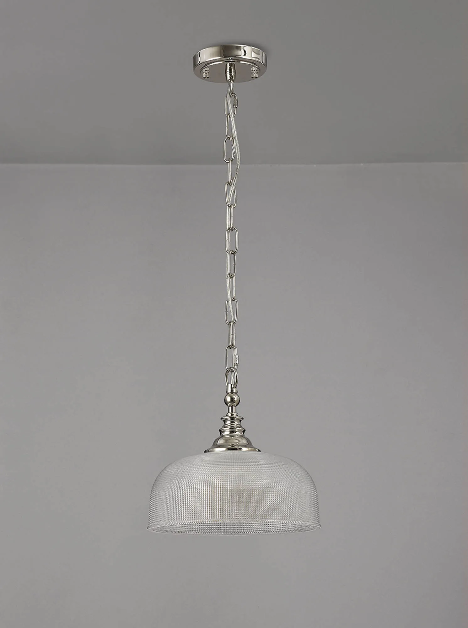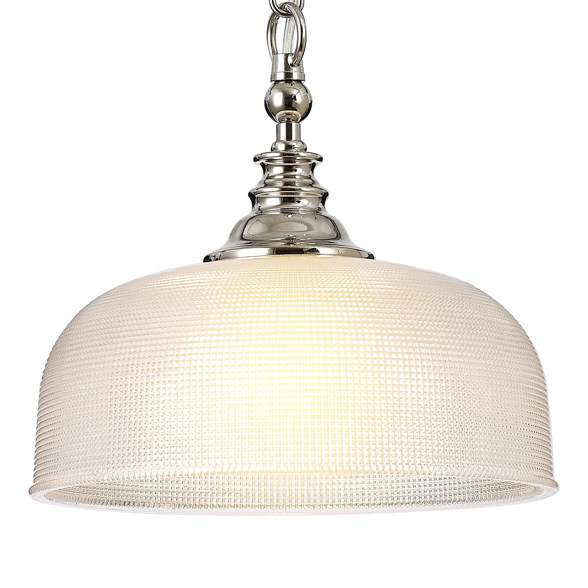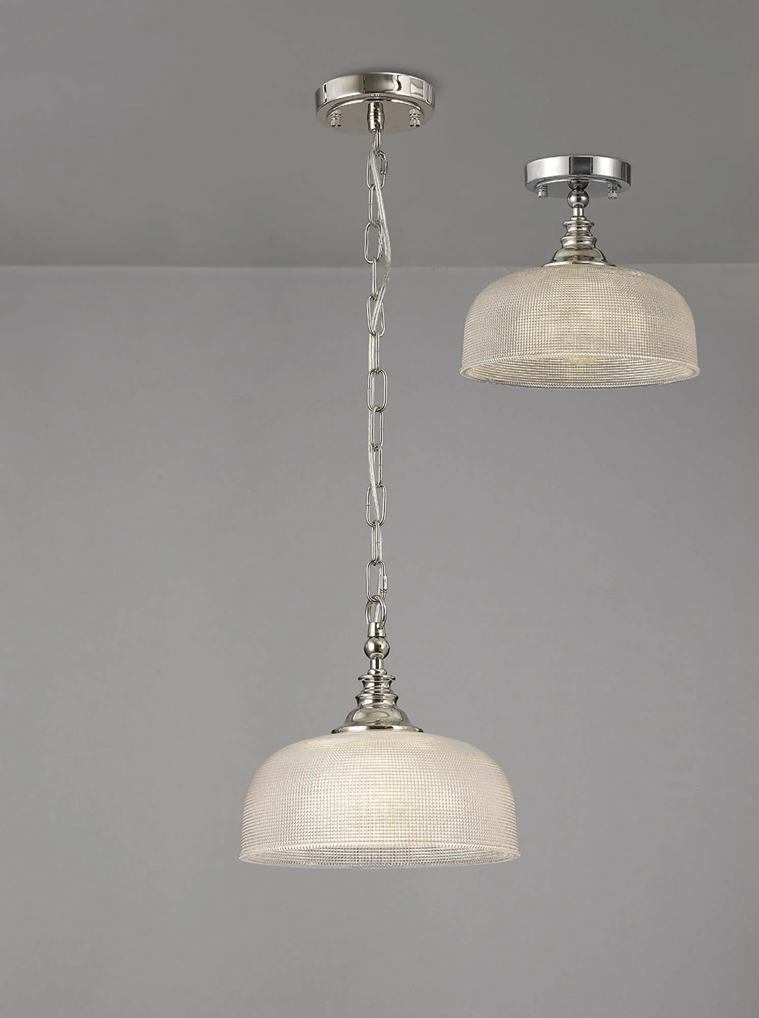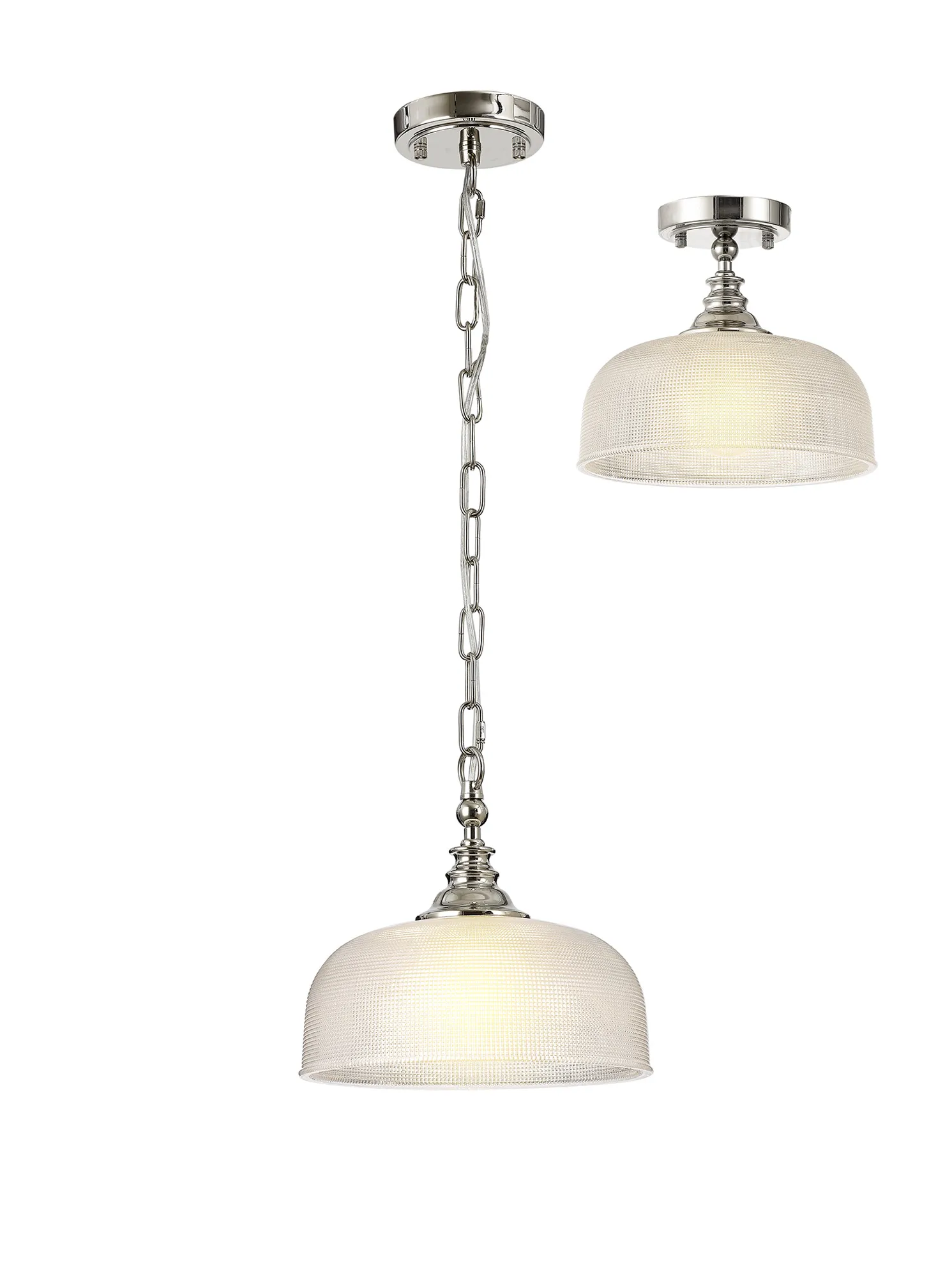 Yorkton Semi Flush/Pendant, 3 x E27, Polished Nickel/Prismatic Glass