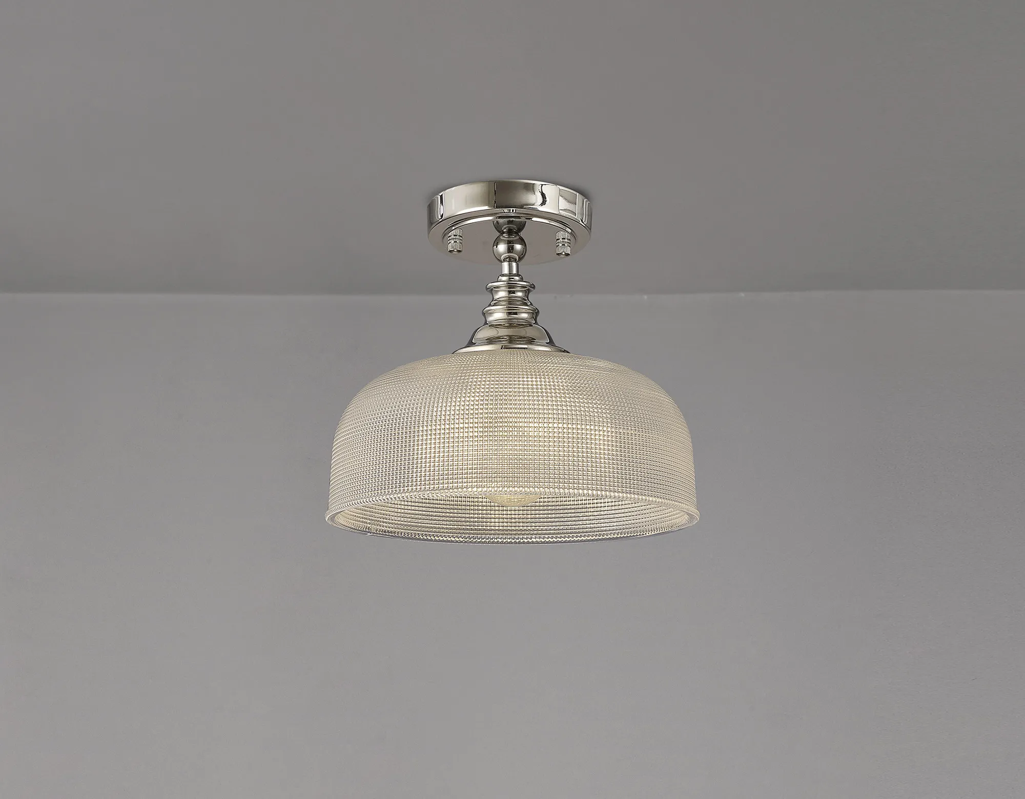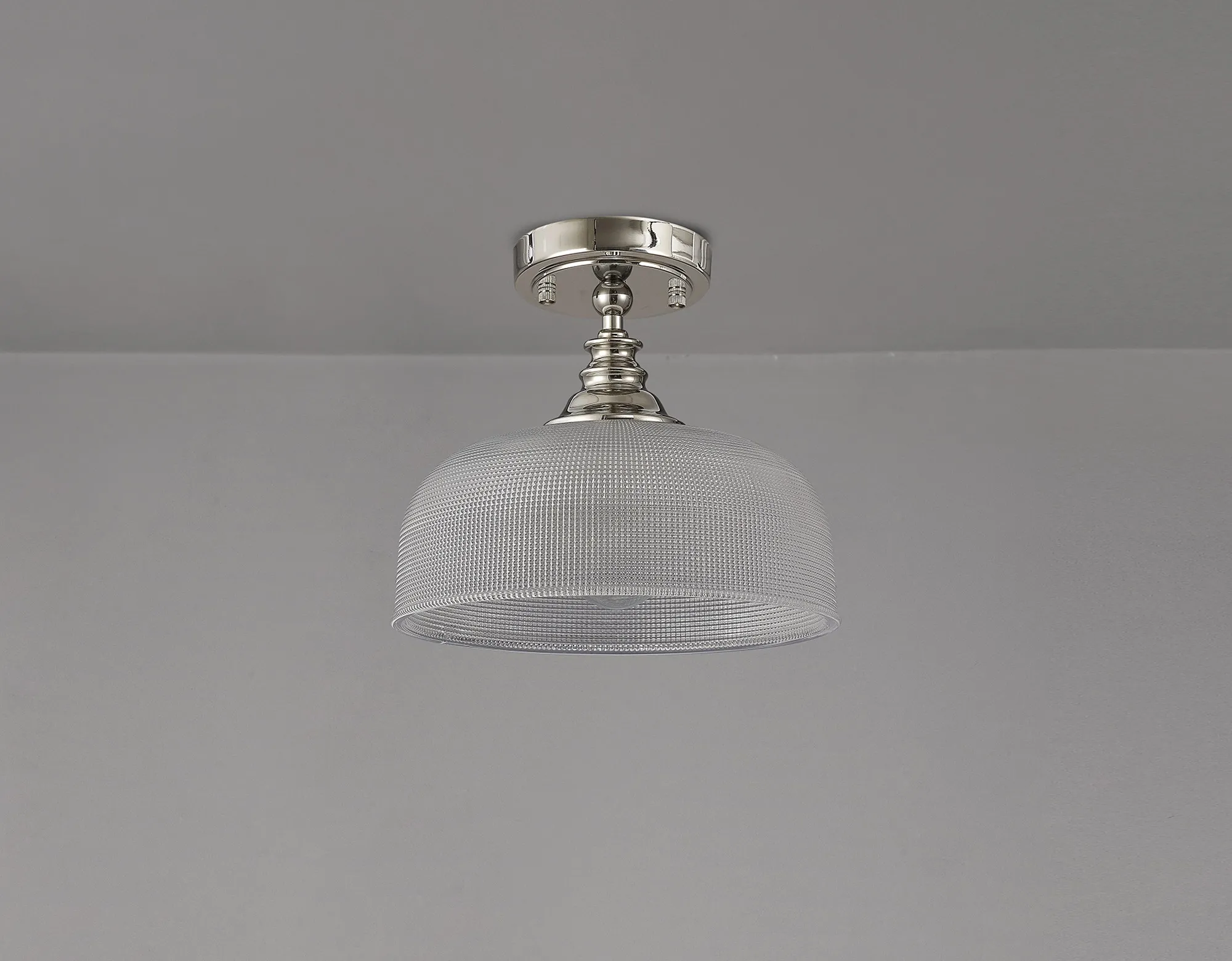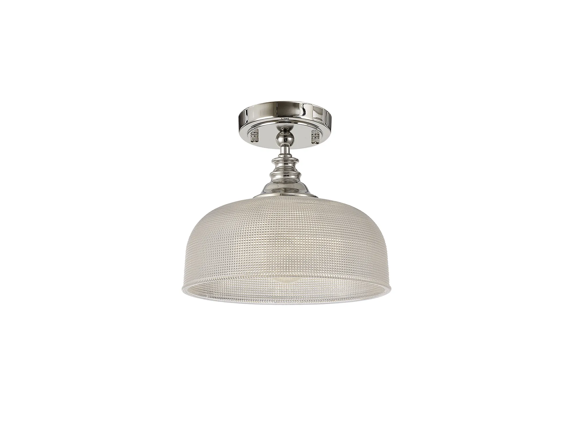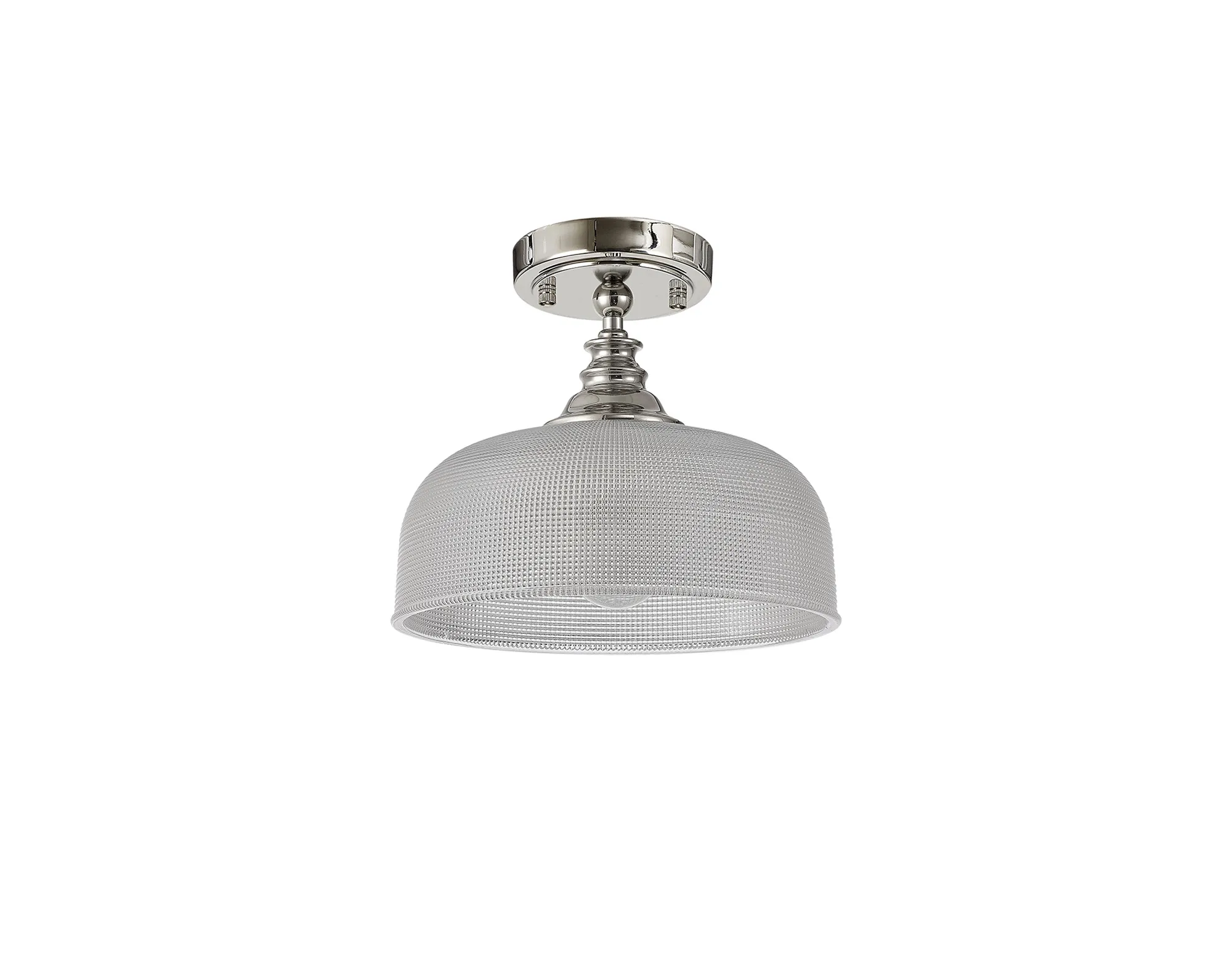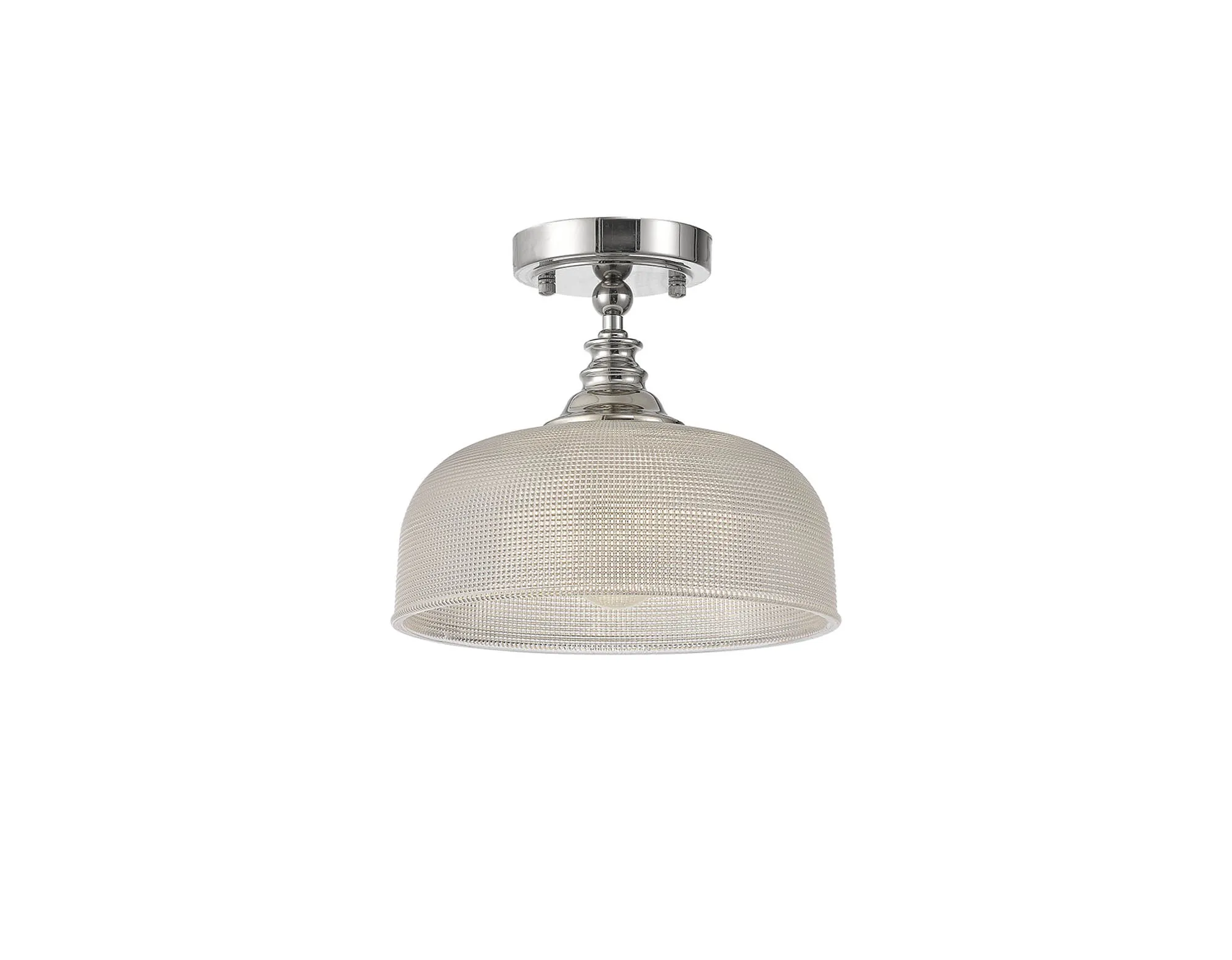 Yorkton Semi Flush/Pendant, 3 x E27, Polished Nickel/Prismatic Glass