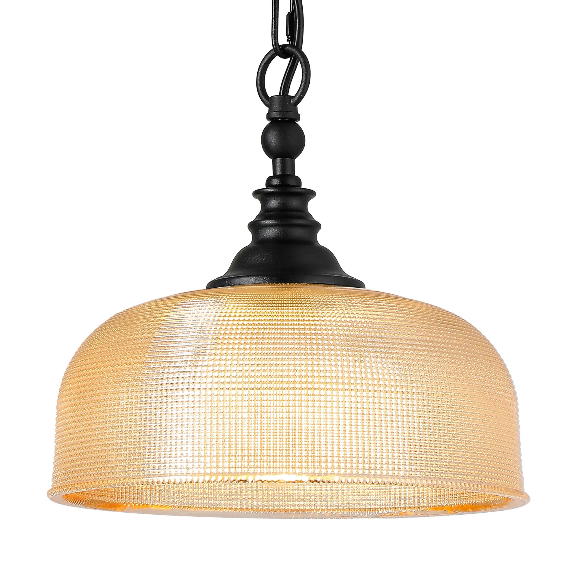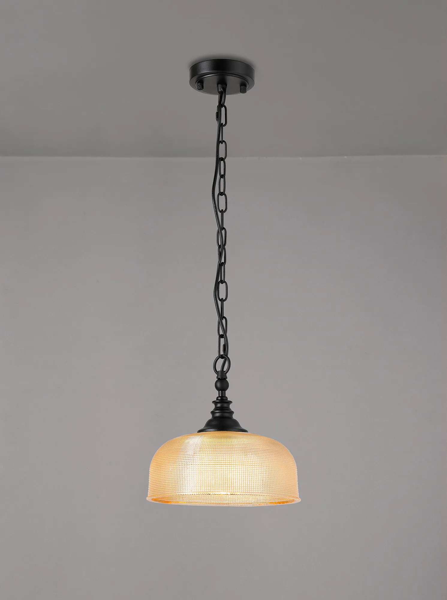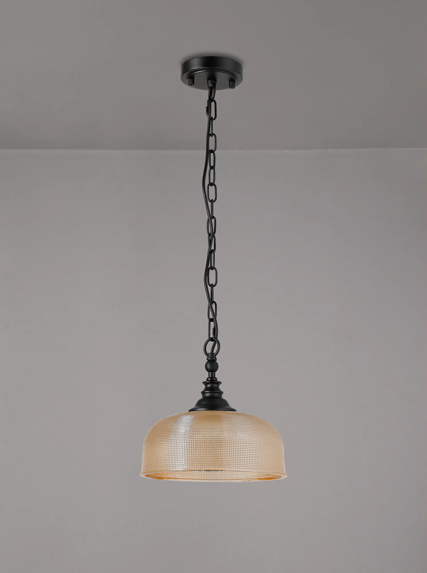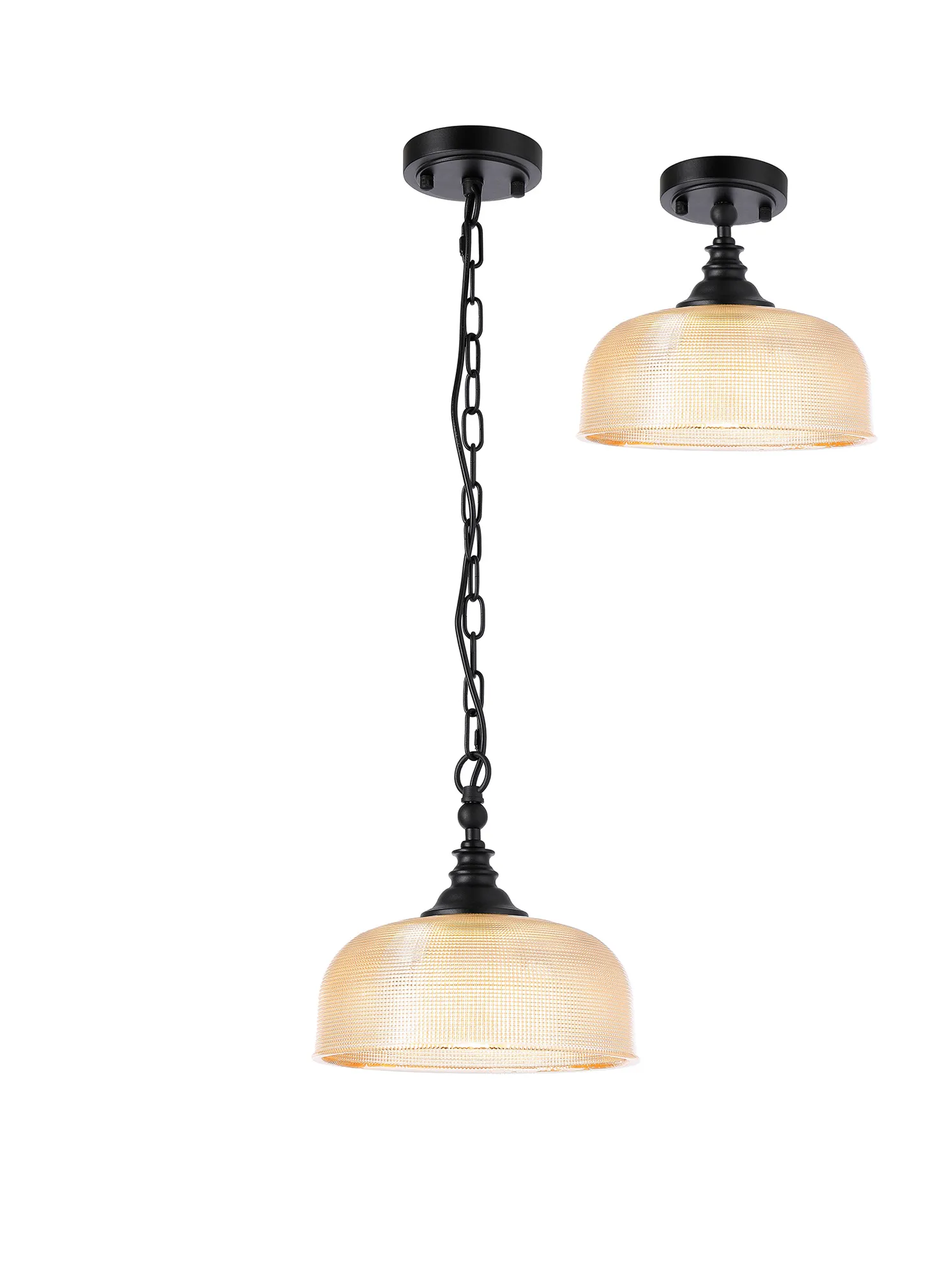 OTHER Yorkton Flush/Single Pendant, 1 Light Adjustable E27, Satin Black/Amber Glass