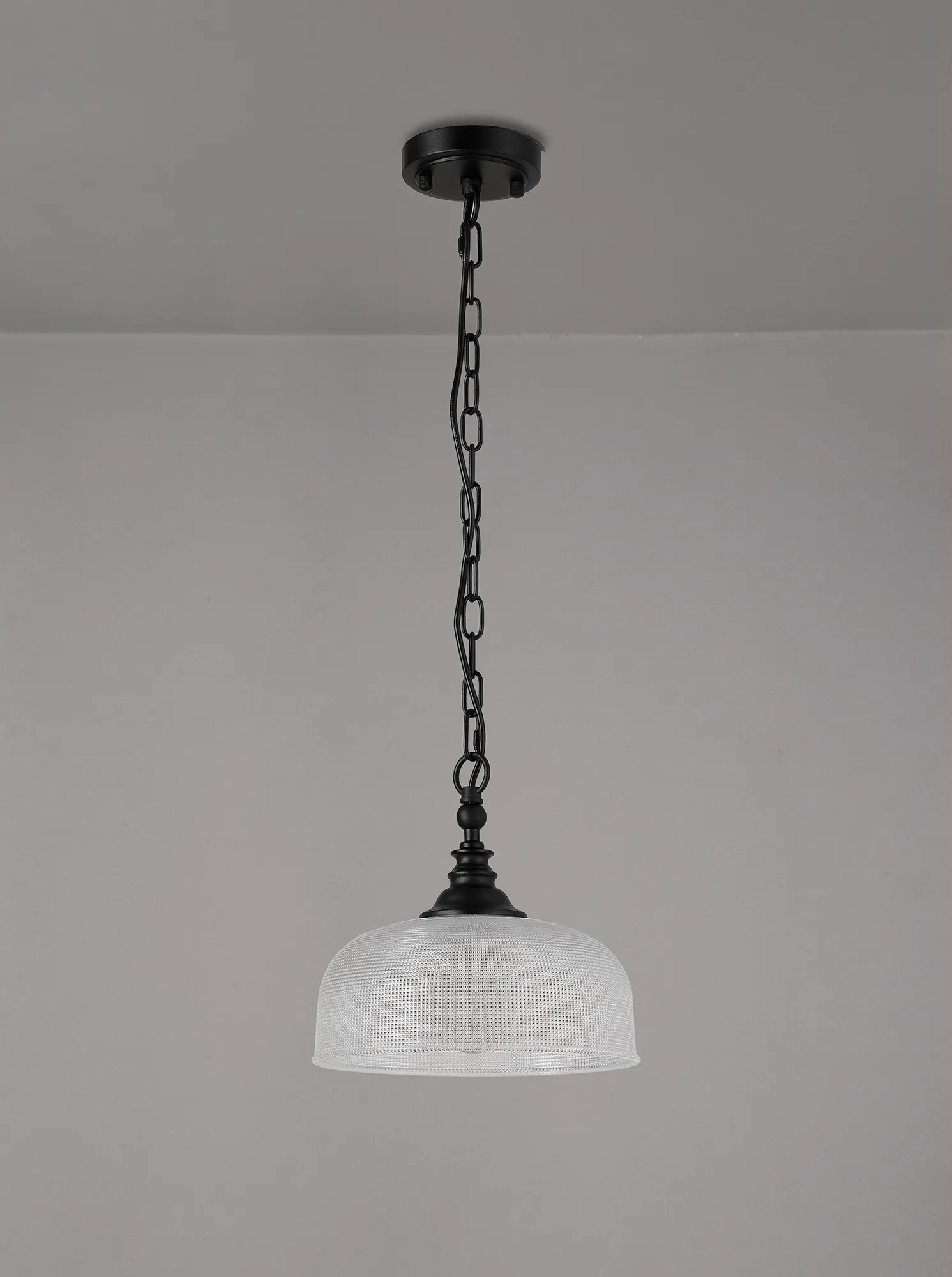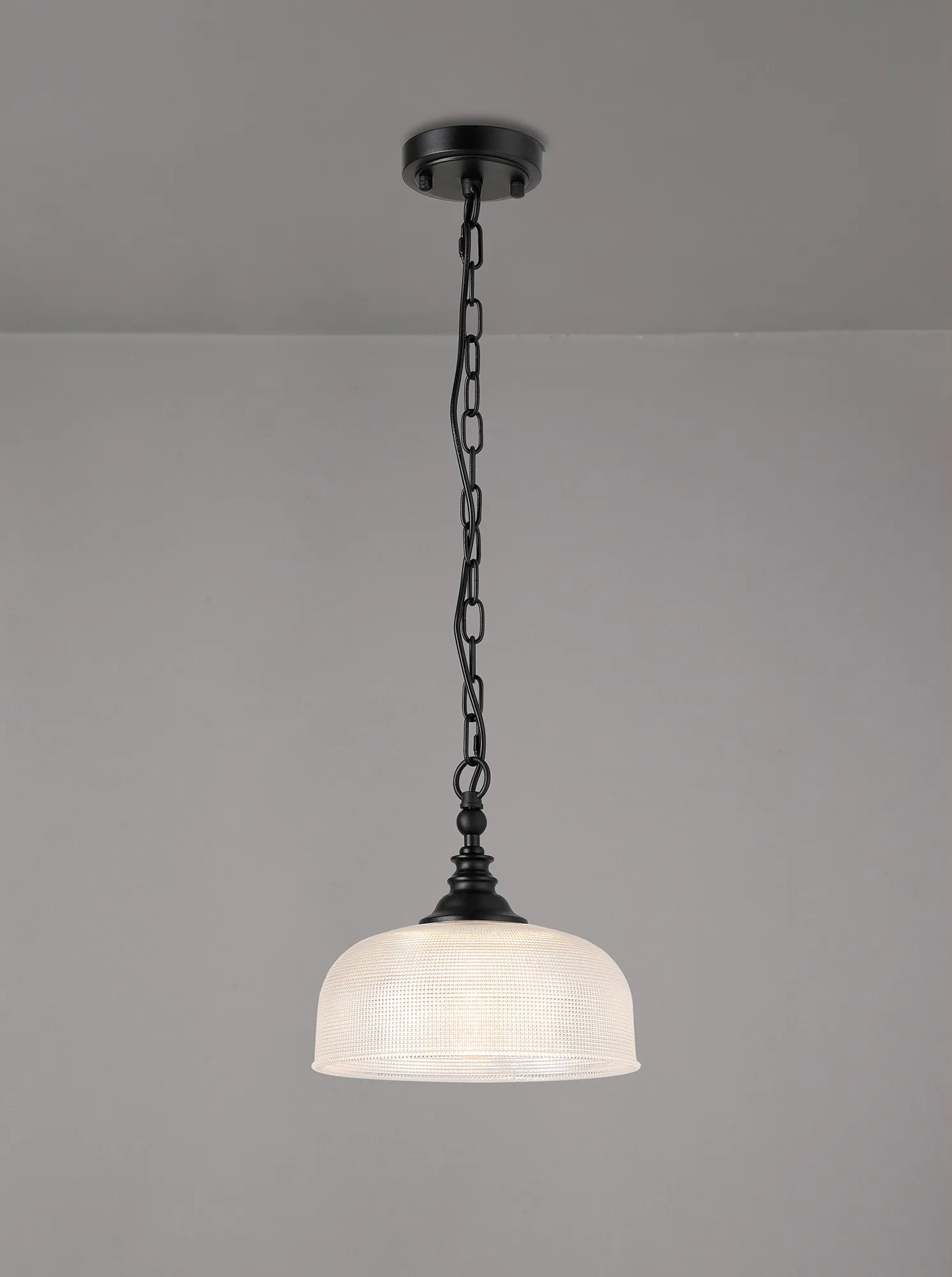 Yorkton is a fully comprehensive range of E27 fixtures ranging from; flush ceiling, various pendants, wall, table and floor lamps. The textured prismatic glass, in a colourful variety, not only give an appealing visual when the lights are not in use but also a dazzling effect when illuminated. Each frame is available in one of four colour finishes; antique brass, polished nickel, satin black and satin nickel.