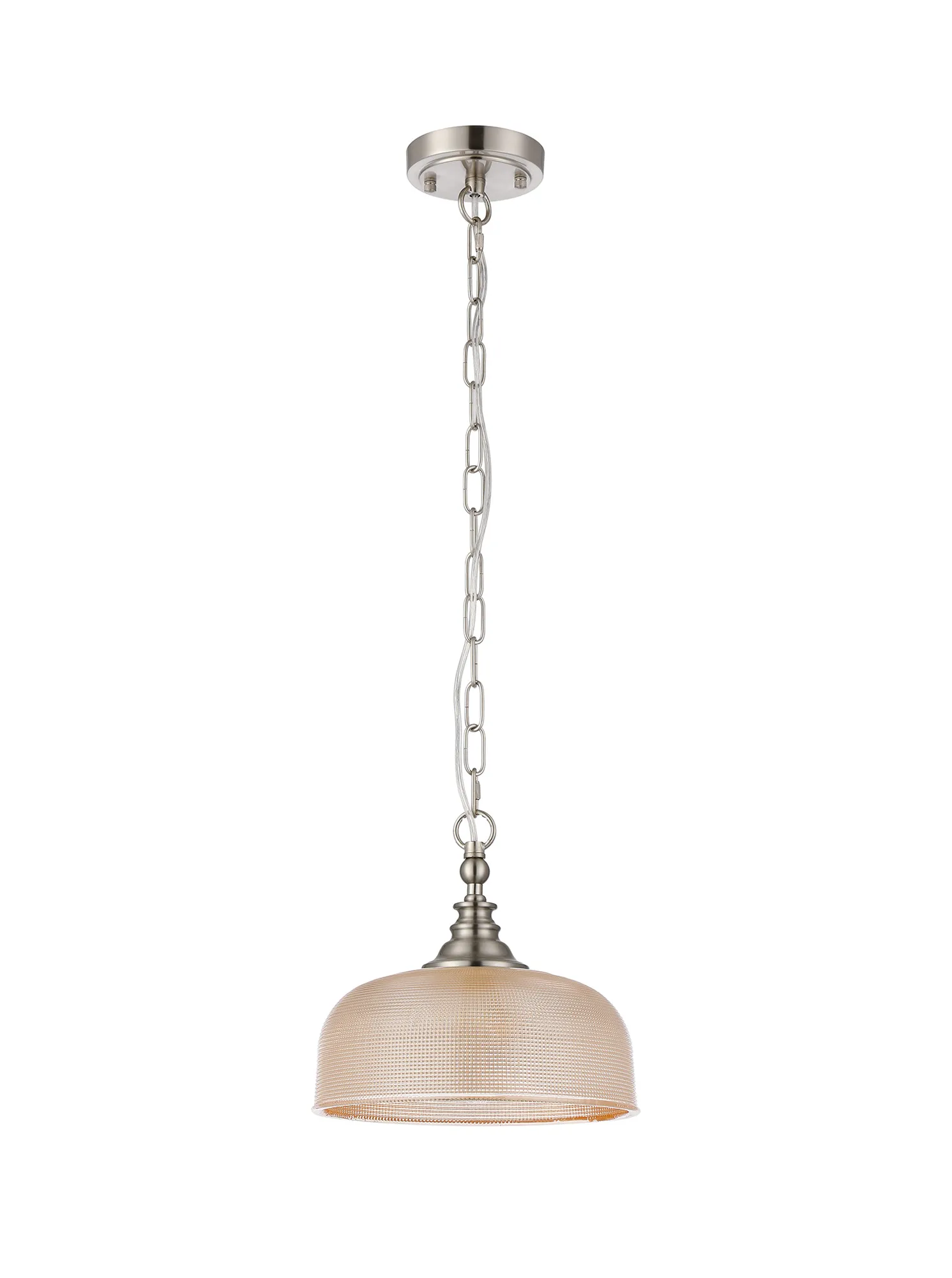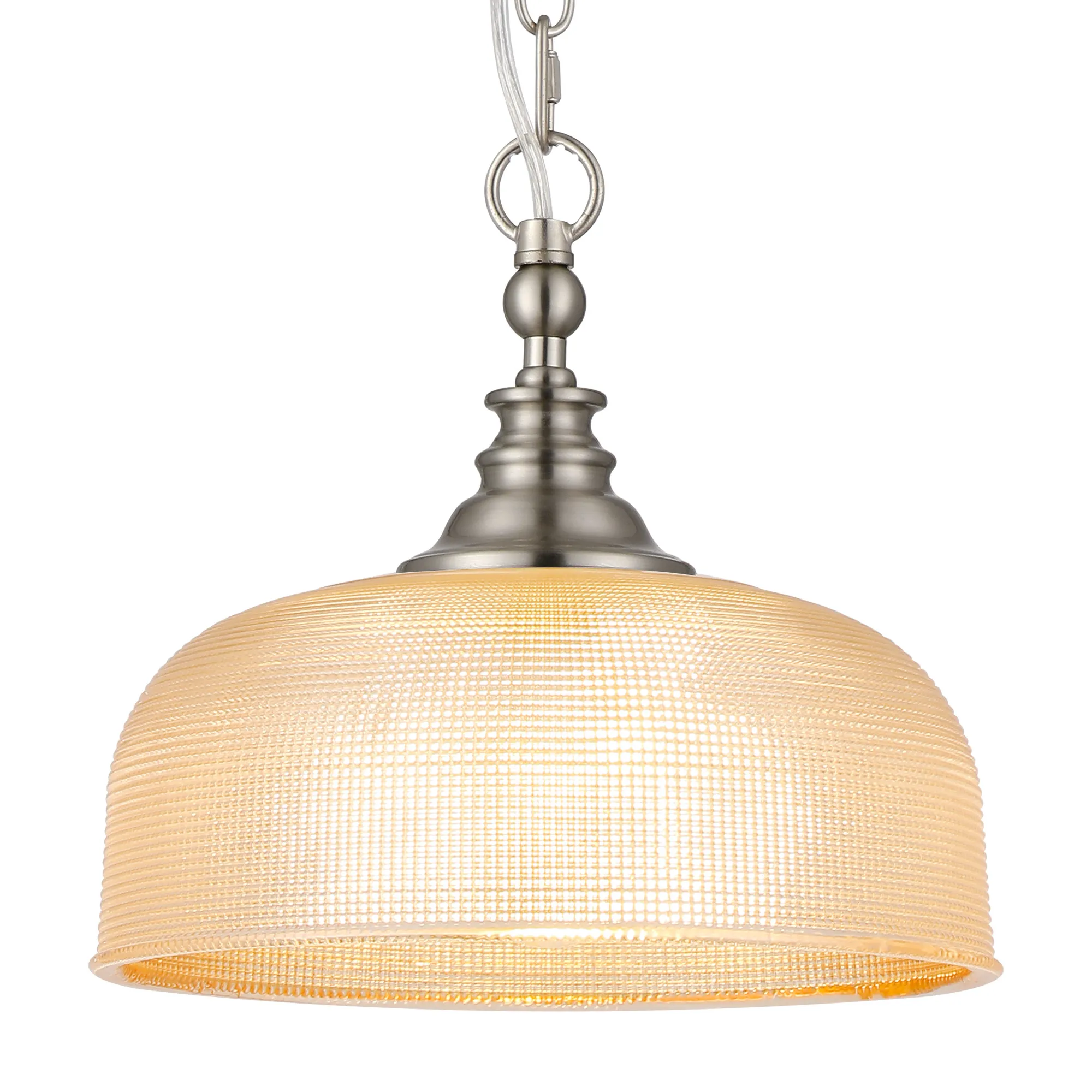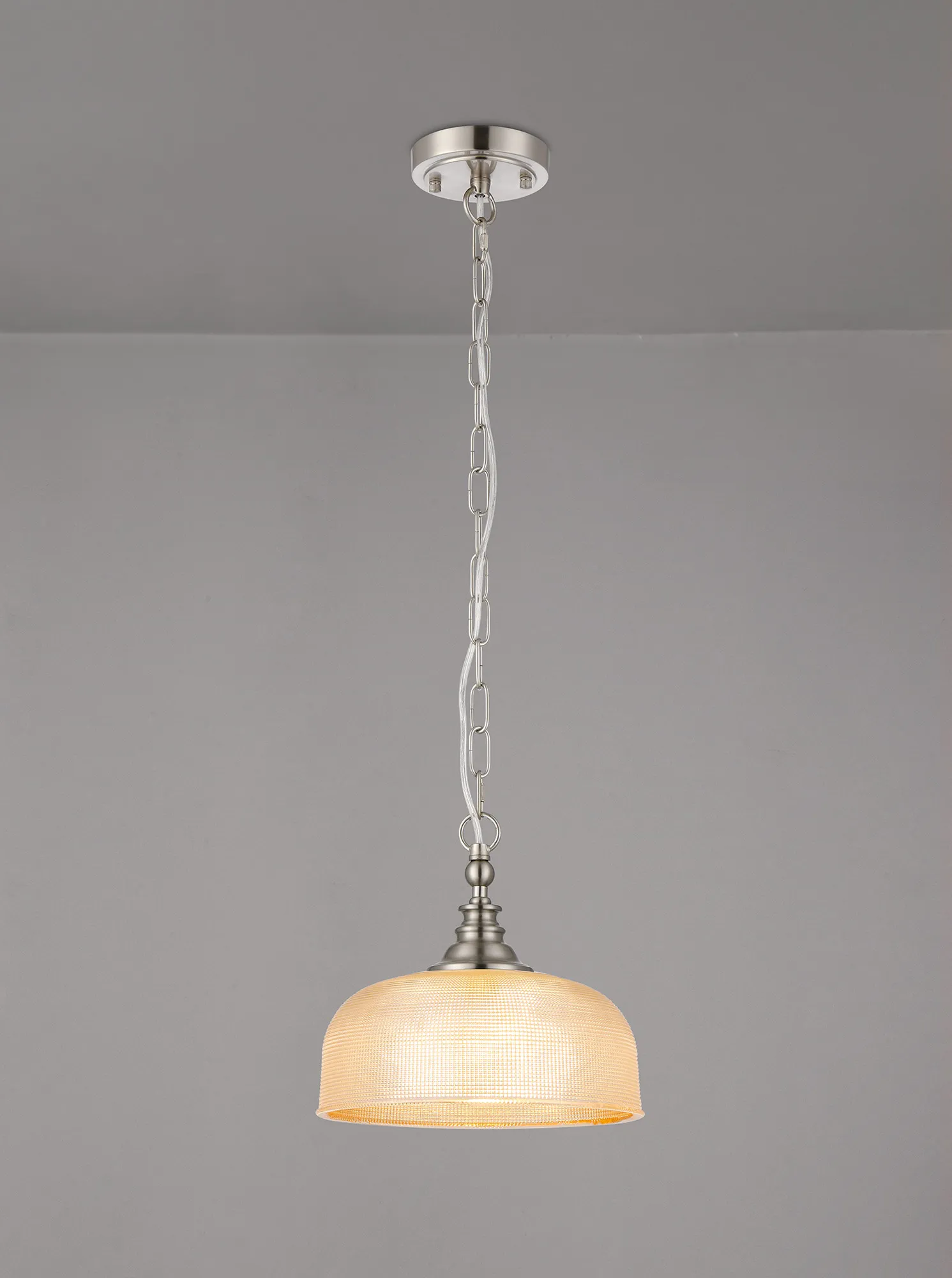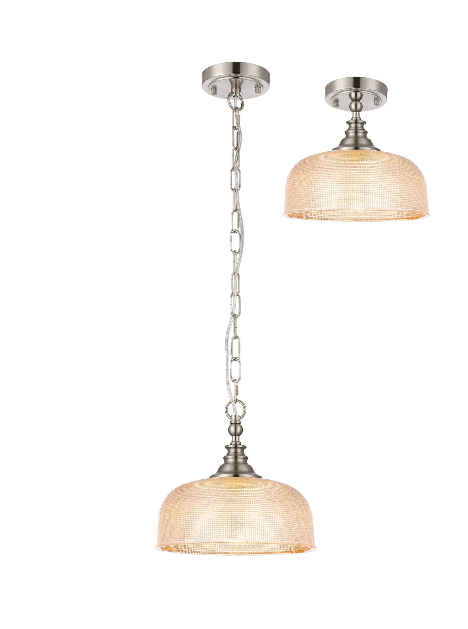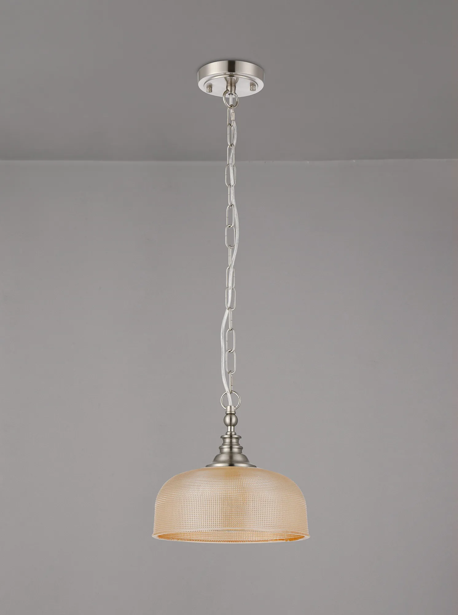 OTHER Yorkton Flush/Single Pendant, 1 Light Adjustable E27, Satin Nickel/Amber Glass