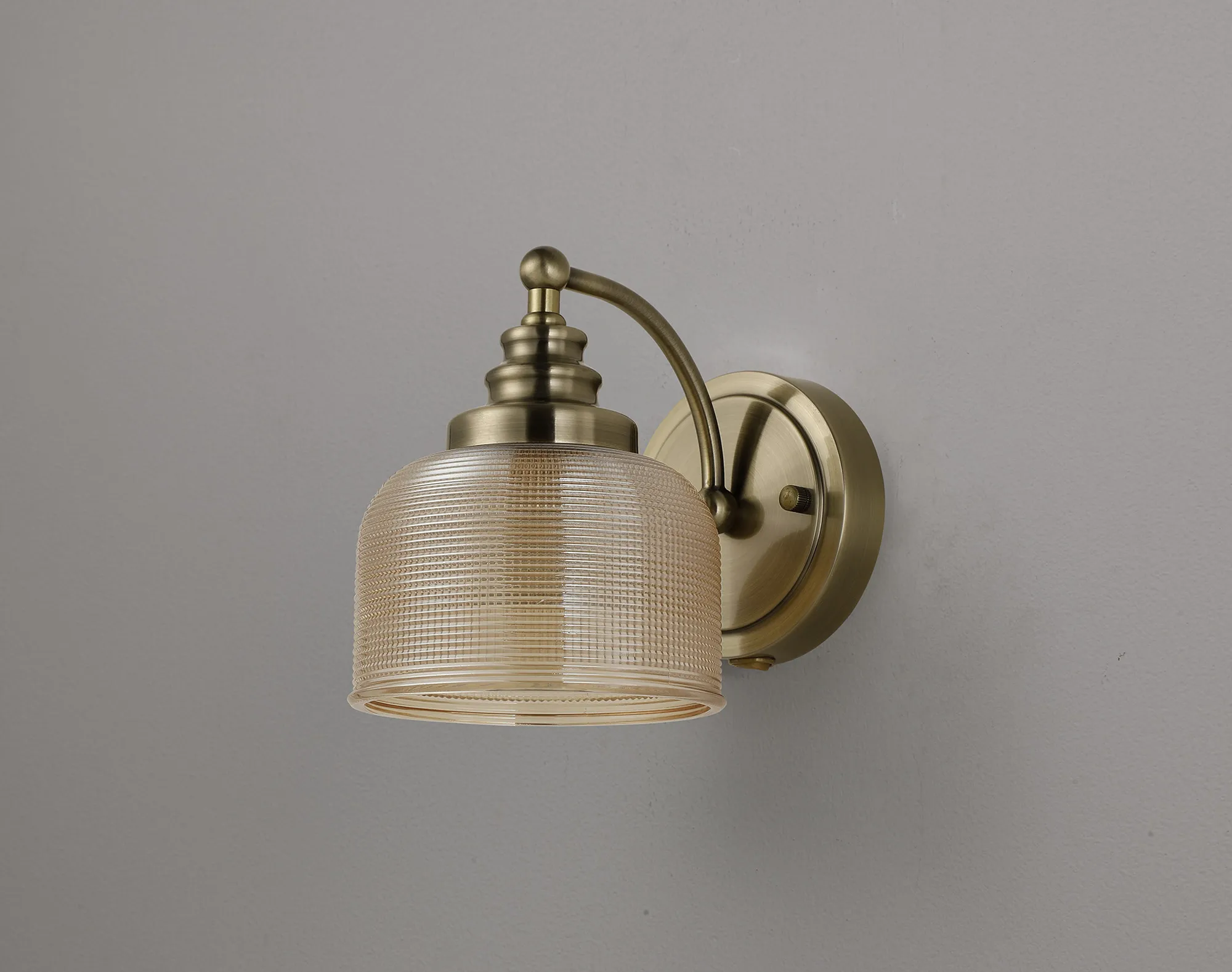 OTHER Yorkton Switched Wall Light, 1 Light E27 Antique Brass/Amber Glass