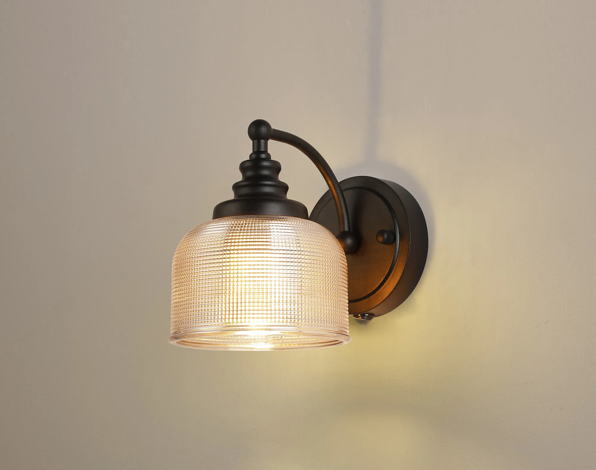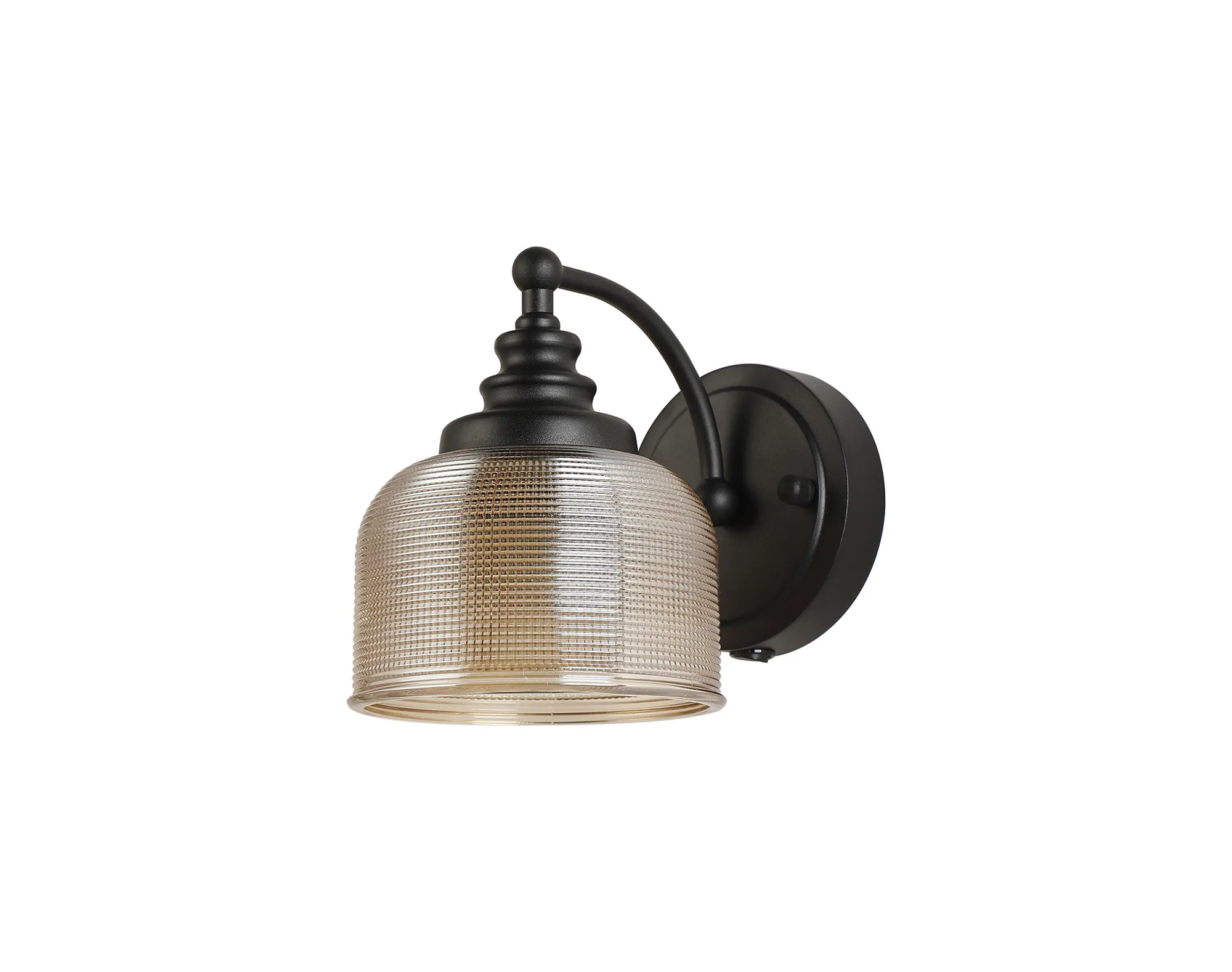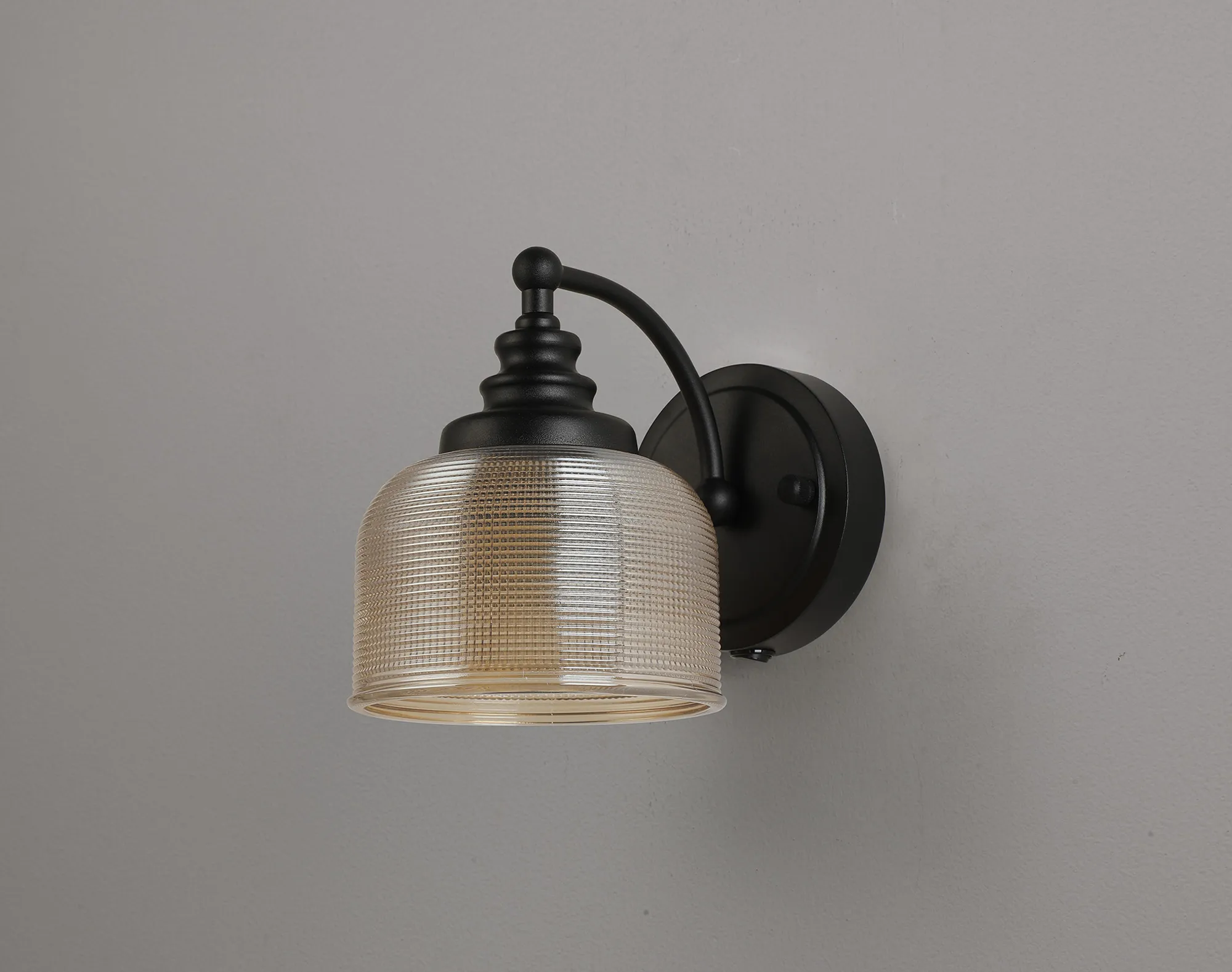 OTHER Yorkton Switched Wall Light, 1 Light E27 Satin Black/Amber Glass