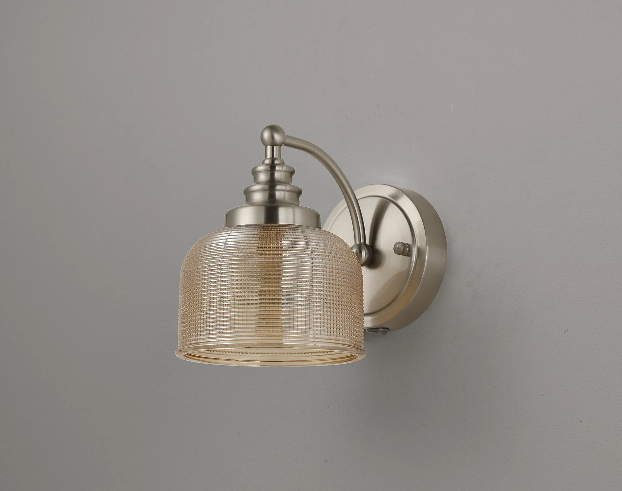 OTHER Yorkton Switched Wall Light, 1 Light E27 Satin Nickel/Amber Glass