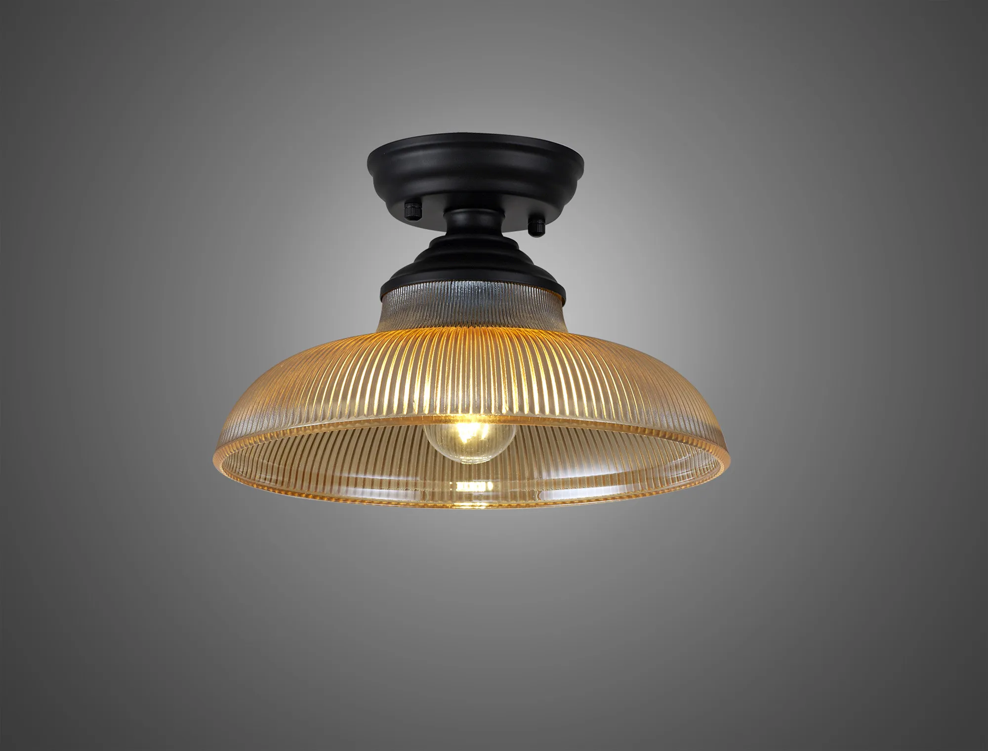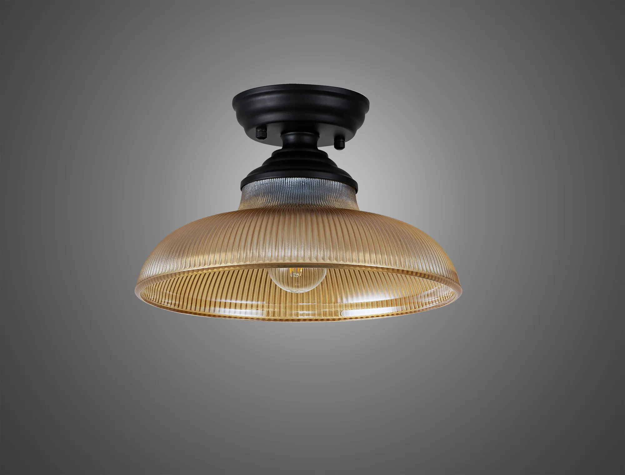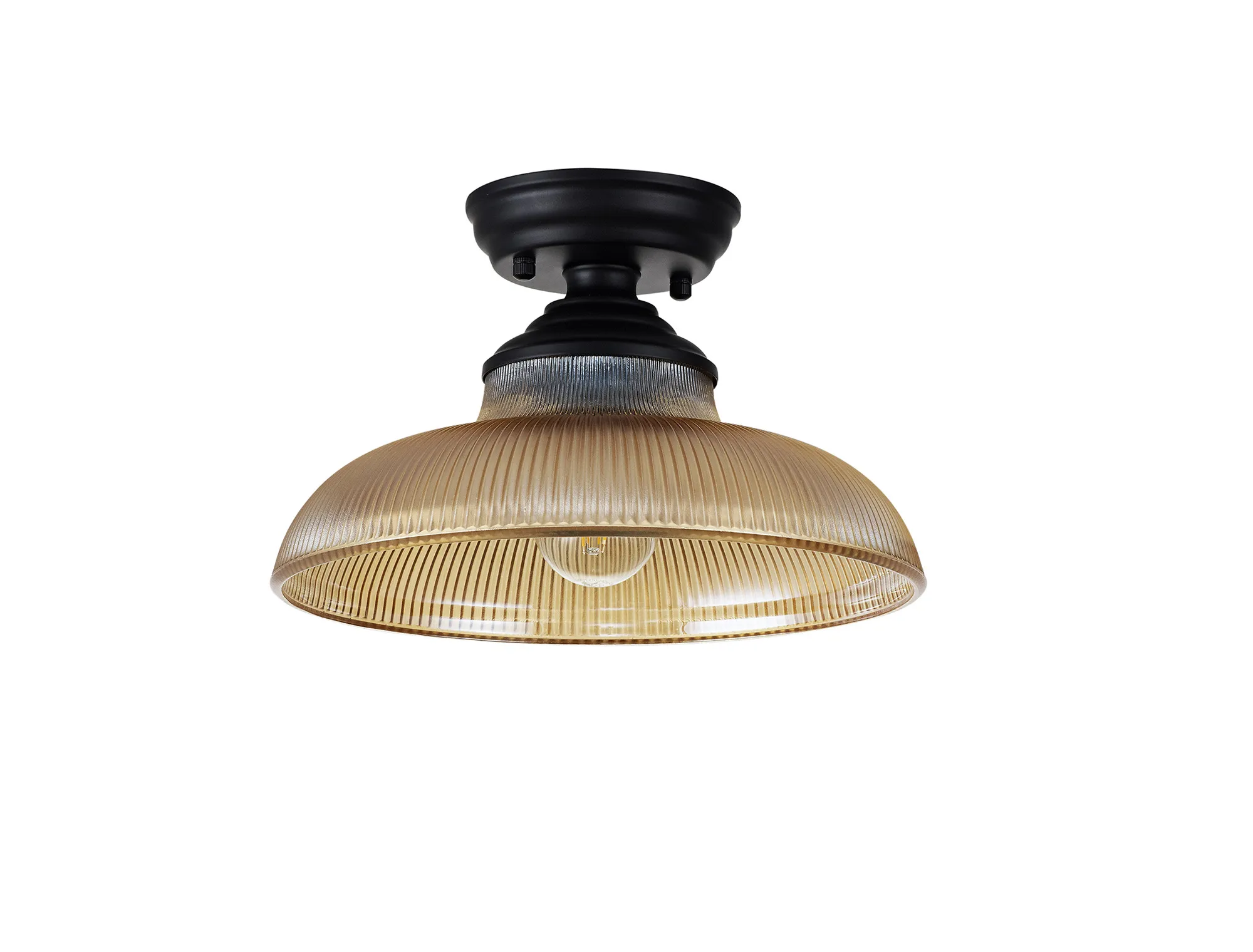 OTHER Quebec 1 Light Flush Ceiling E27 With Round 30cm Glass Shade Matt Black/Amber