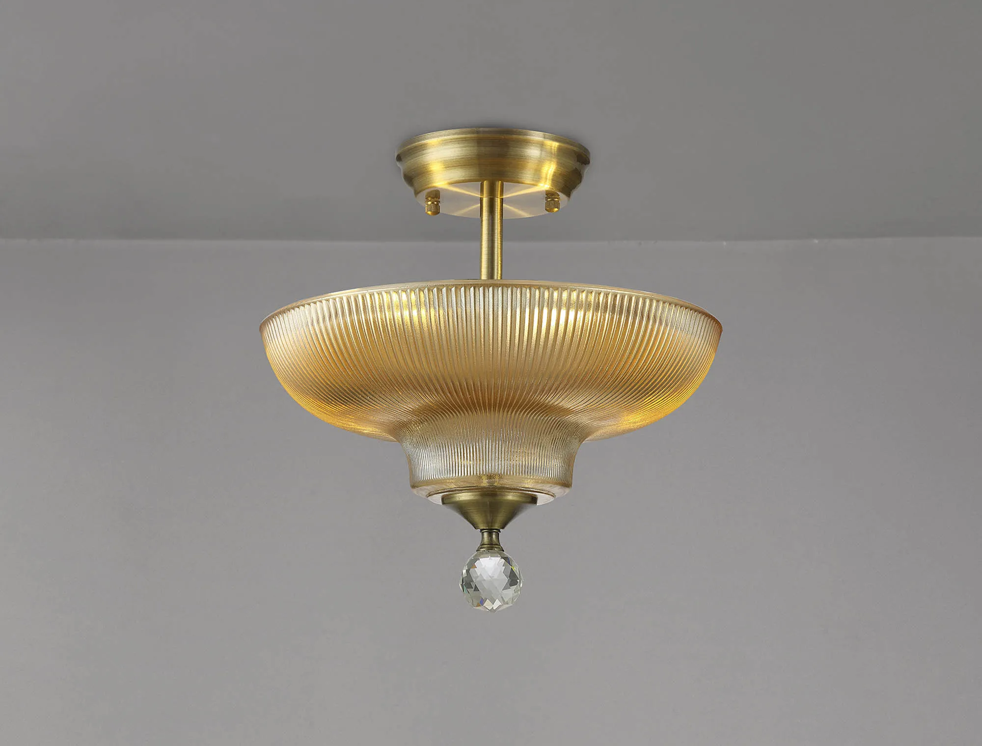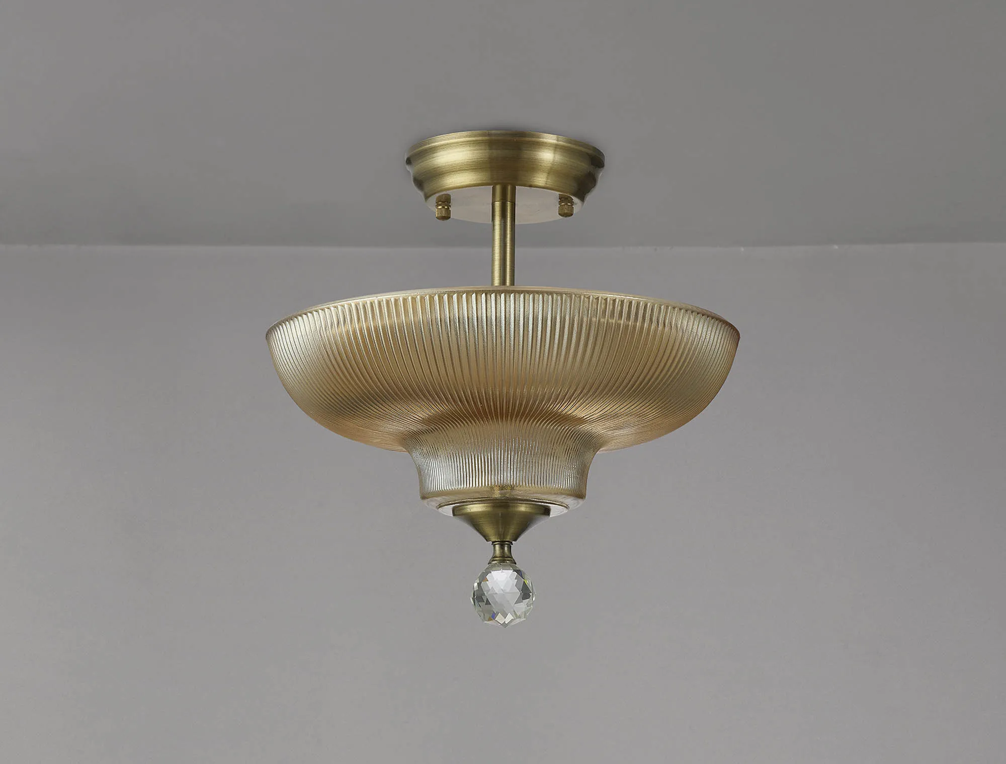 Quebec Semi Flush Ceiling Light (FRAME ONLY), 2 x E27, Antique Brass