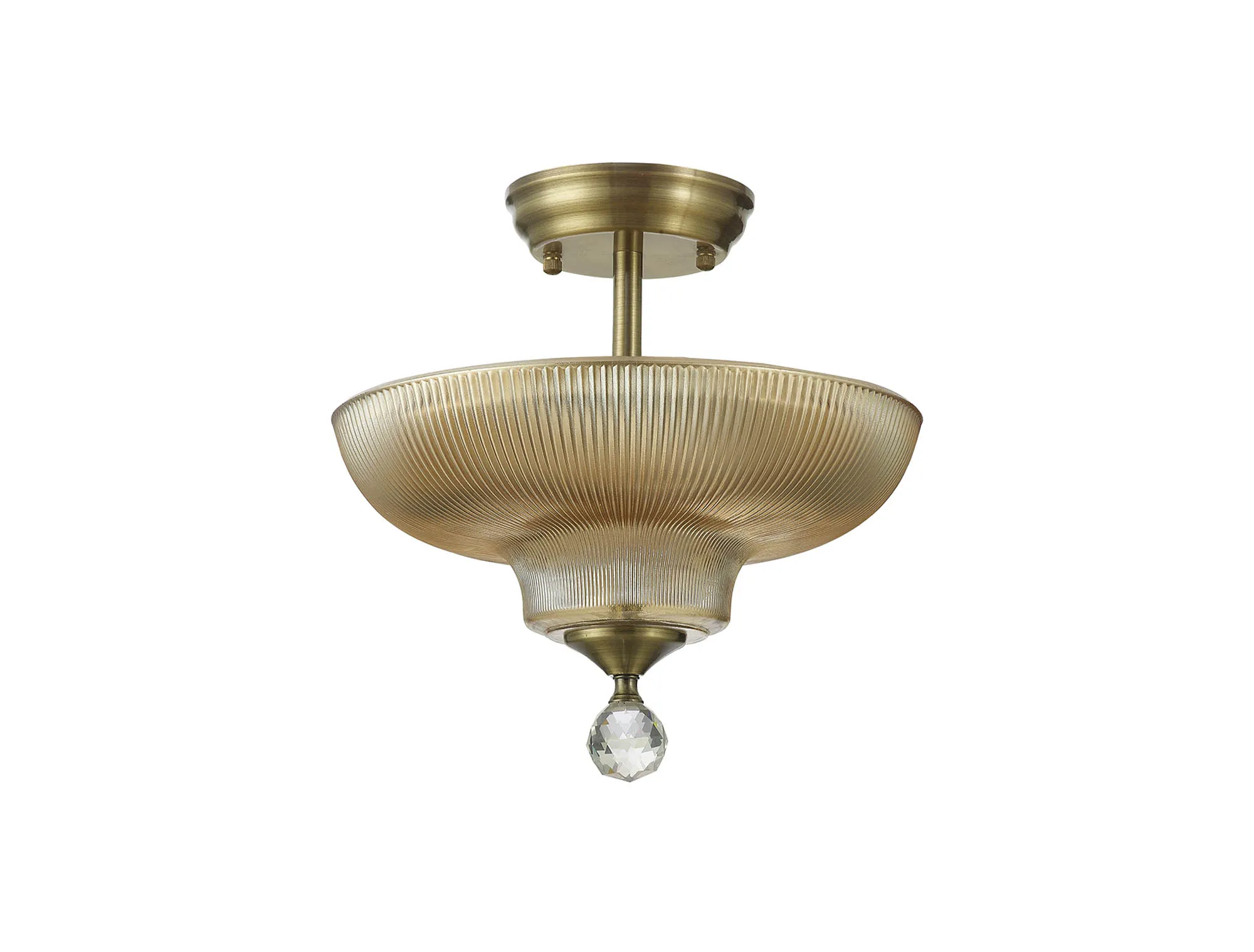 Quebec 16.8cm Semi Flush Ceiling Light (FRAME ONLY), 2 x E27, Antique Brass