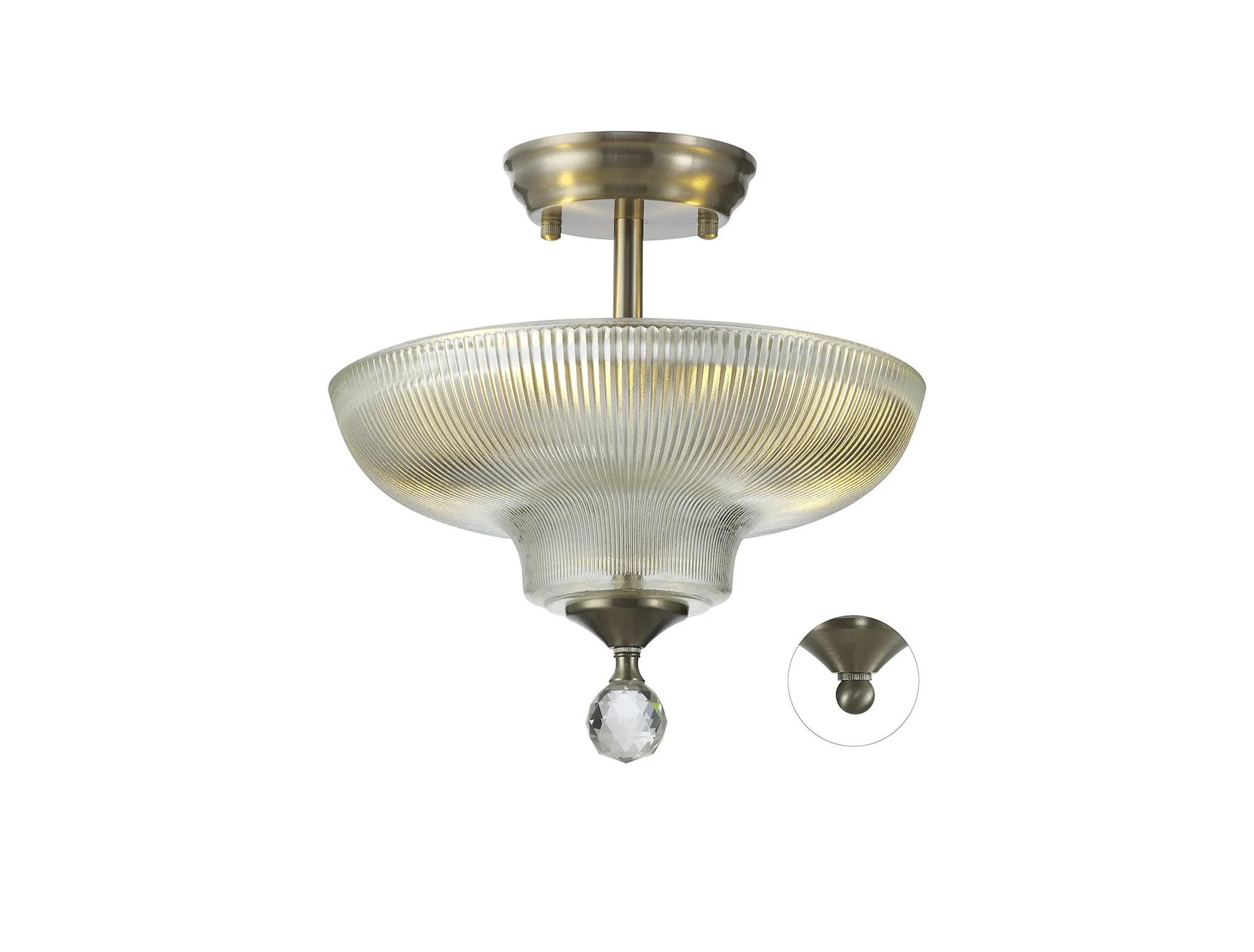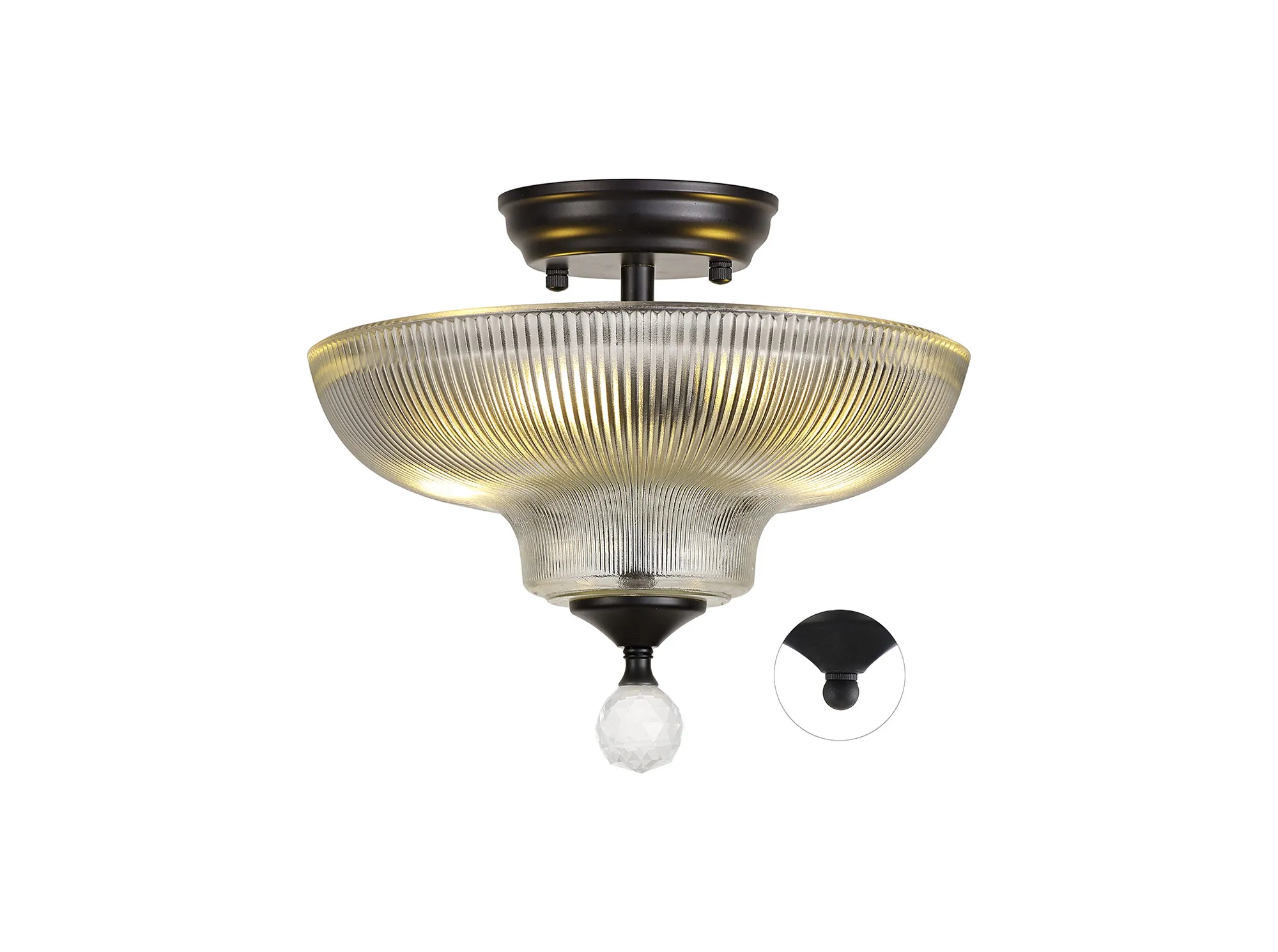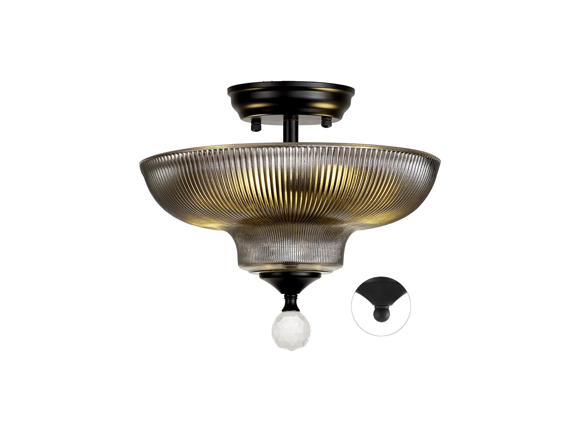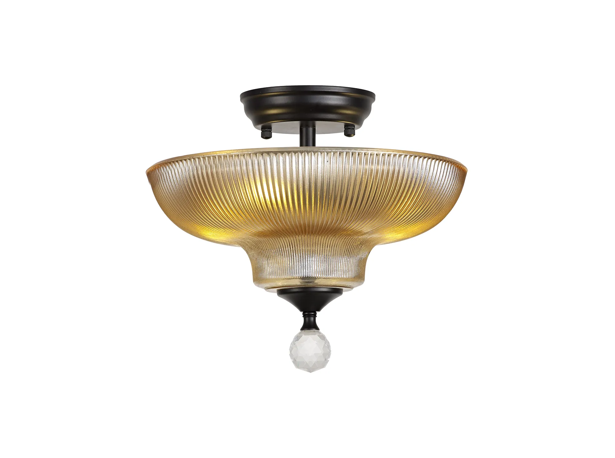 OTHER Quebec 2 Light Semi Flush Ceiling E27 With Round 30cm Glass Shade Matt Black/Amber